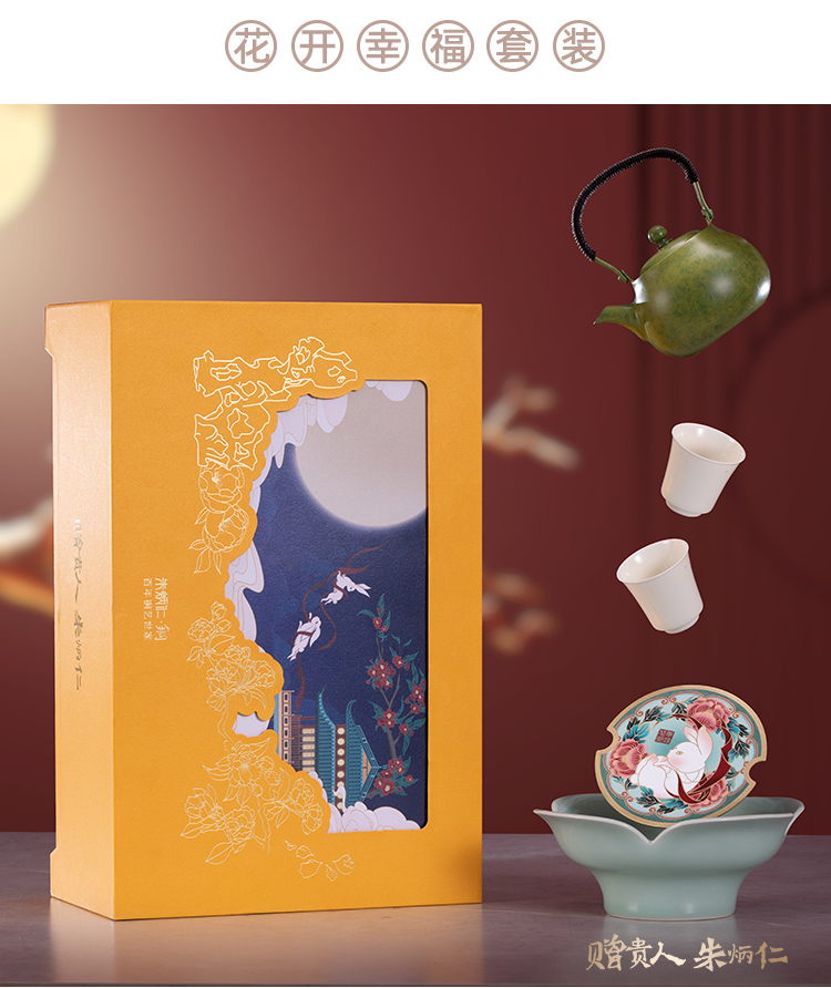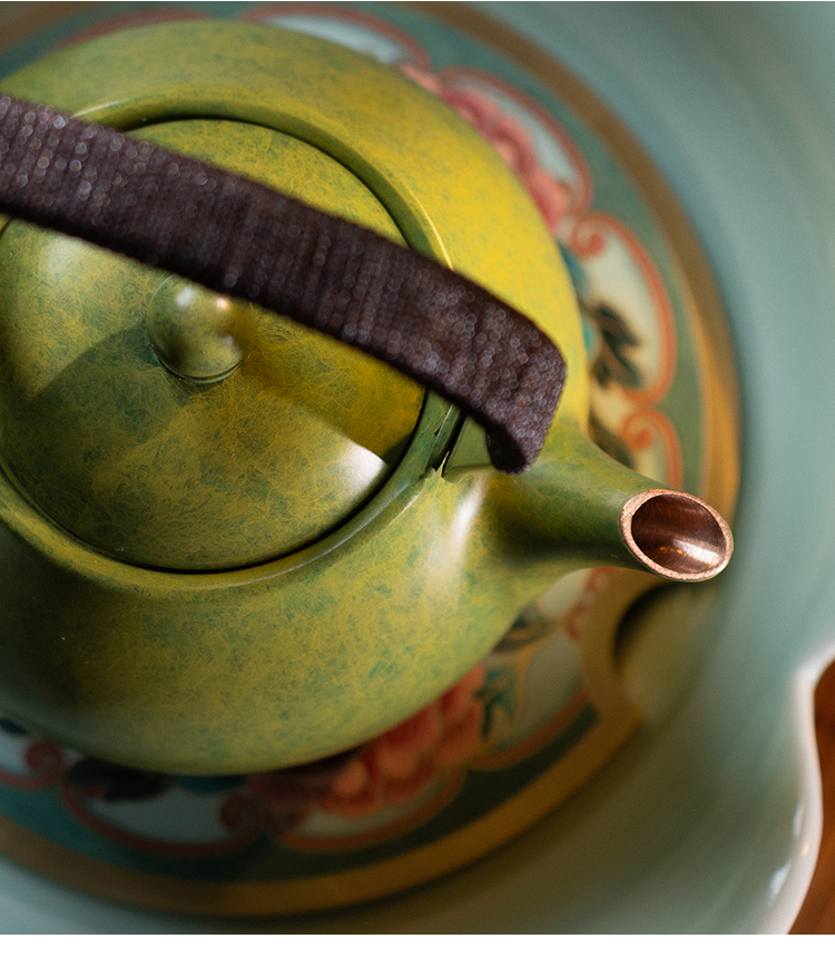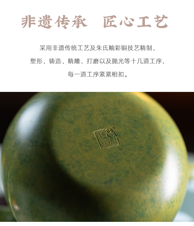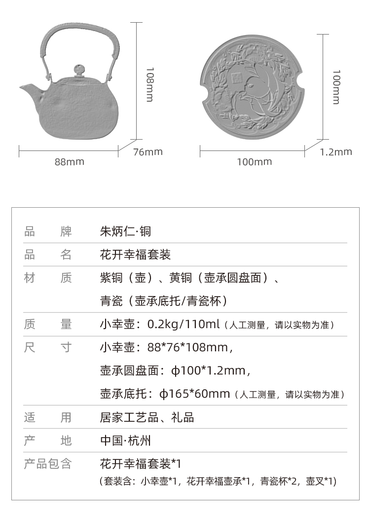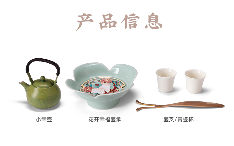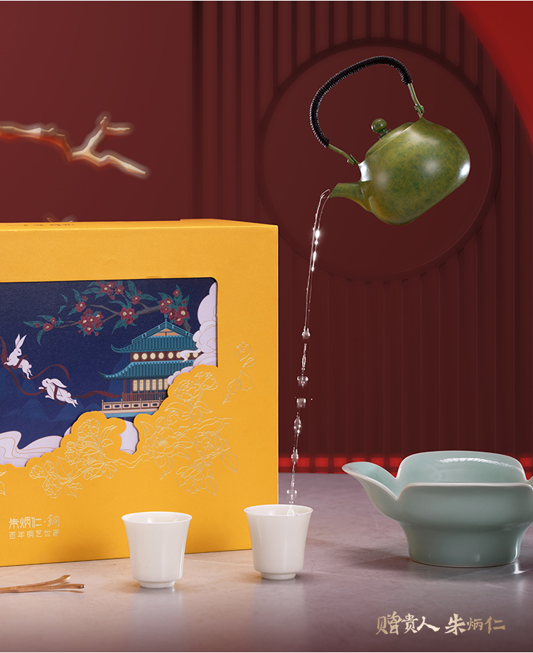 朱炳仁丨花开幸福 茶礼套装 1小幸壶1青瓷壶承1紫铜壶叉2白瓷杯