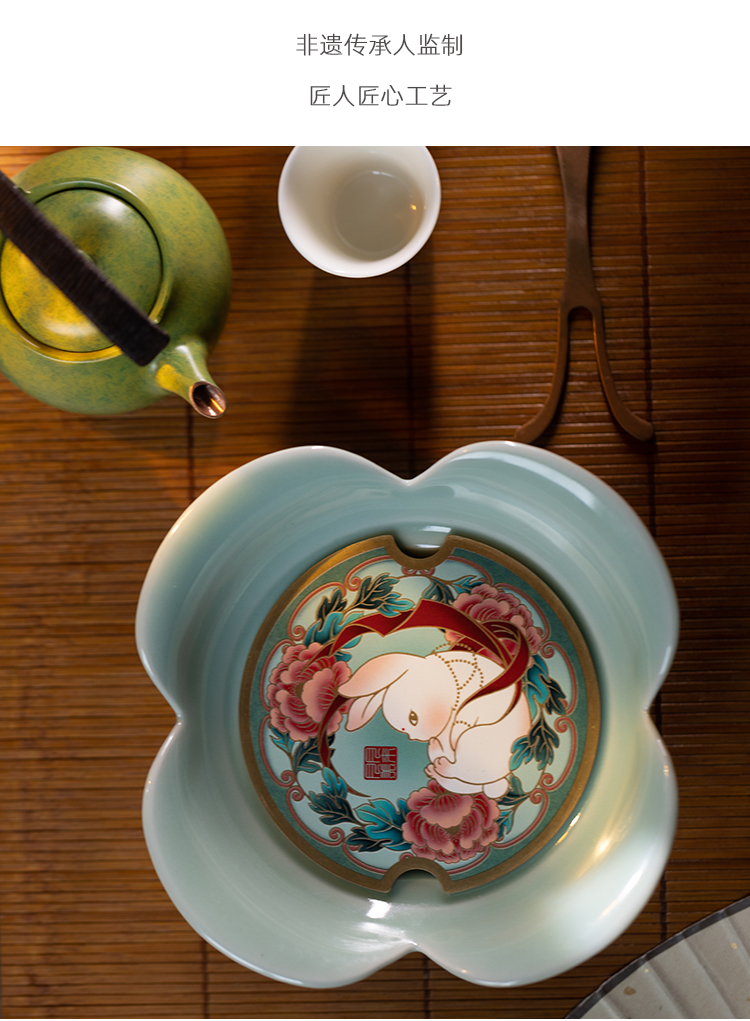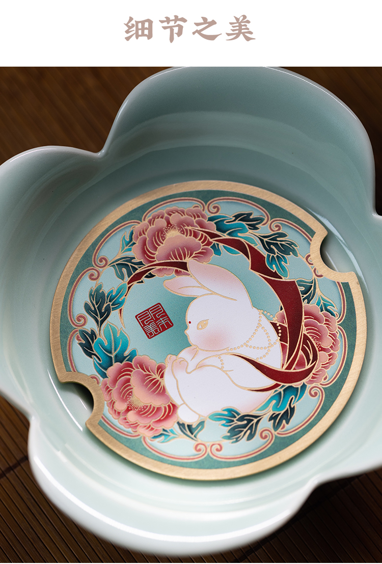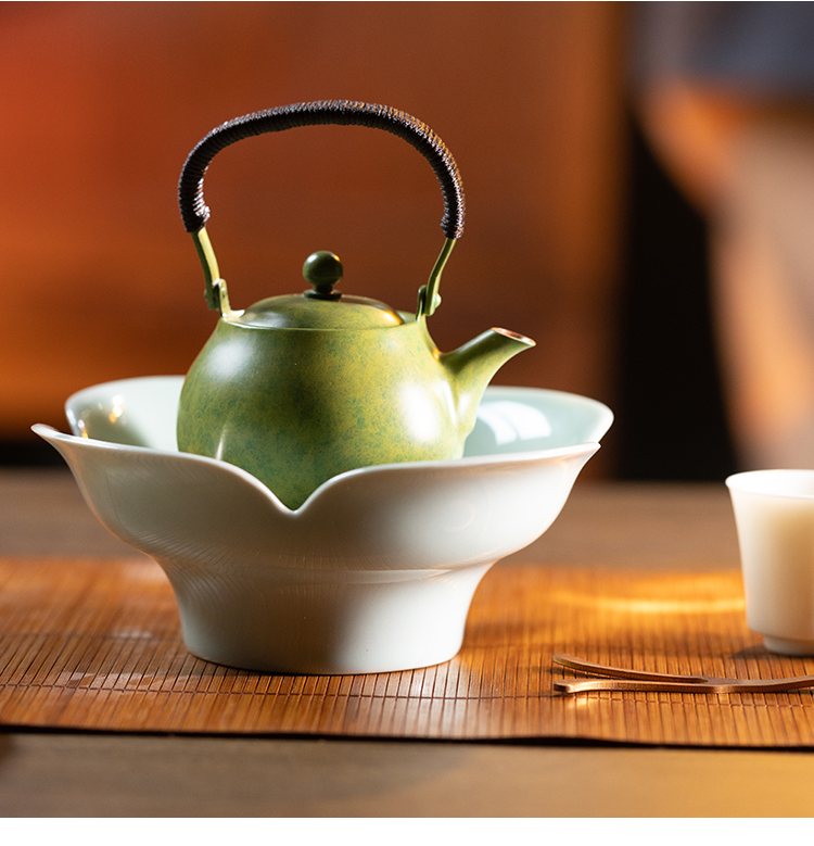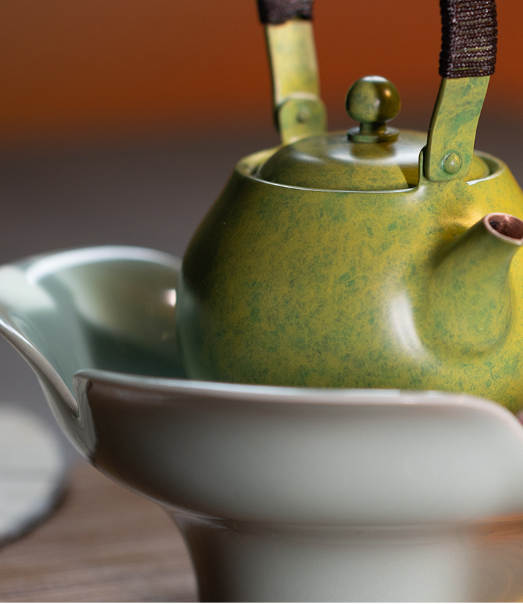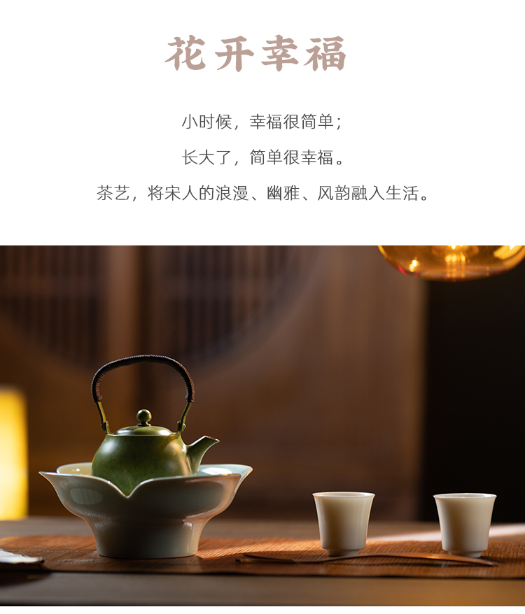 朱炳仁丨花开幸福 茶礼套装 1小幸壶1青瓷壶承1紫铜壶叉2白瓷杯