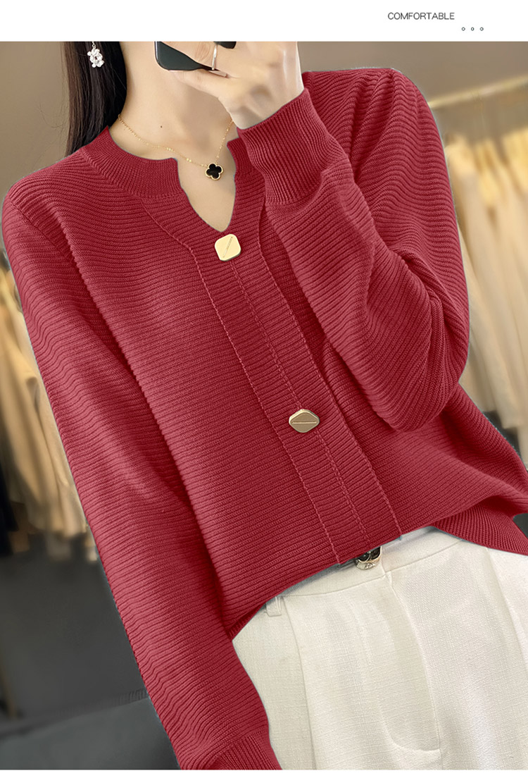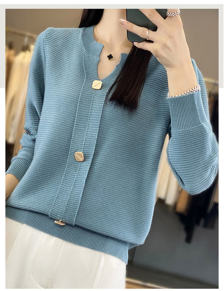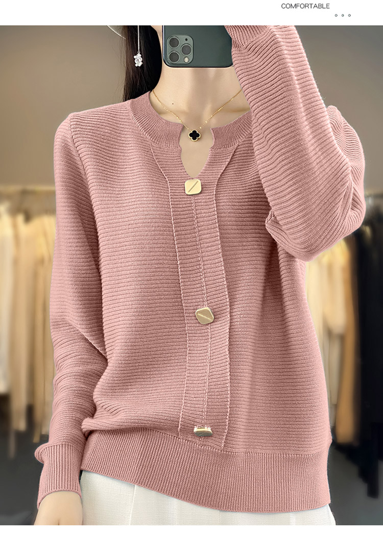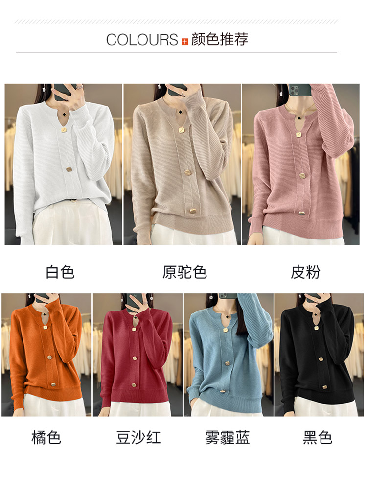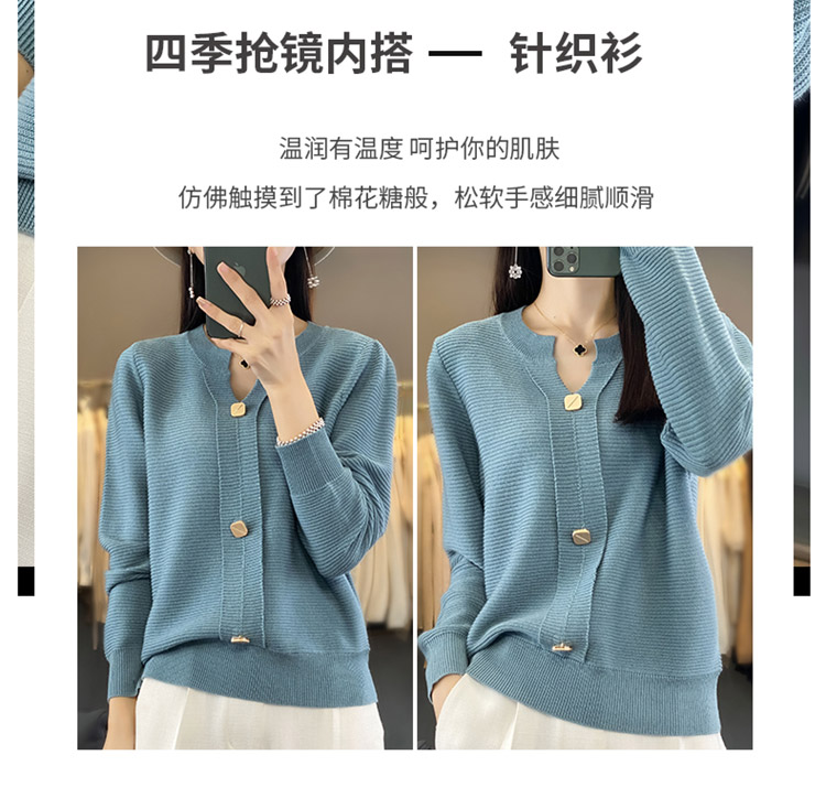 纤束马设计感三扣安迪绒针织衫