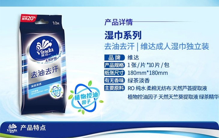 维达 湿巾去油去汗卫生湿纸巾10片装