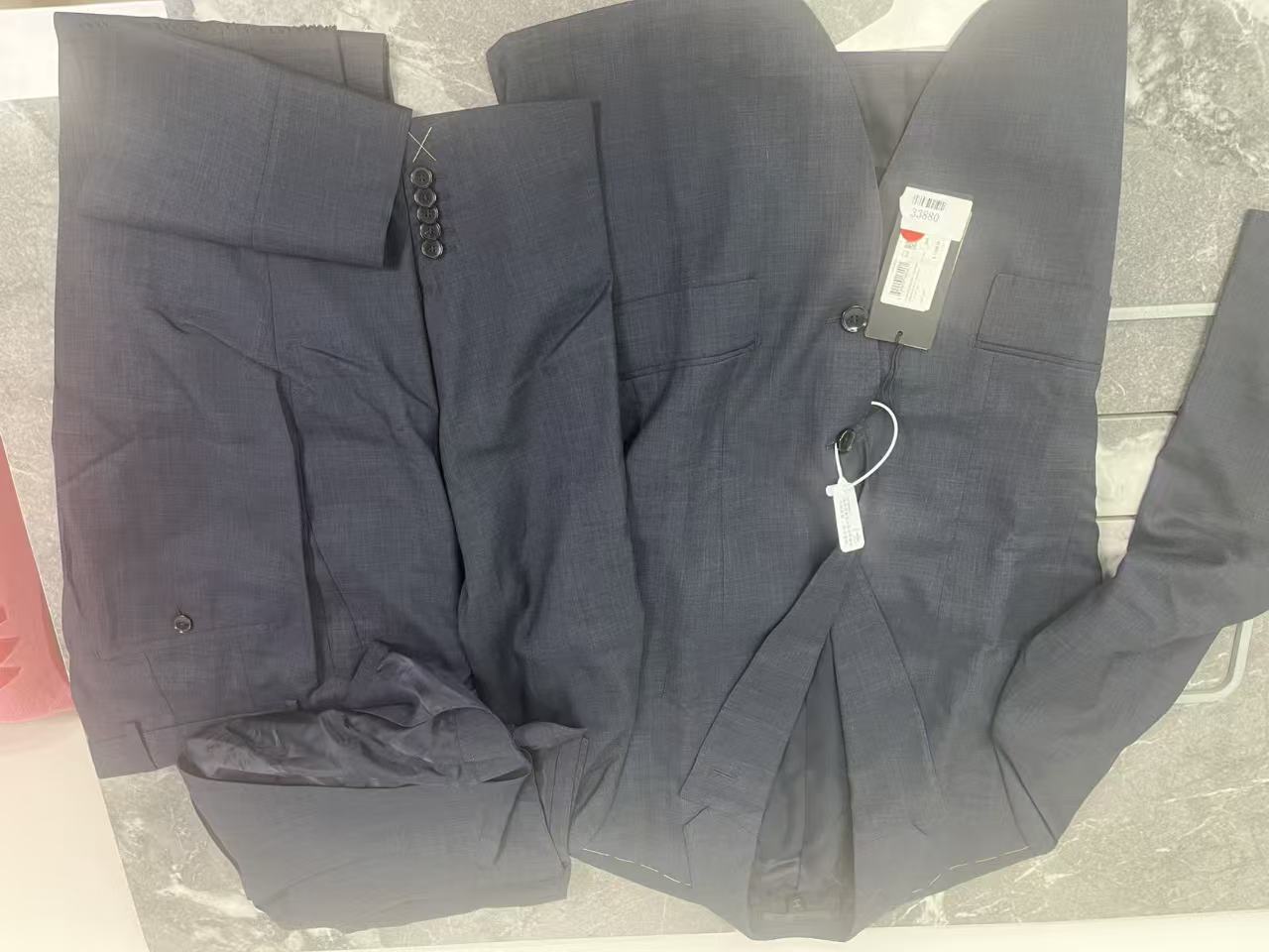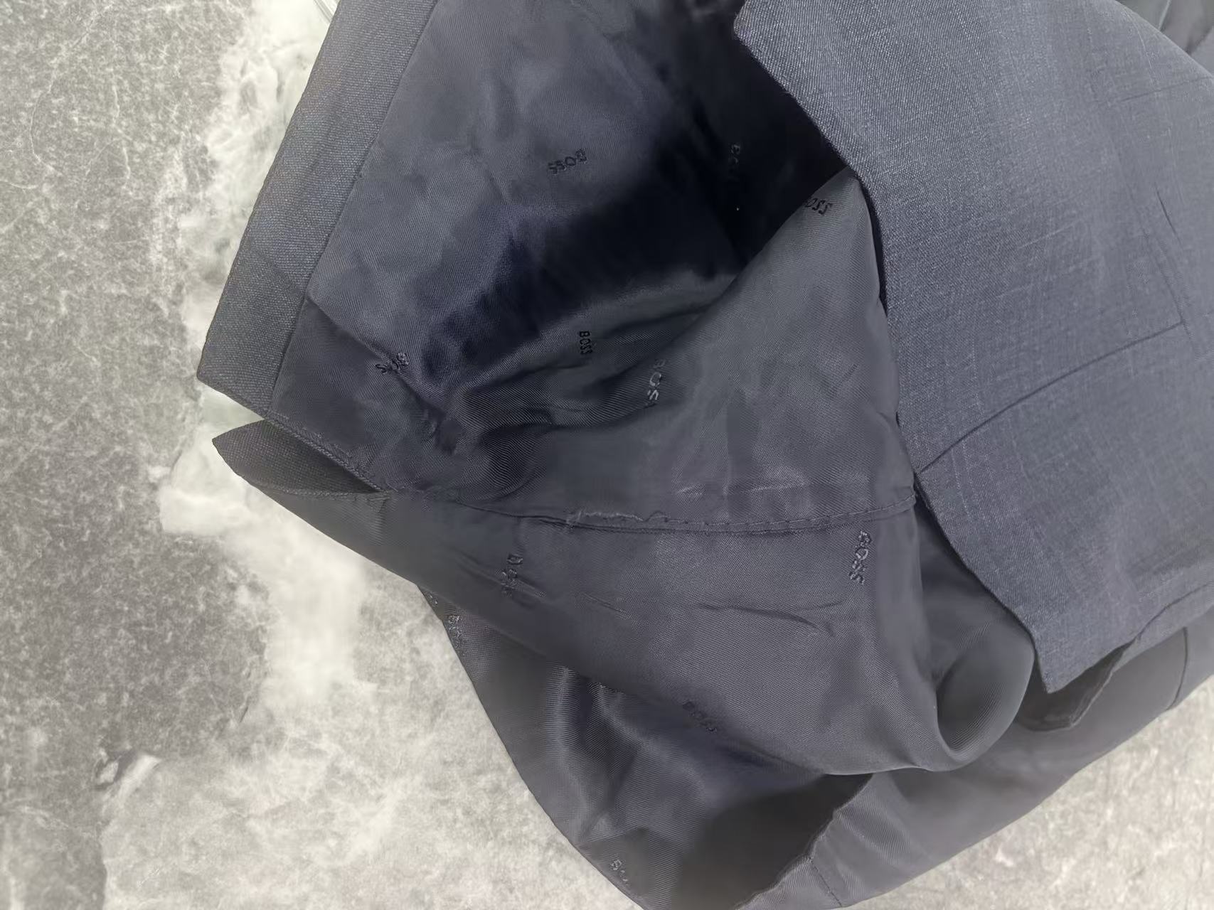 瑕疵HUGO BOSS 男士修身COLOMBO面料羊毛蚕丝混纺西裤马甲西装三件套