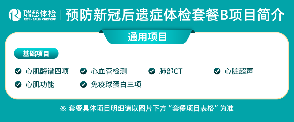 | 套餐名称:预防新冠后遗症体检套餐B |