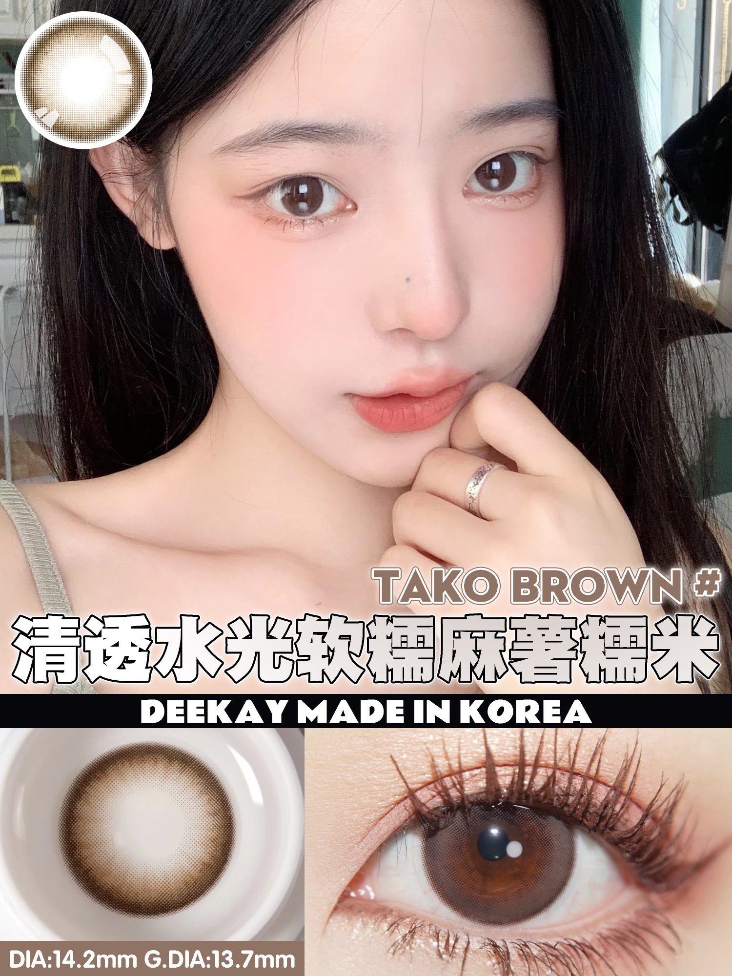 标注直径:14.2mm实际佩戴直径14.2mm 基弧:8.6mm含水量:38%度数范围:0-1000(有525.575)使用周期:年抛(建议使用8个月更换)含硅水凝胶