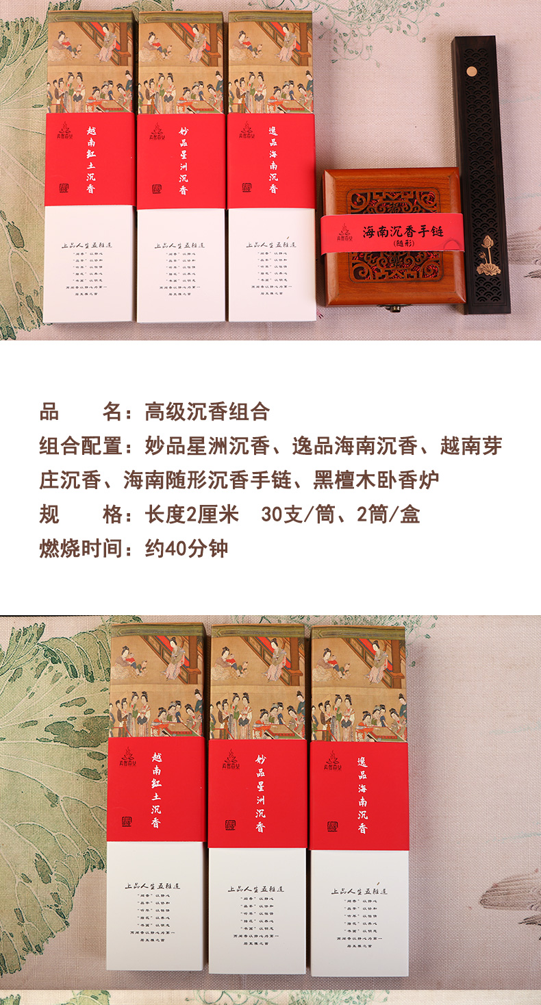 【茶香器韵】高级沉香组合 三大产地沉香熏香各一盒(双管装)海南随形沉香手链1 赠 荷塘月色黑檀线香炉