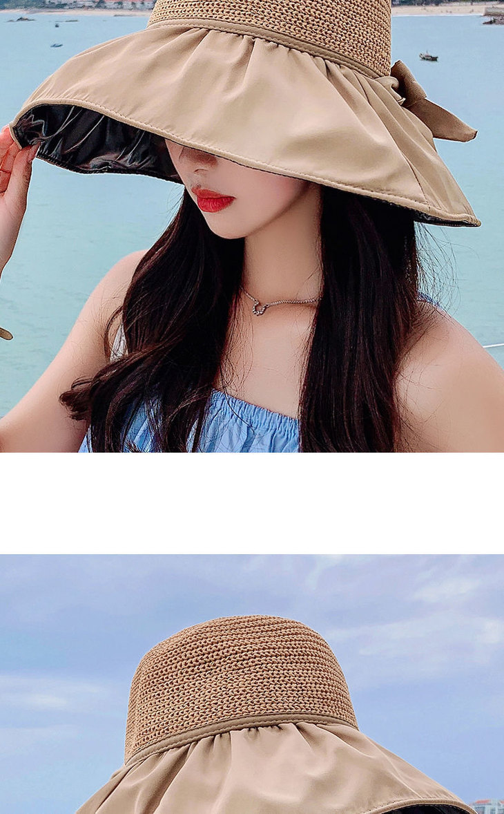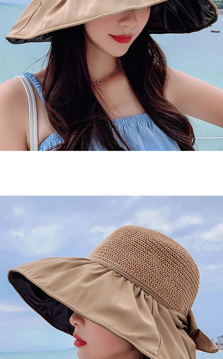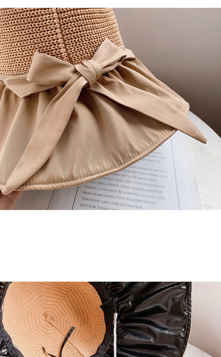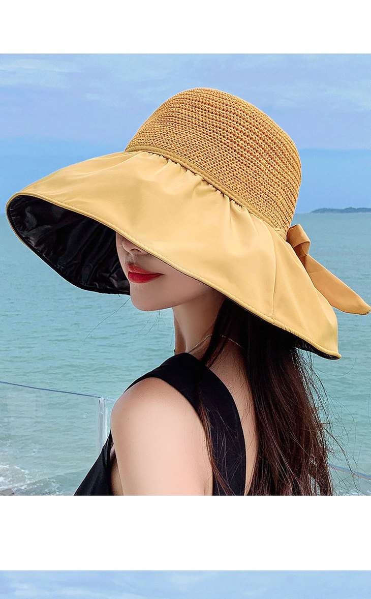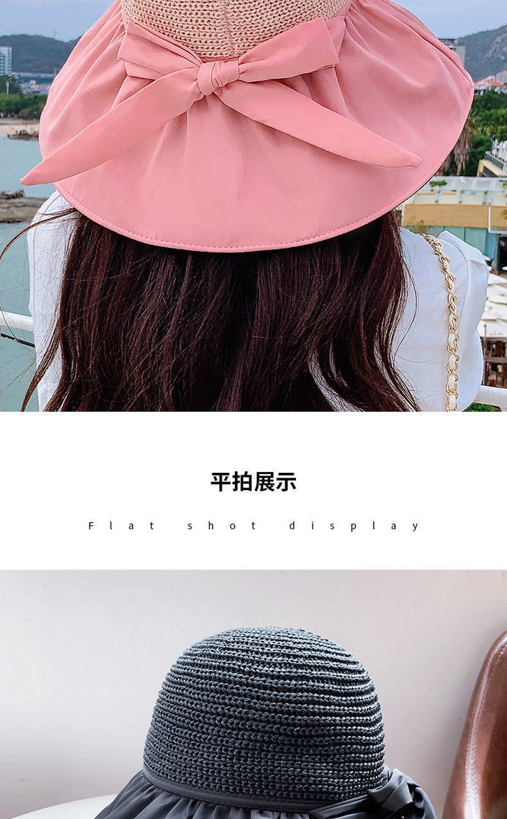 【2顶仅49元!升级款遮阳帽】黑胶蝴蝶结uv遮阳帽 编织镂空更透气 大帽檐遮脸防晒 大檐遮脸防晒帽运动骑行渔夫帽夏日