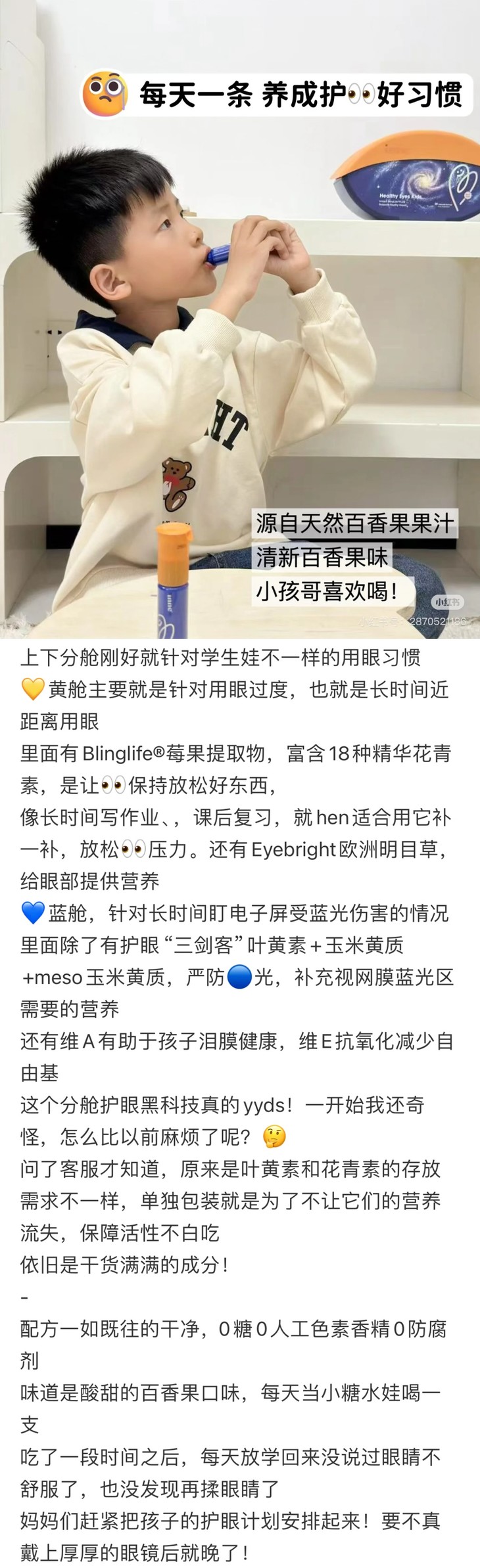 [屁侠推荐]inne因你视立棒护眼饮叶黄素儿童蓝光盾玉米黄质学生青少年20棒/盒