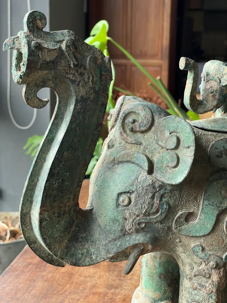 此件青铜龙凤饕餮纹大象尊,不但体态优雅大气、工艺精致细腻,大小适中,是一件形式典雅、工艺精湛的美好旧物,也是一件高雅贵气的家居摆设。