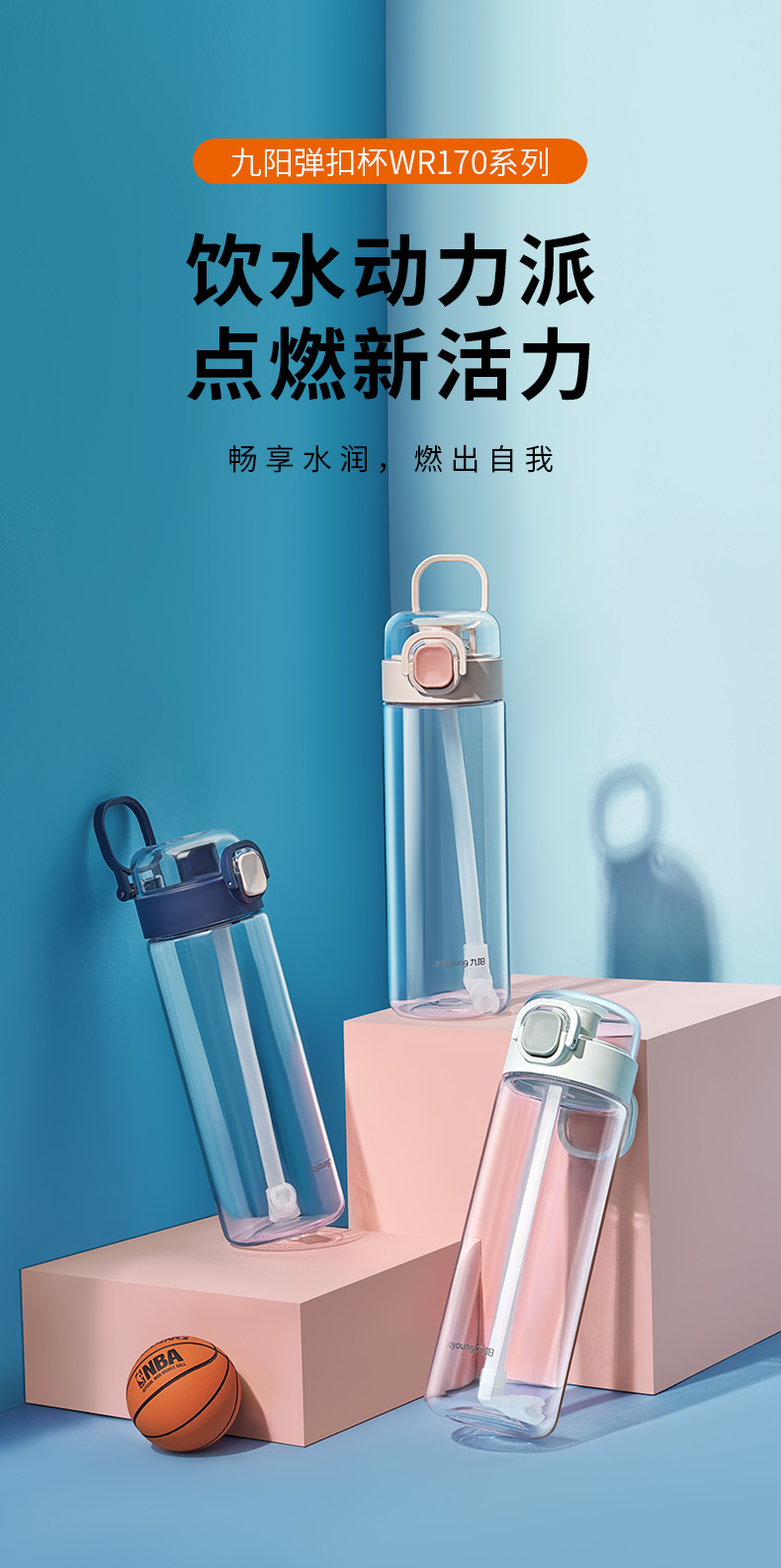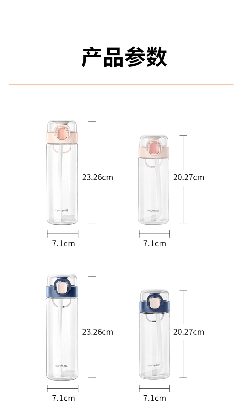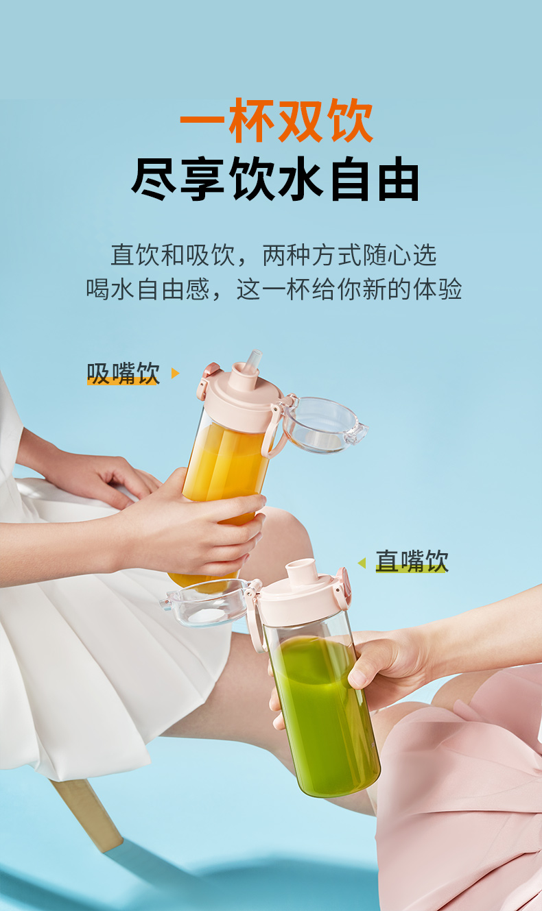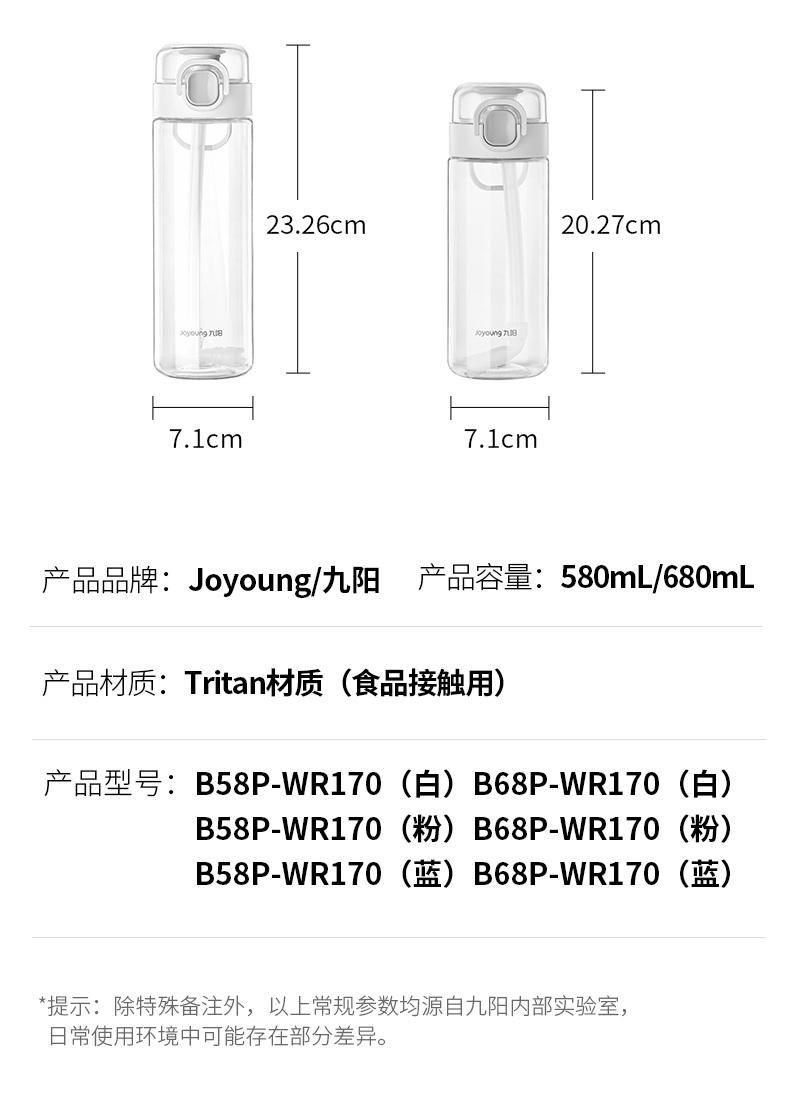 【弹扣吸管杯】Joyoung/九阳B68P-WR170便携随享杯弹扣随手杯学生水杯680ml