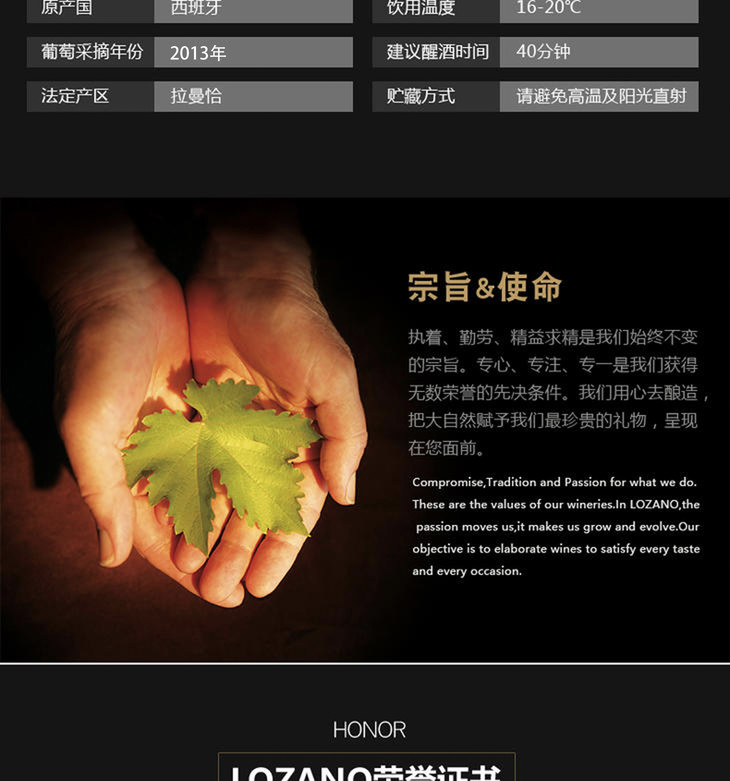 (永久下架)【全网特惠】 Lozano 洛萨诺 2013年玛卡优质陈酿干红葡萄酒2/6支装
