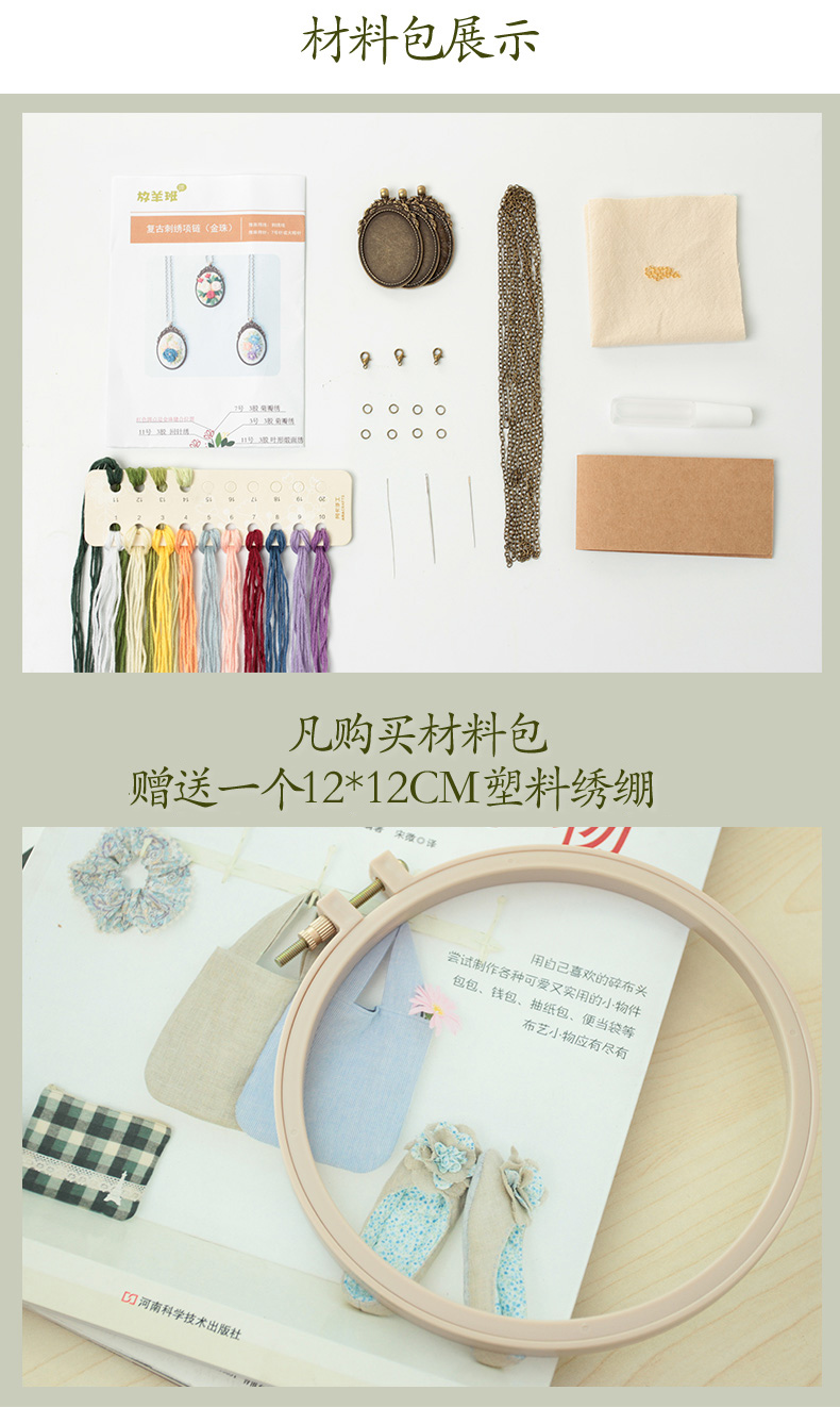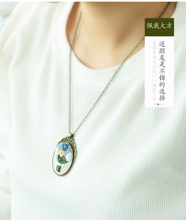 【含视频教学】每款材料包可做三条不同花色的项链 手工刺绣diy复古项链
