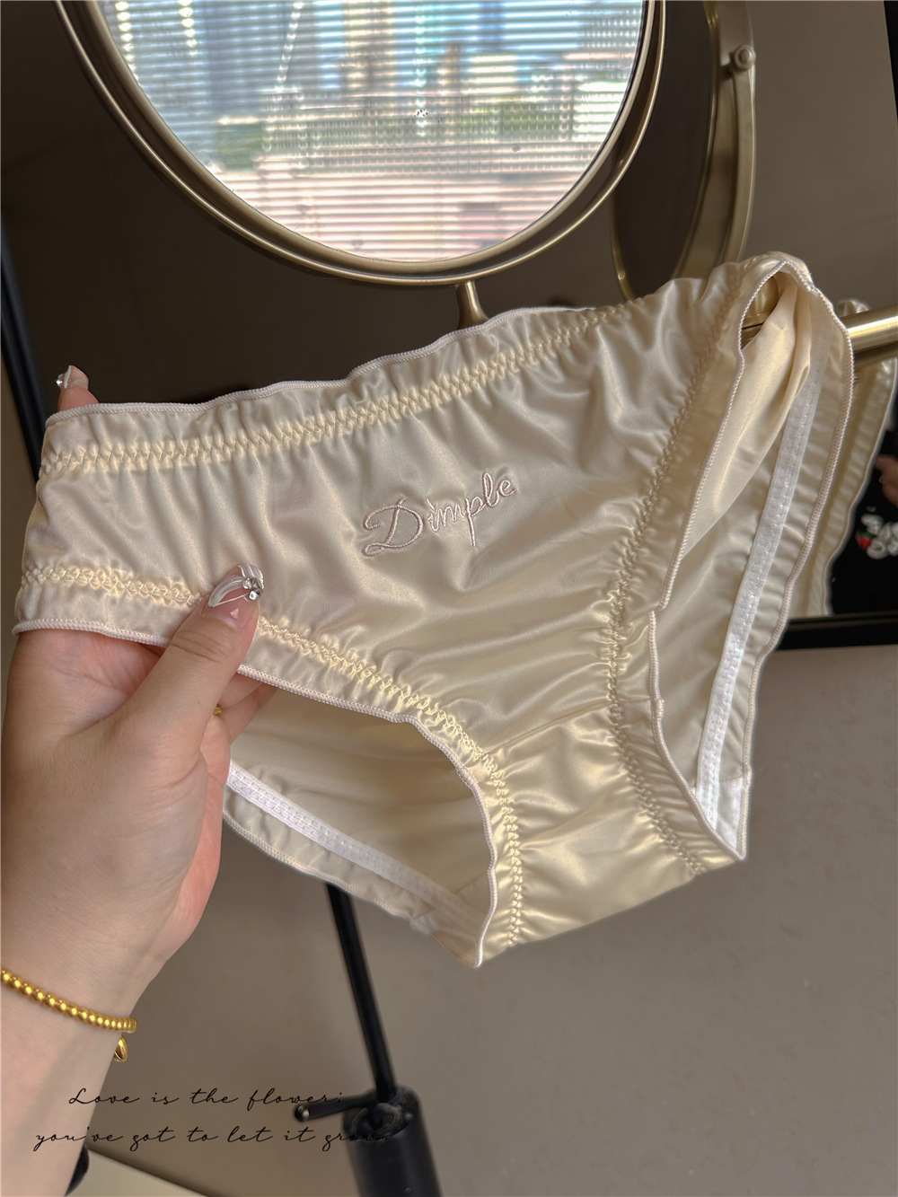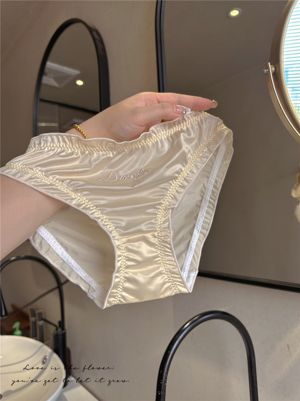 【丝滑好穿❗缎面烫印字母系列】丝丝滑滑面料柔软亲肤,简约刺绣字母,裤腿处高开,纯棉底档,香槟中低腰三角内裤少女纯色冰丝棉档QQ