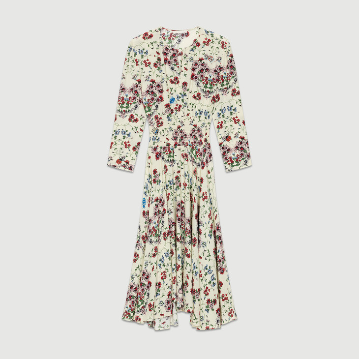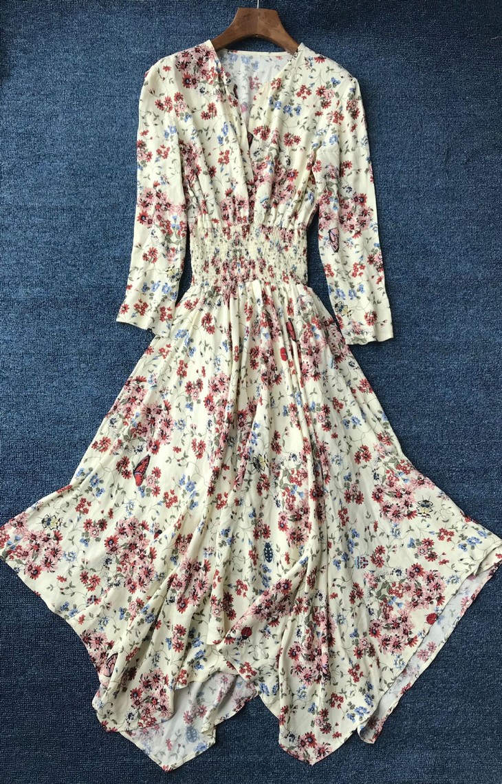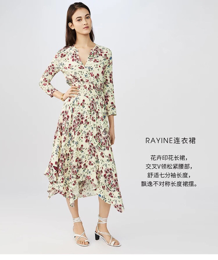 【服饰鞋包】 M家yuan单 花卉印花 不规则下摆连衣裙