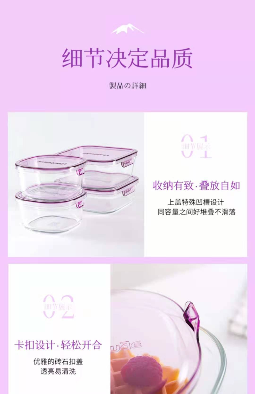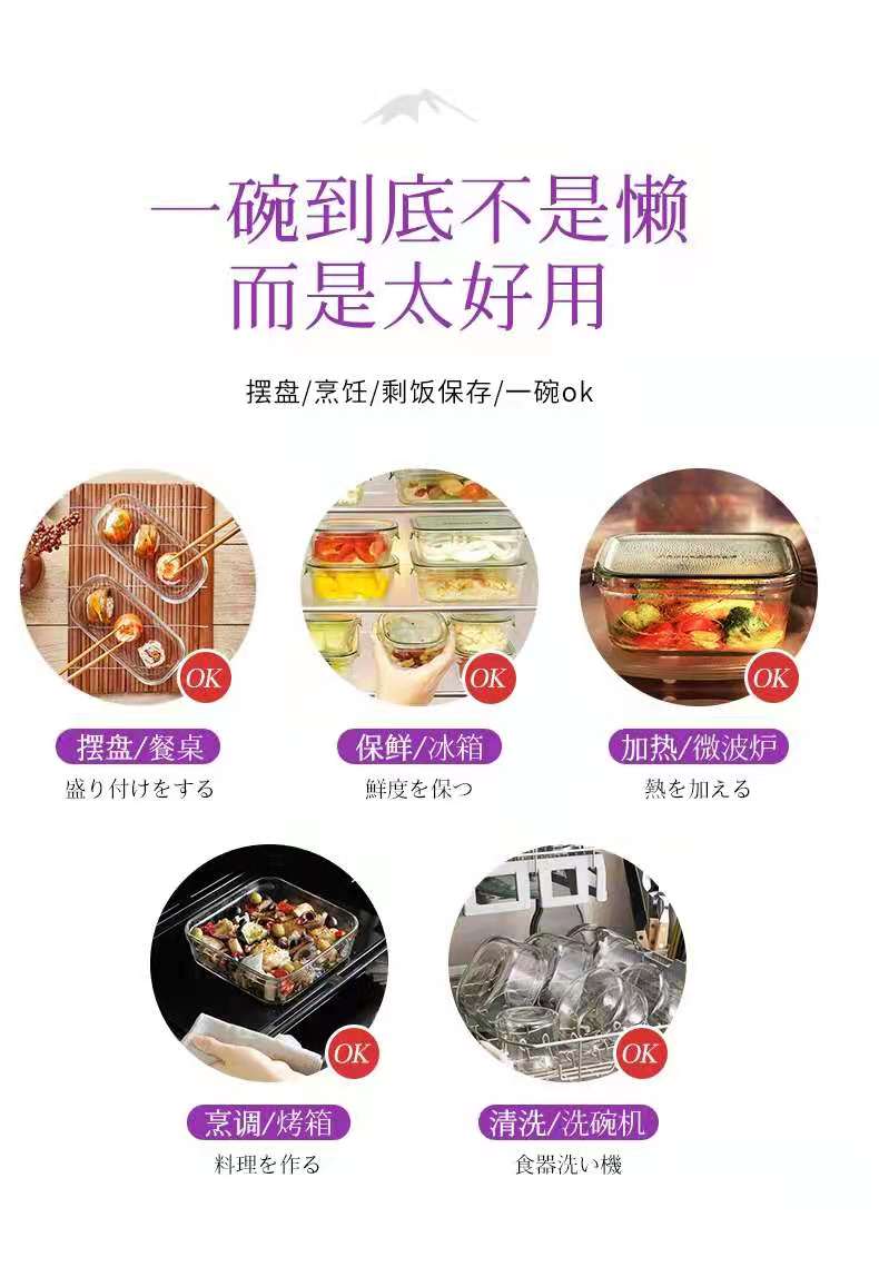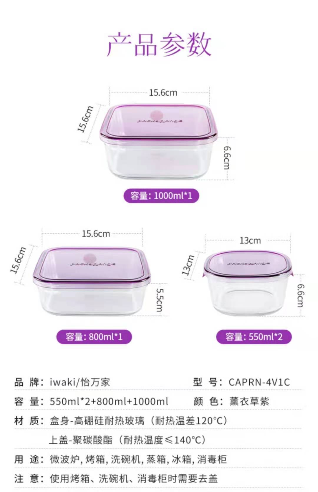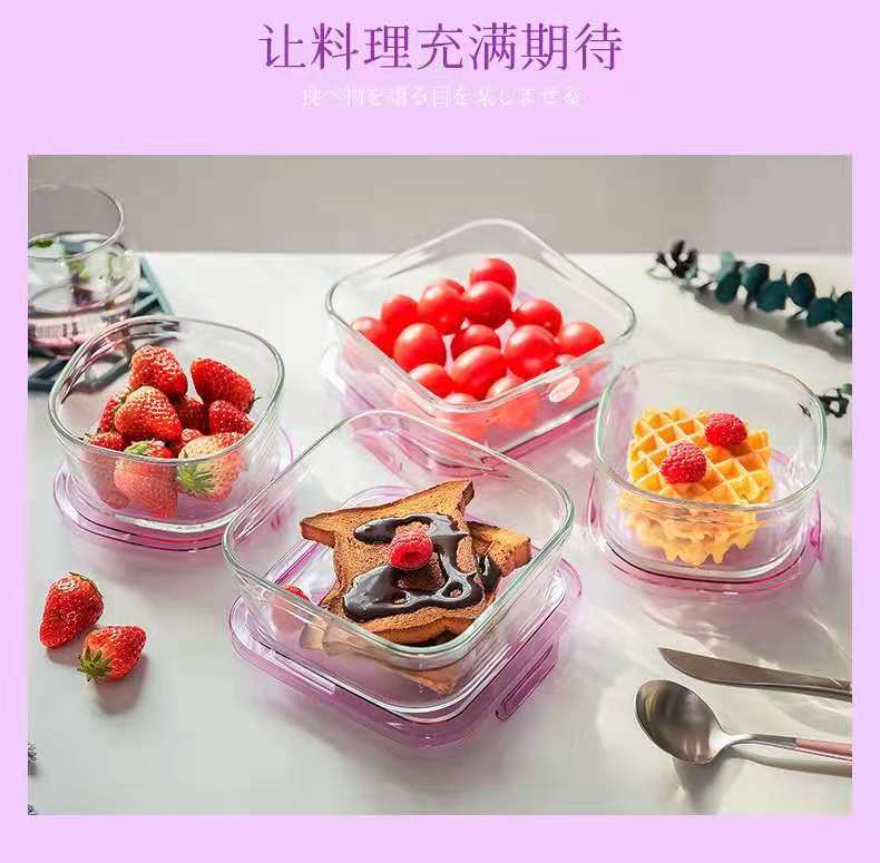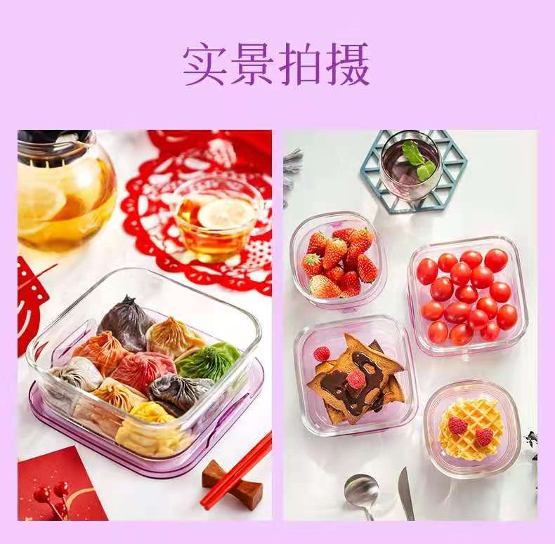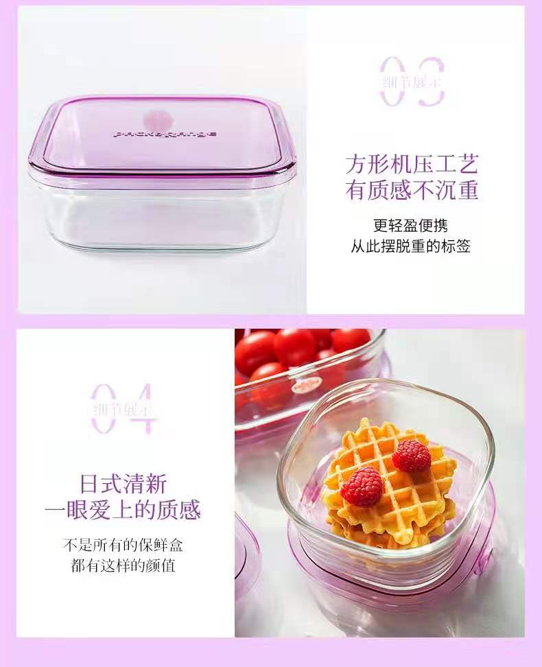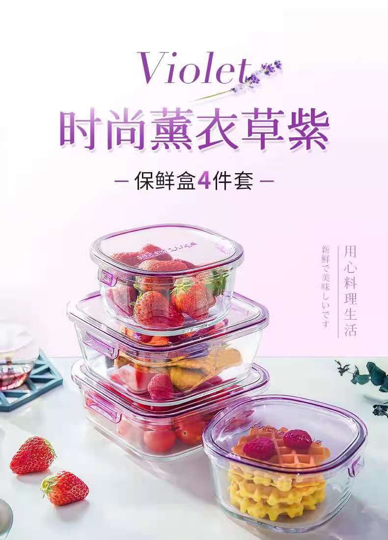 【春上新】10楼 怡万家 宿舍泡面神器耐热玻璃保鲜盒马卡龙4件套薰衣草紫 吊牌价355元/套 活动价199元/套