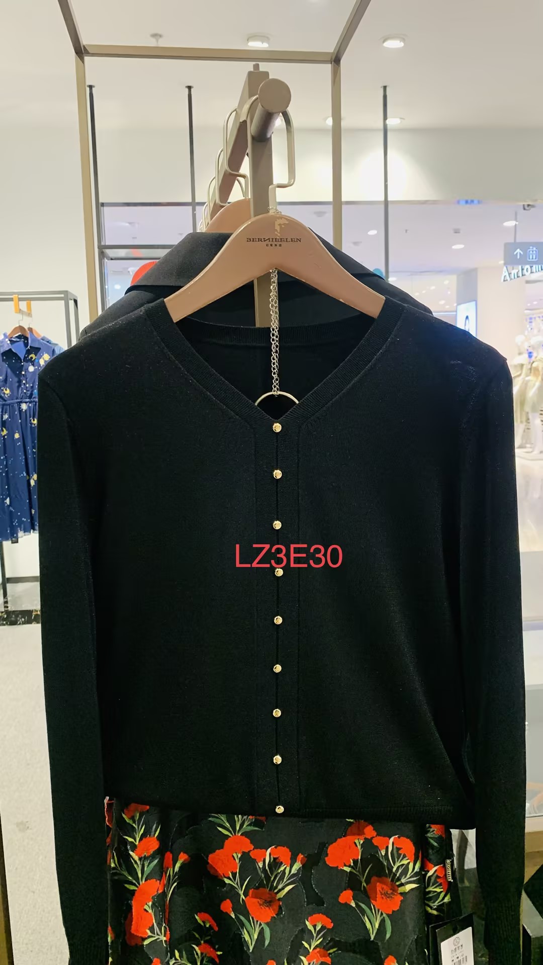 伯妮斯茵 | 轻奢通勤 针织上衣 V 领金扣短款设计 细羊毛针织 日常通勤出游穿搭 LZ3E30