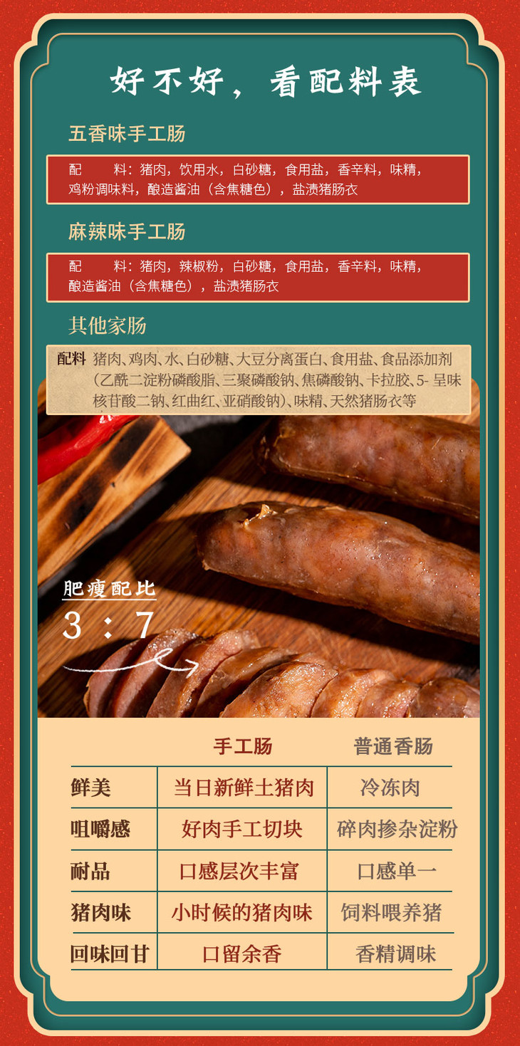 今年,我们在青岛找了一家手作灌肠厂家,到目前他们已坚持手作36年了。这次为满足大家的需求,我们特地委托他们订制了原味(五香)和麻辣两种口味的灌肠。