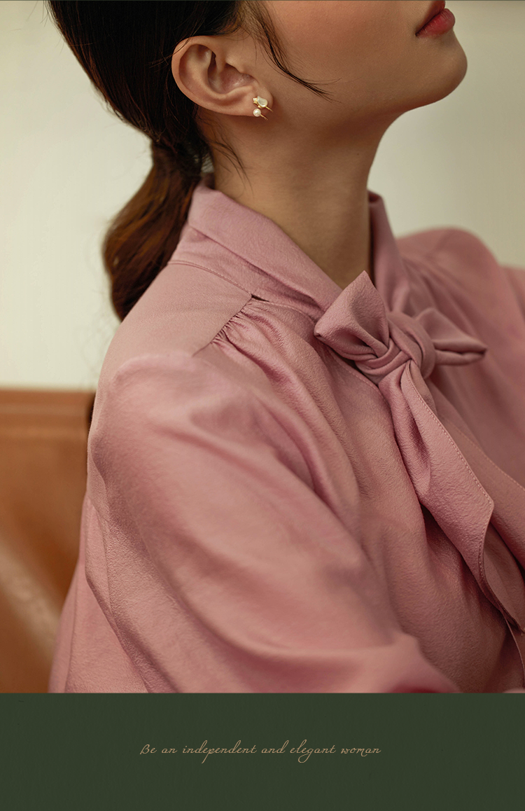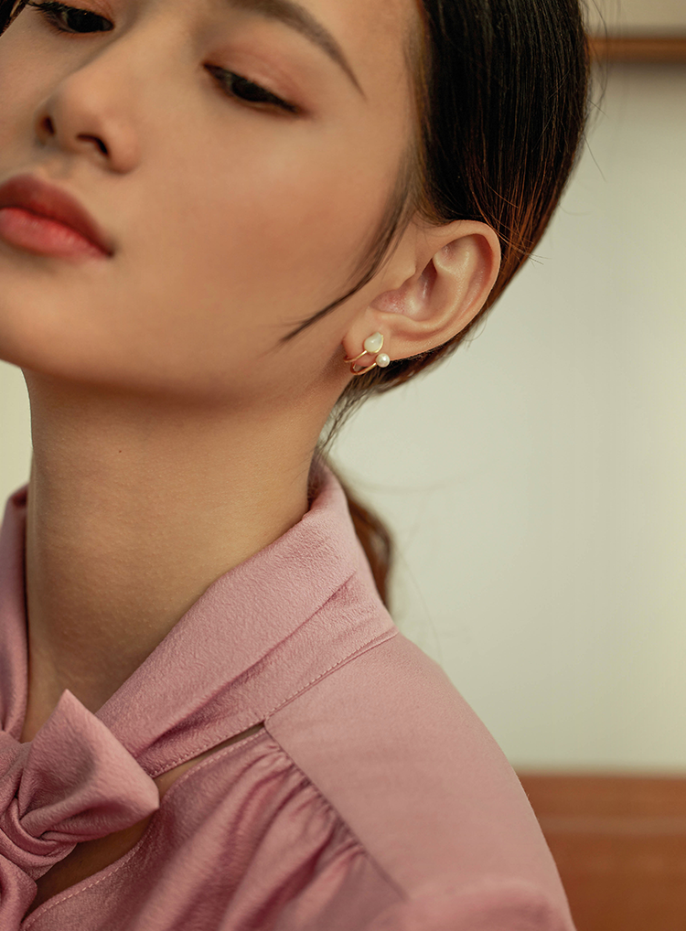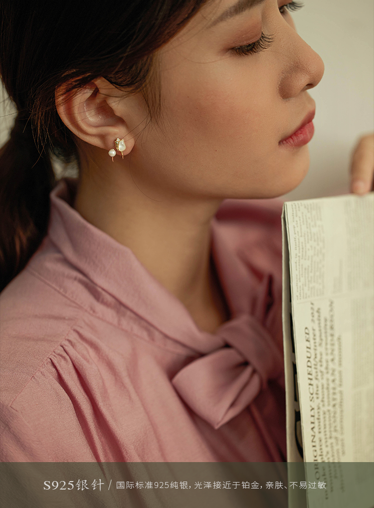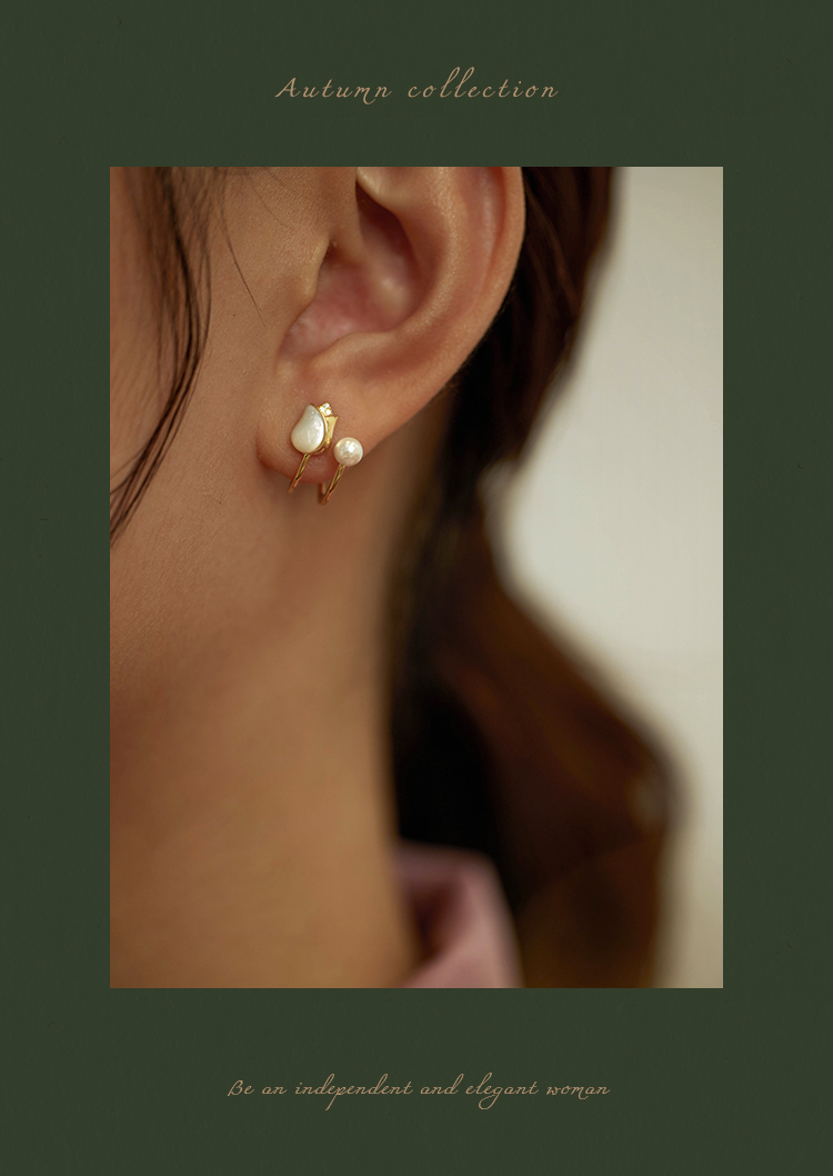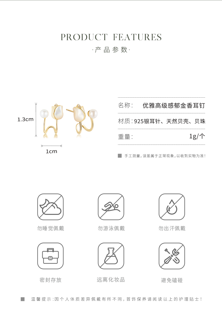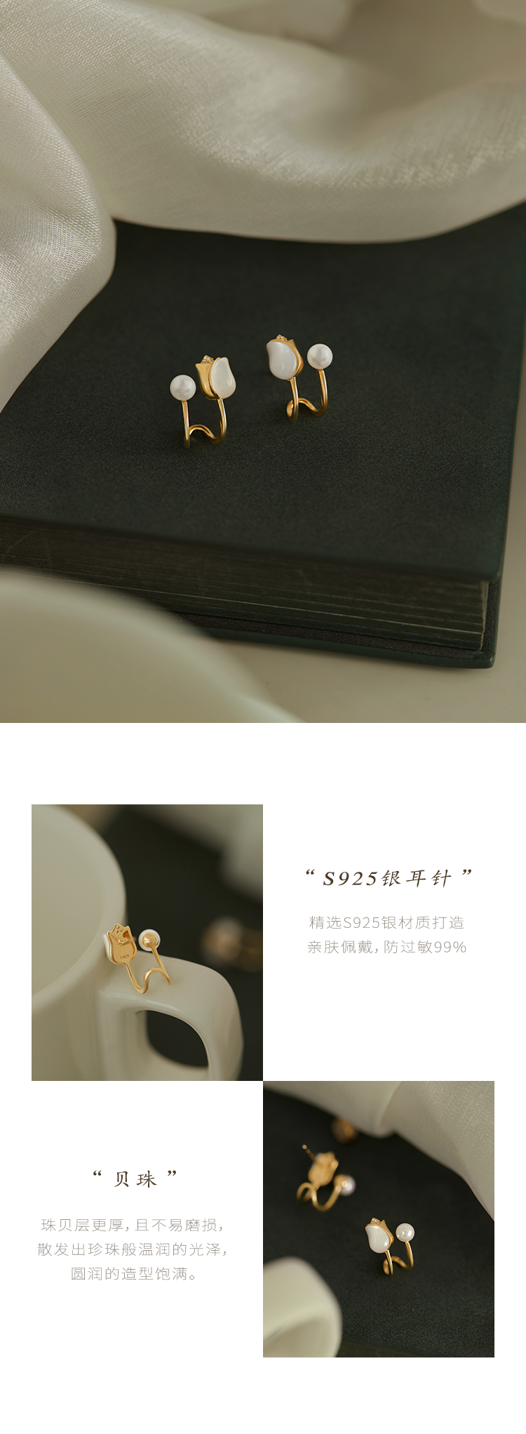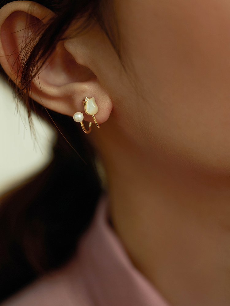 Oflye潮流饰品 法式郁金香银针耳钉贝壳珍珠耳环气质小众设计耳钉气质女