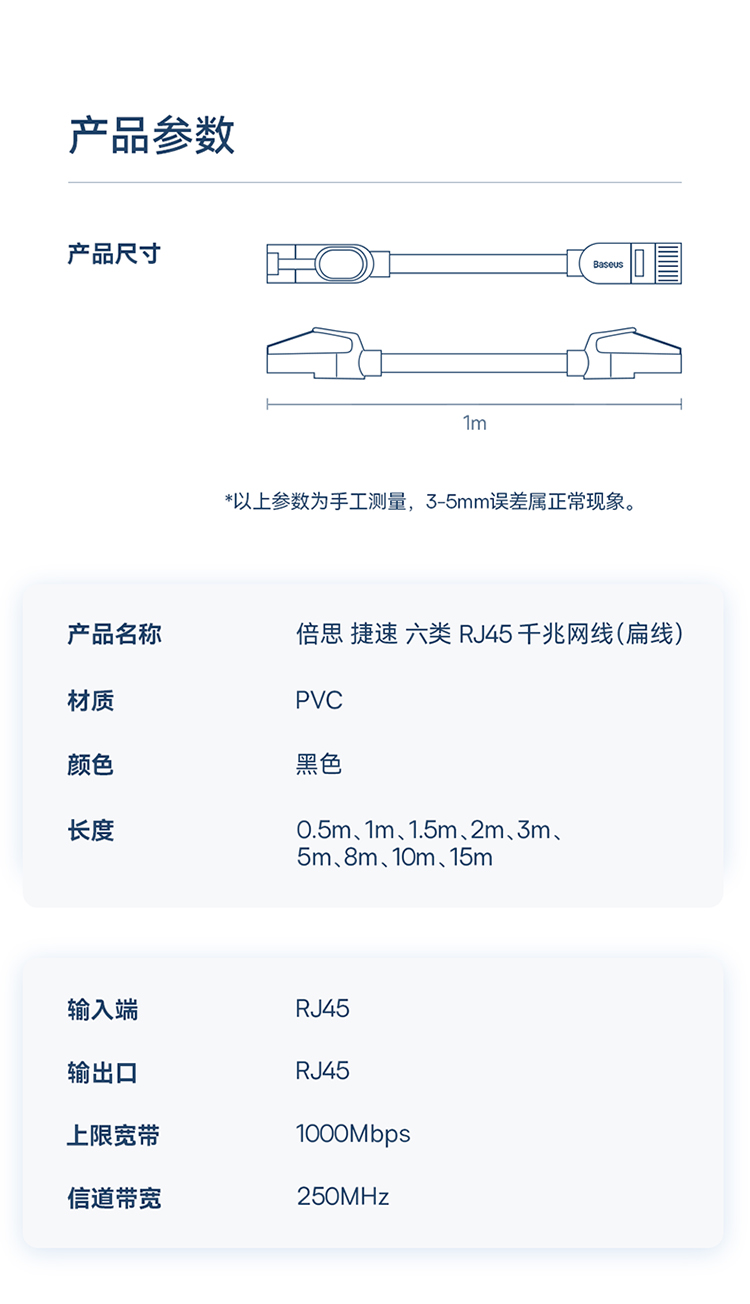 倍思 捷速 六类RJ45千兆网线(扁线)