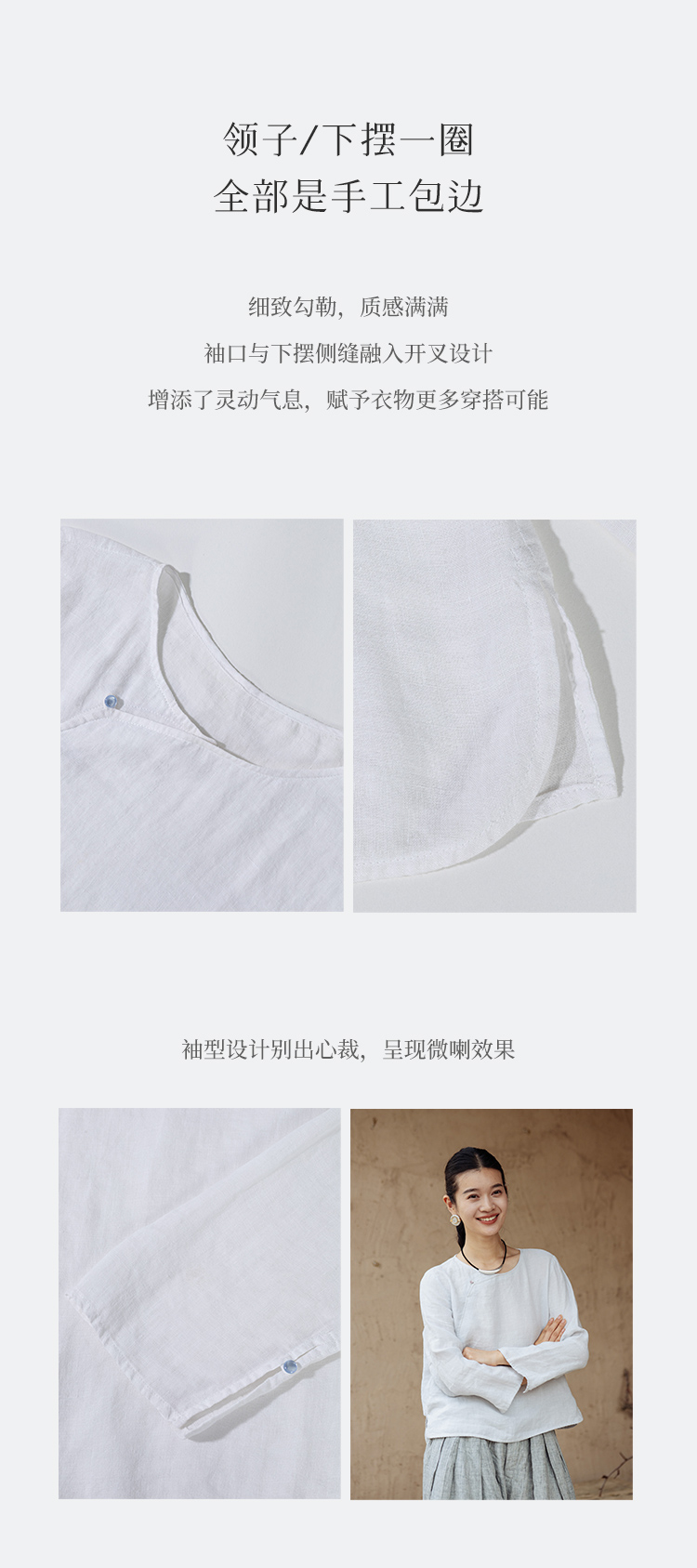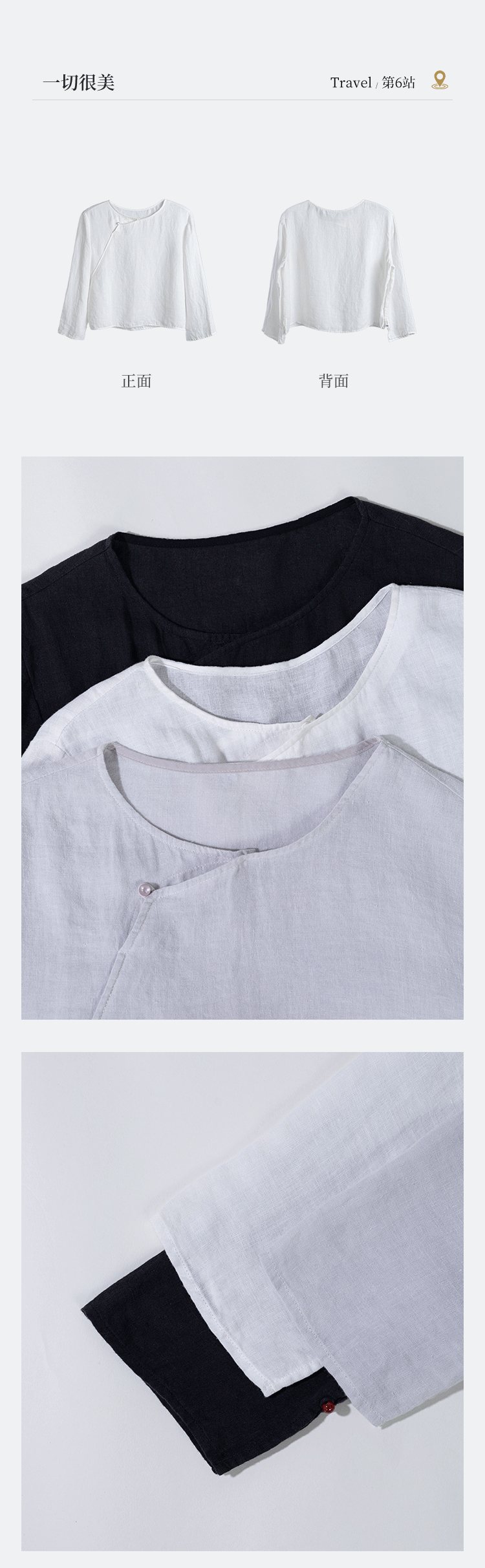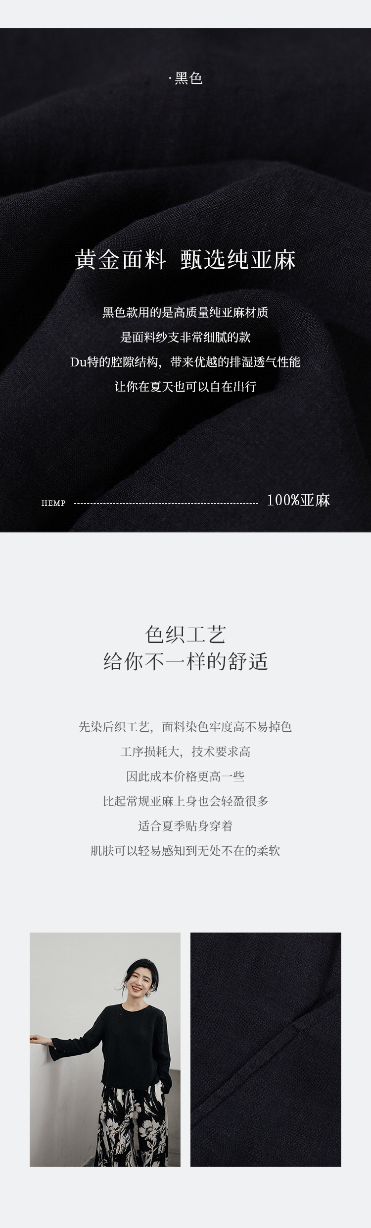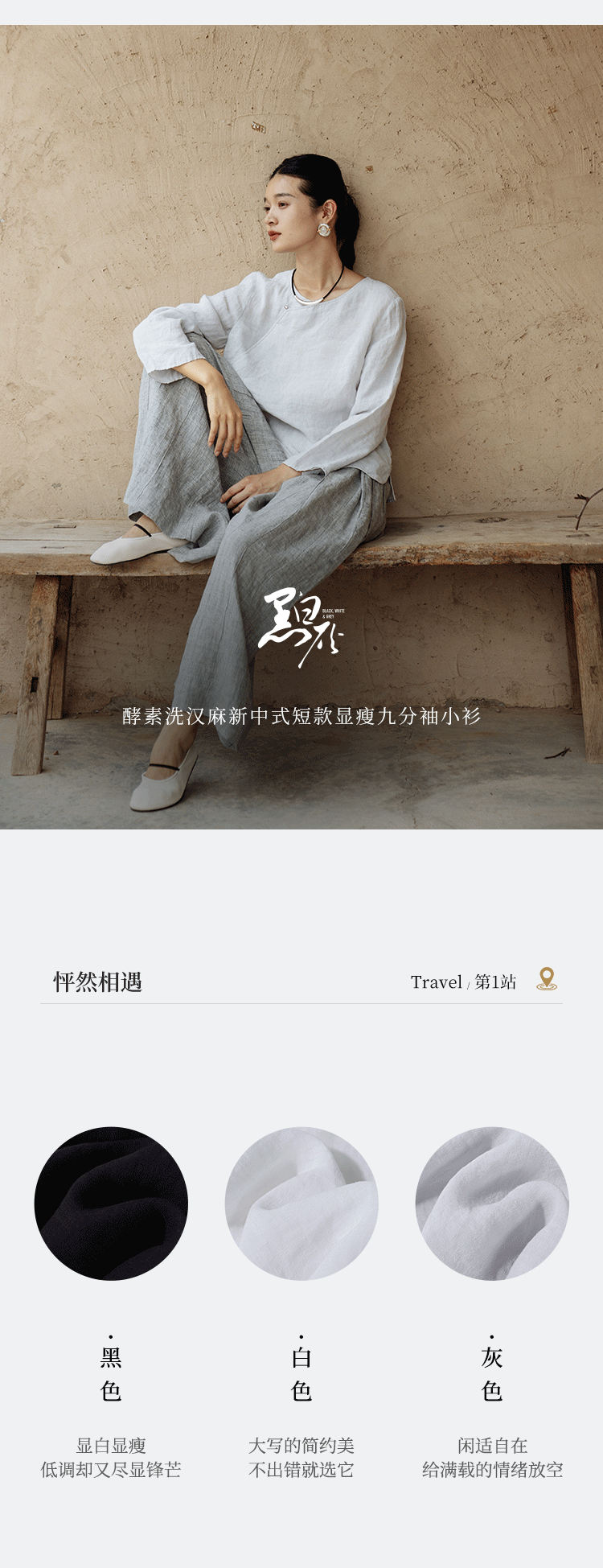 绽放467朵【黑白灰系列·自在美】酵素洗汉麻新中式小衫国风上衣