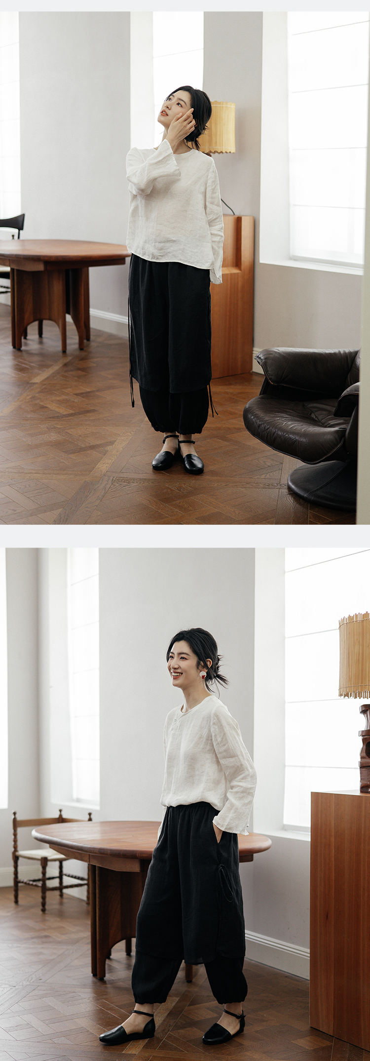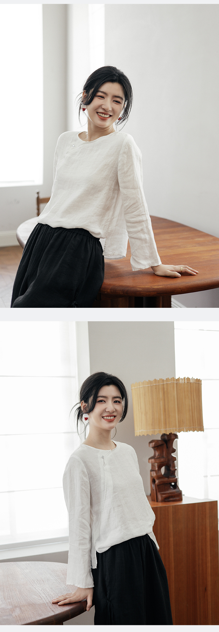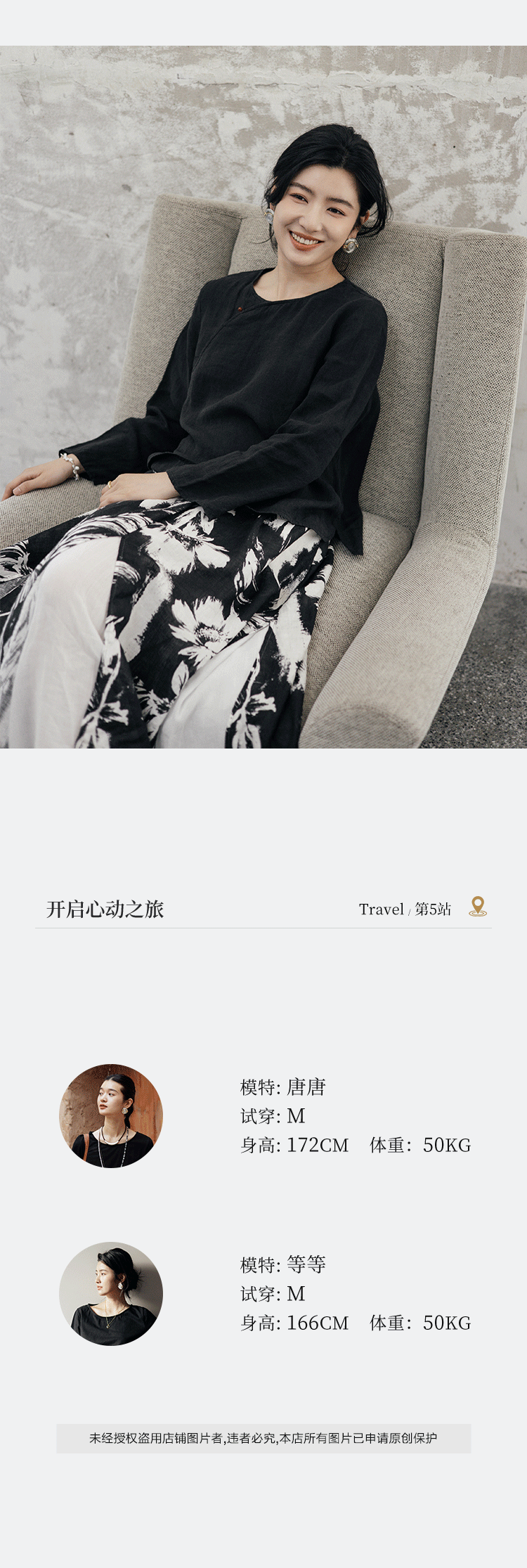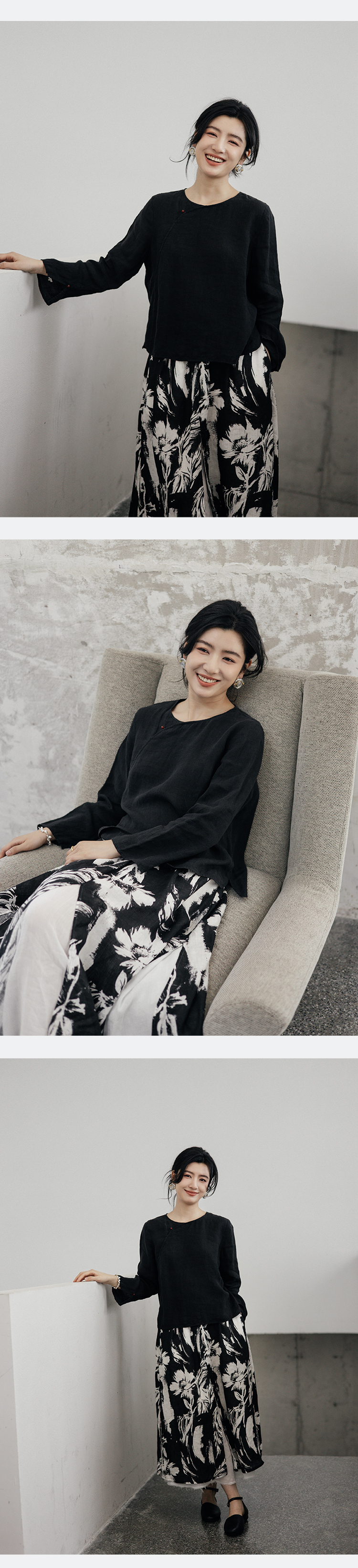 绽放467朵【黑白灰系列·自在美】酵素洗汉麻新中式小衫国风上衣