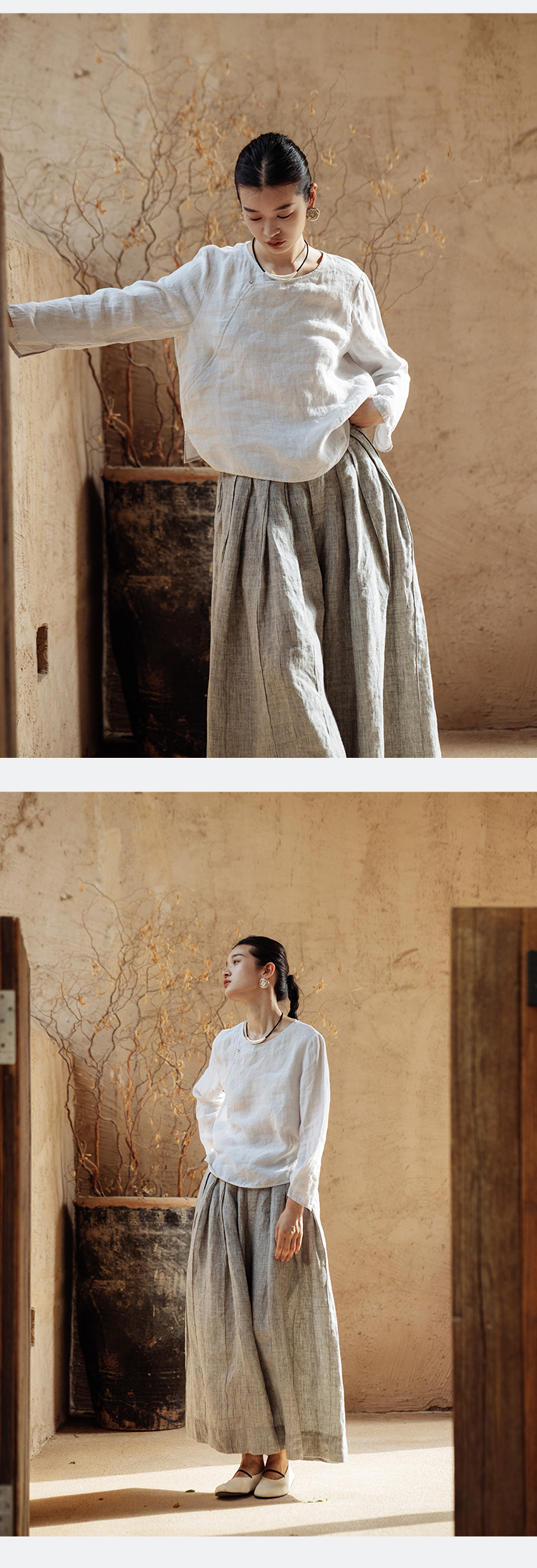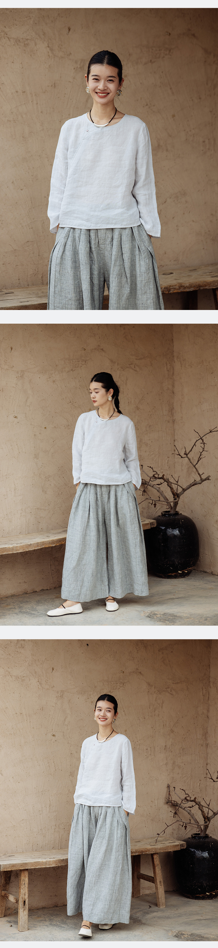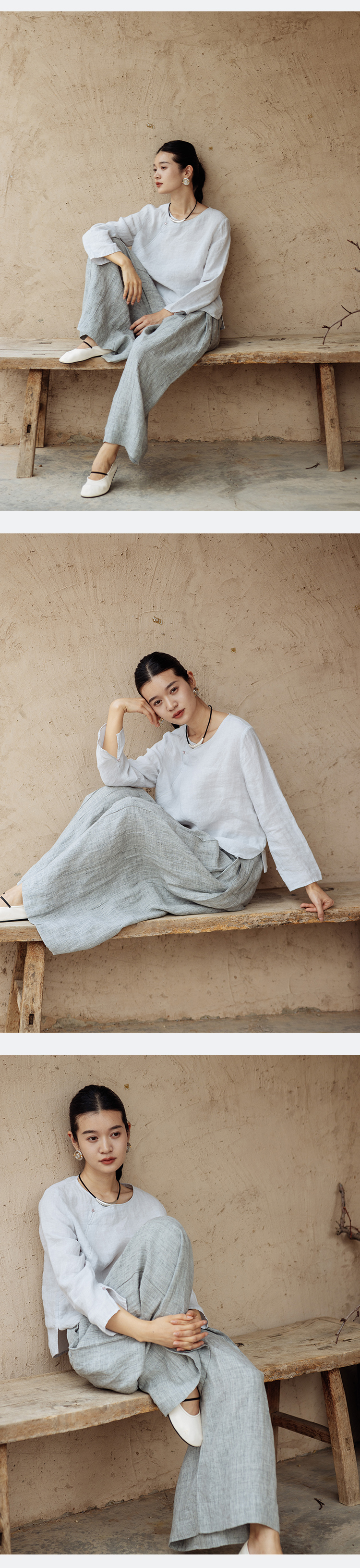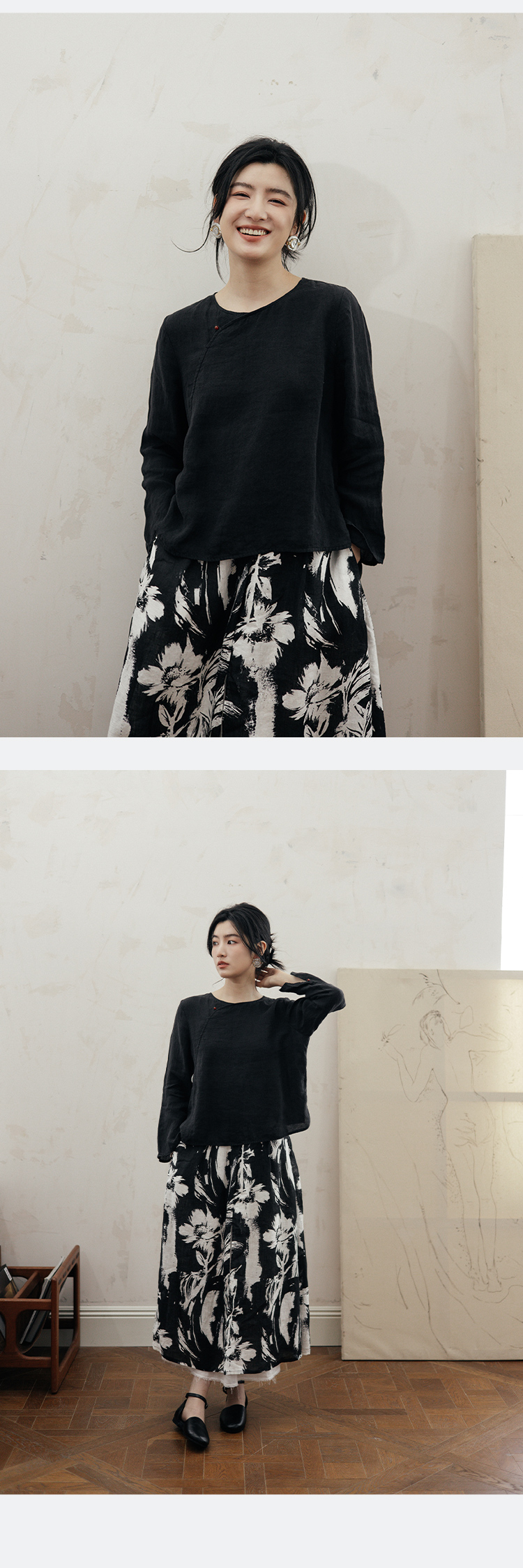 绽放467朵【黑白灰系列·自在美】酵素洗汉麻新中式小衫国风上衣