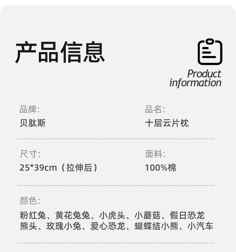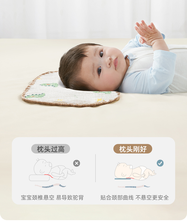 贝肽斯新生儿云片枕头婴儿四季0到6个月宝宝吸汗透气纯棉纱布枕巾
