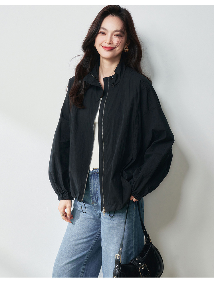 25春季酷飒休闲户外工装风小立领廓形夹克宽松拉链时尚外套!