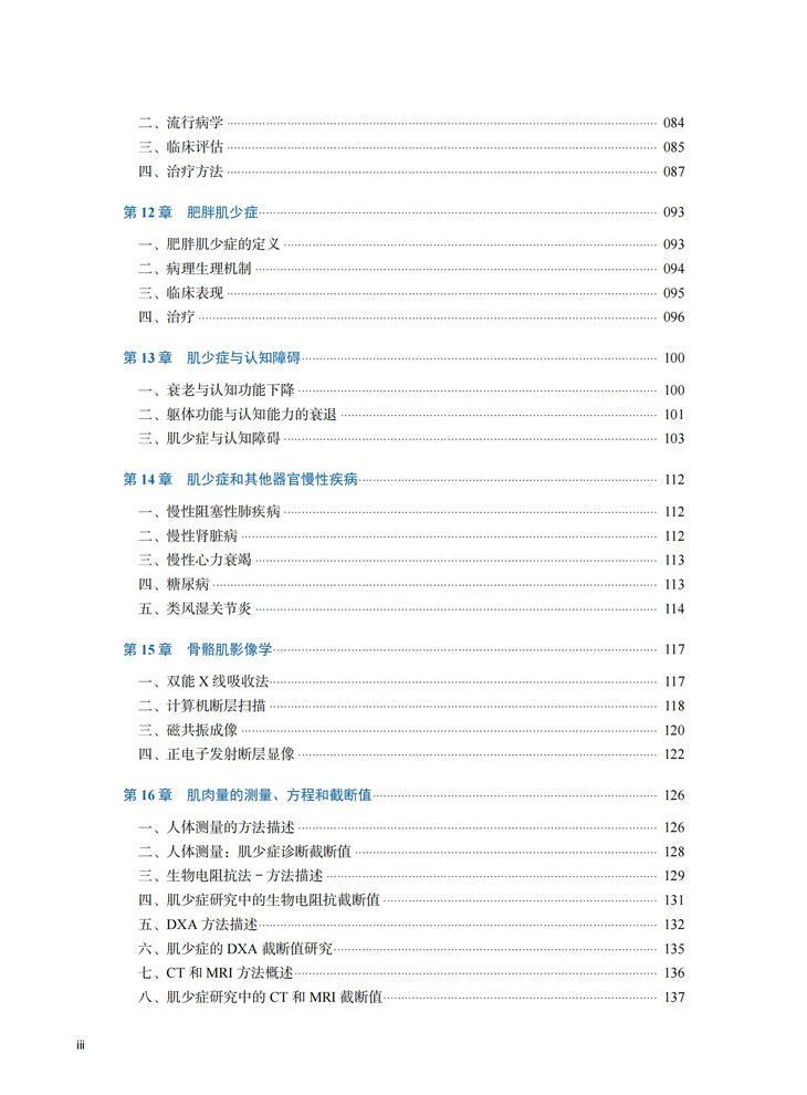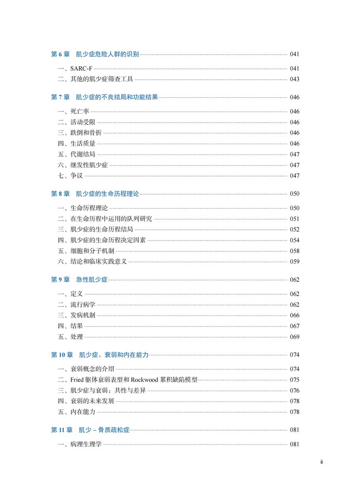 本书引进自 WILEY 出版集团,是一部全面、系统介绍肌少症及其治疗方法和预防策略的著作。随着社会老龄化进程加速,肌少症对老年人健康的危害已经得到广泛关注,而国内关于此类疾病的图书甚少。全书共 28 章,详细阐明了肌少症的定义、流行病学、发生危险因素、评估及不良后果,并提出了运动干预、营养支持和预防手段等多种管理策略。书中配有大量精美插图,理论翔实,内容丰富,表达深入浅出,可作为从事老年健康管理和科研人员的案头工具书,也可作为医学生、老年健康服务者的指导参考书。