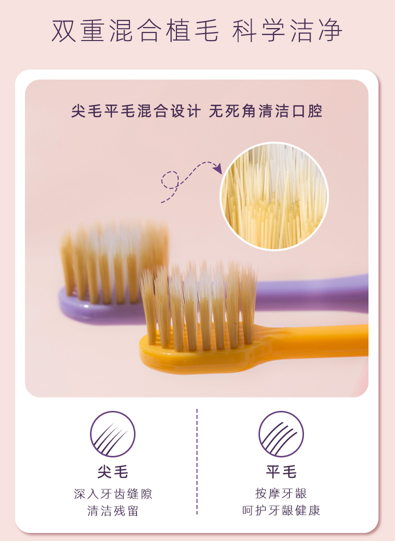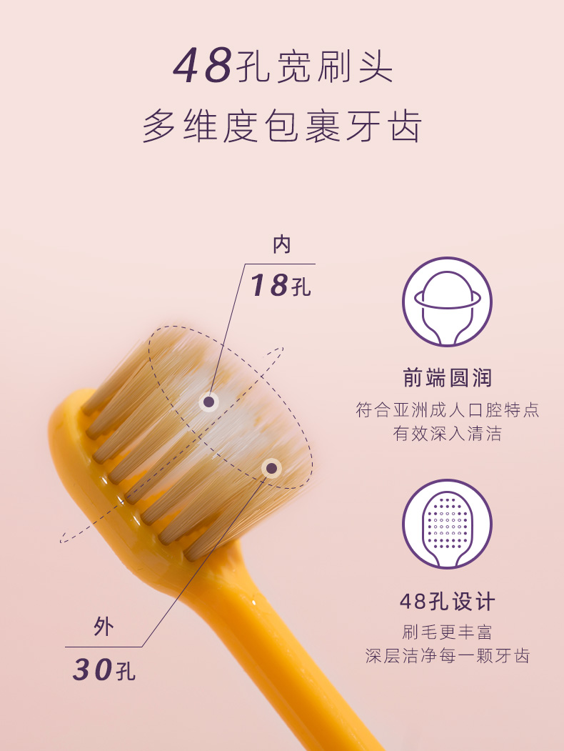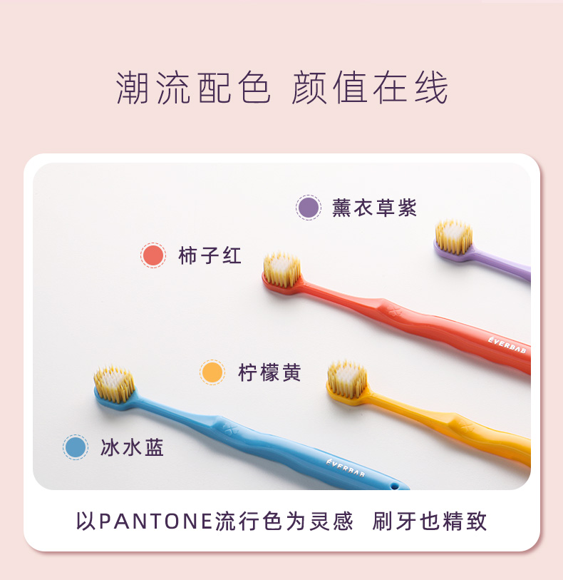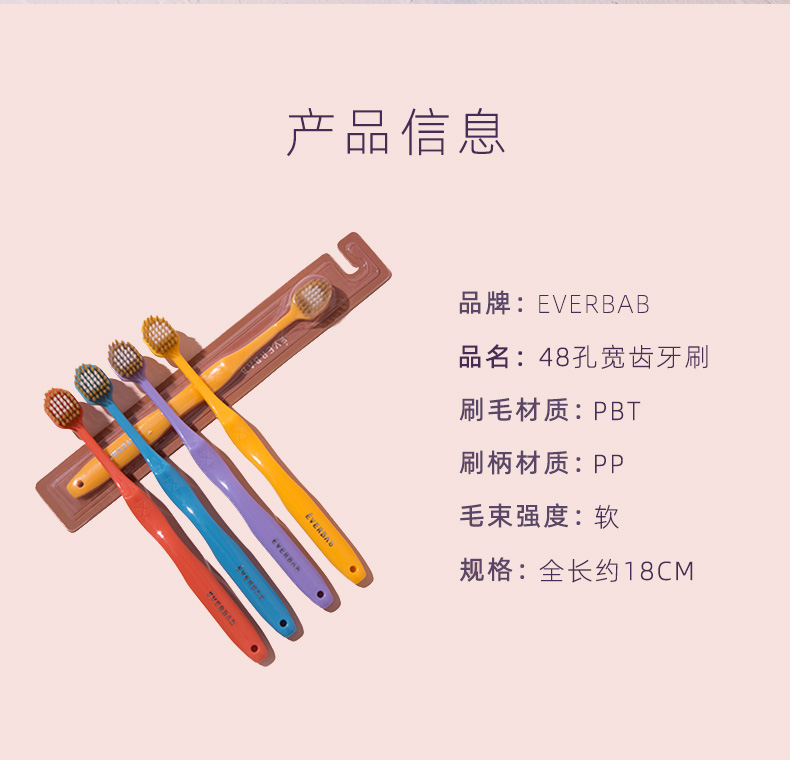 买即随机送一支到手五个 EVERBAB艾蓓拉 48孔宽齿牙刷4支