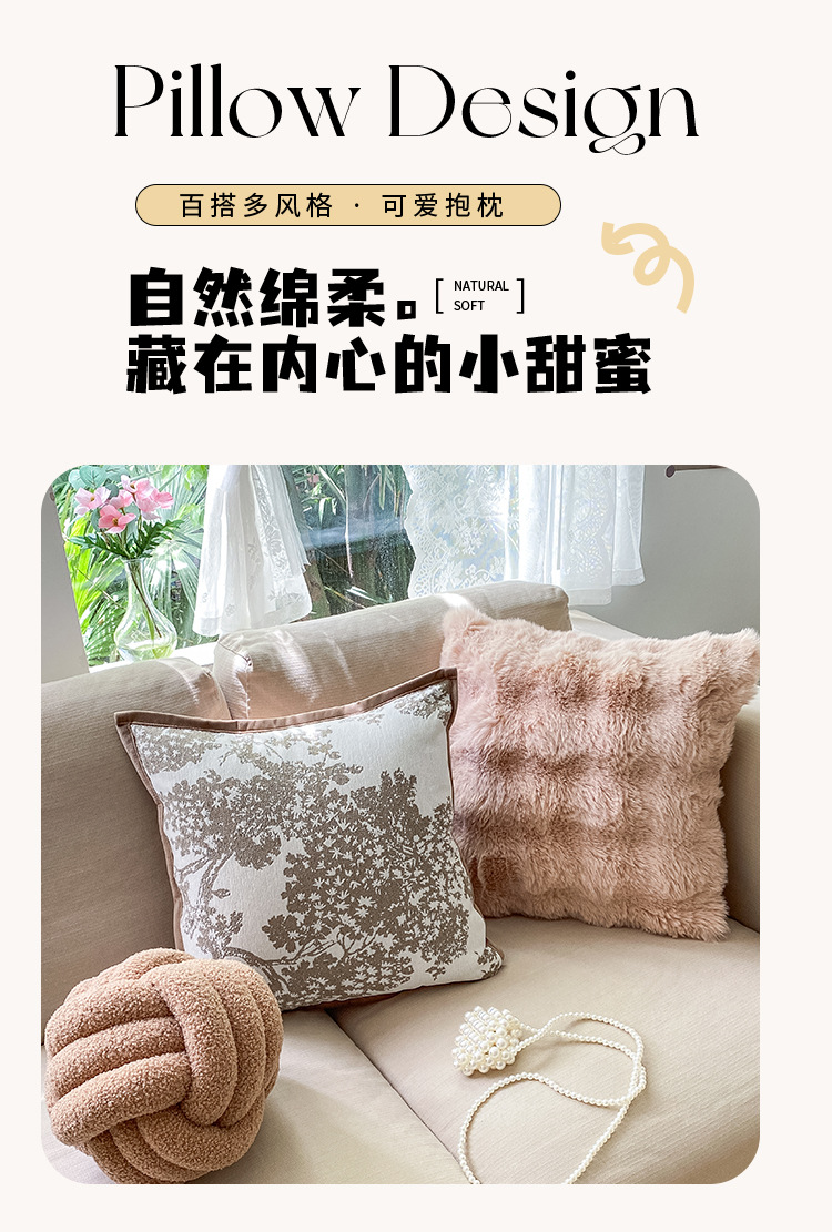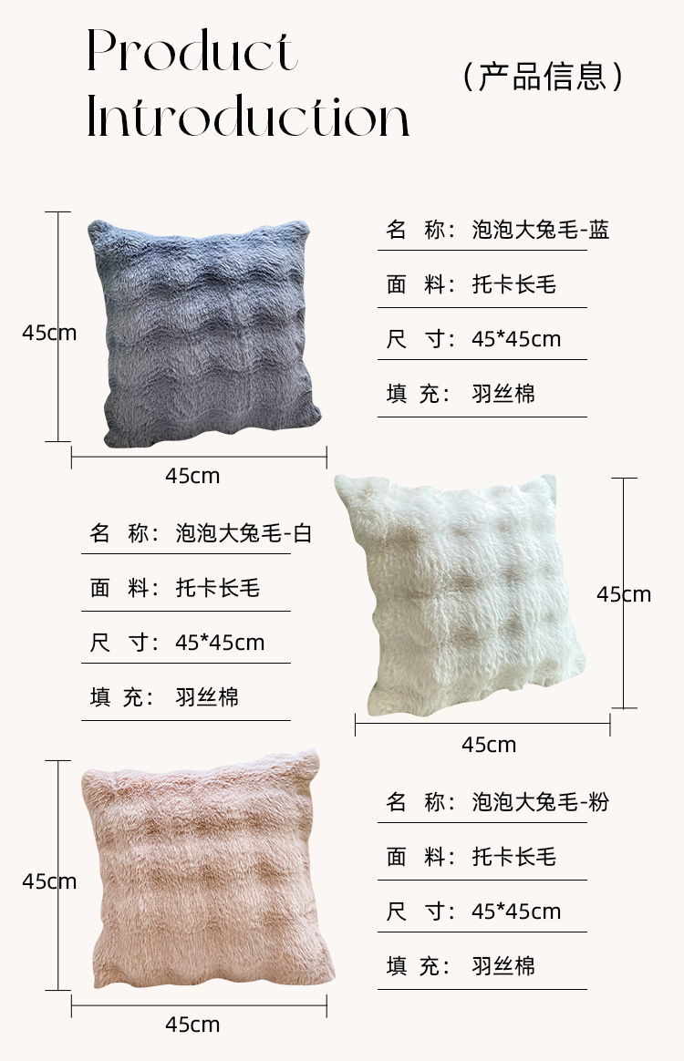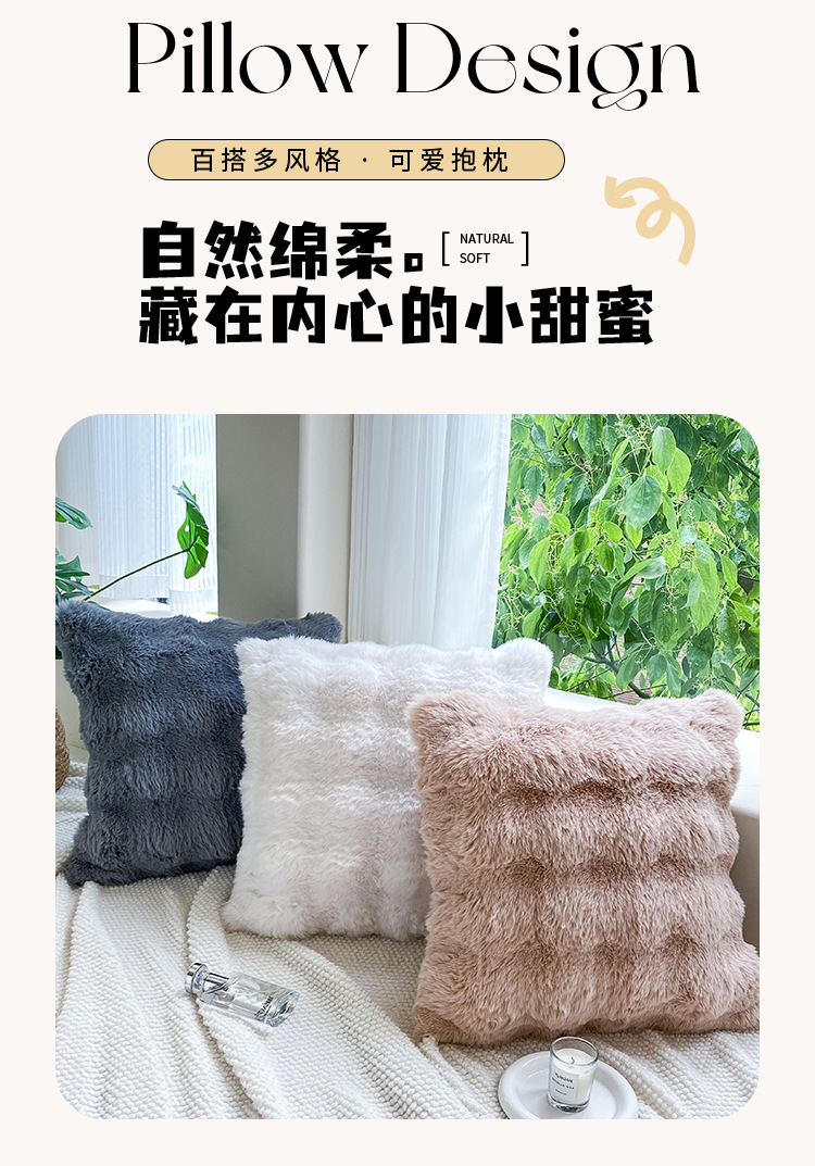 【简约轻奢!托卡斯长兔毛抱枕】云柔触感,温柔细腻,秋冬北欧高品质长兔剪格毛绒兔毛奢华靠垫保暖