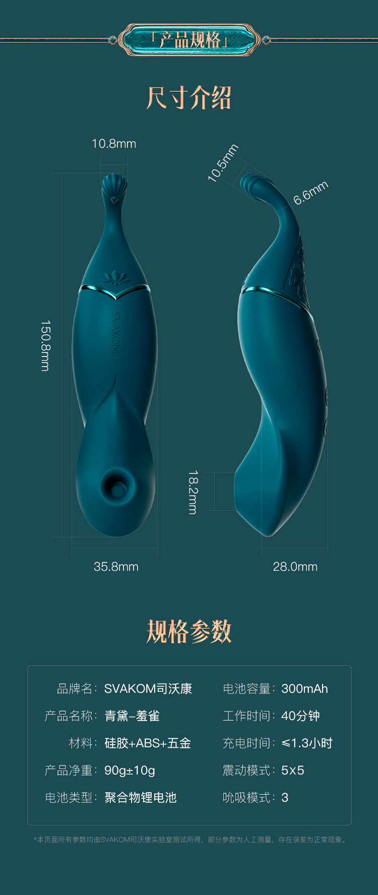 美国司沃康 SVAKOM 小号震动棒G点师女用自慰器静音按摩棒点潮笔成人情趣用品 青黛羞雀吮吸器
