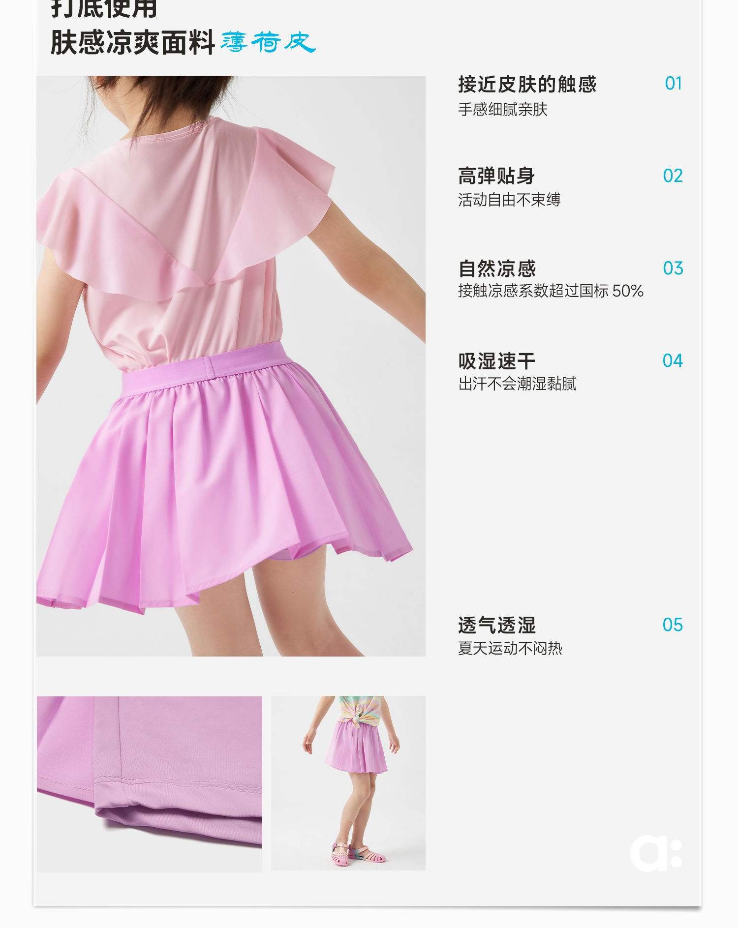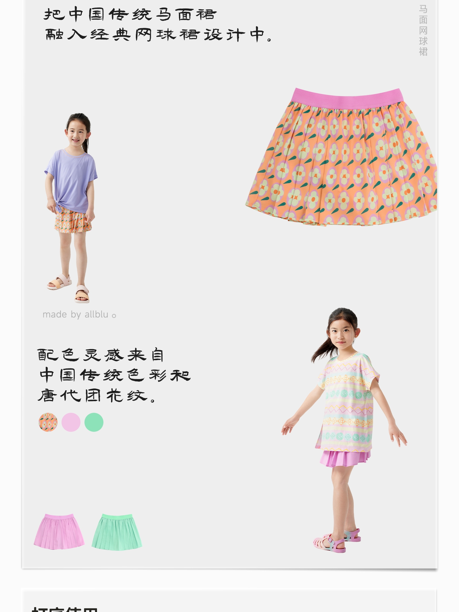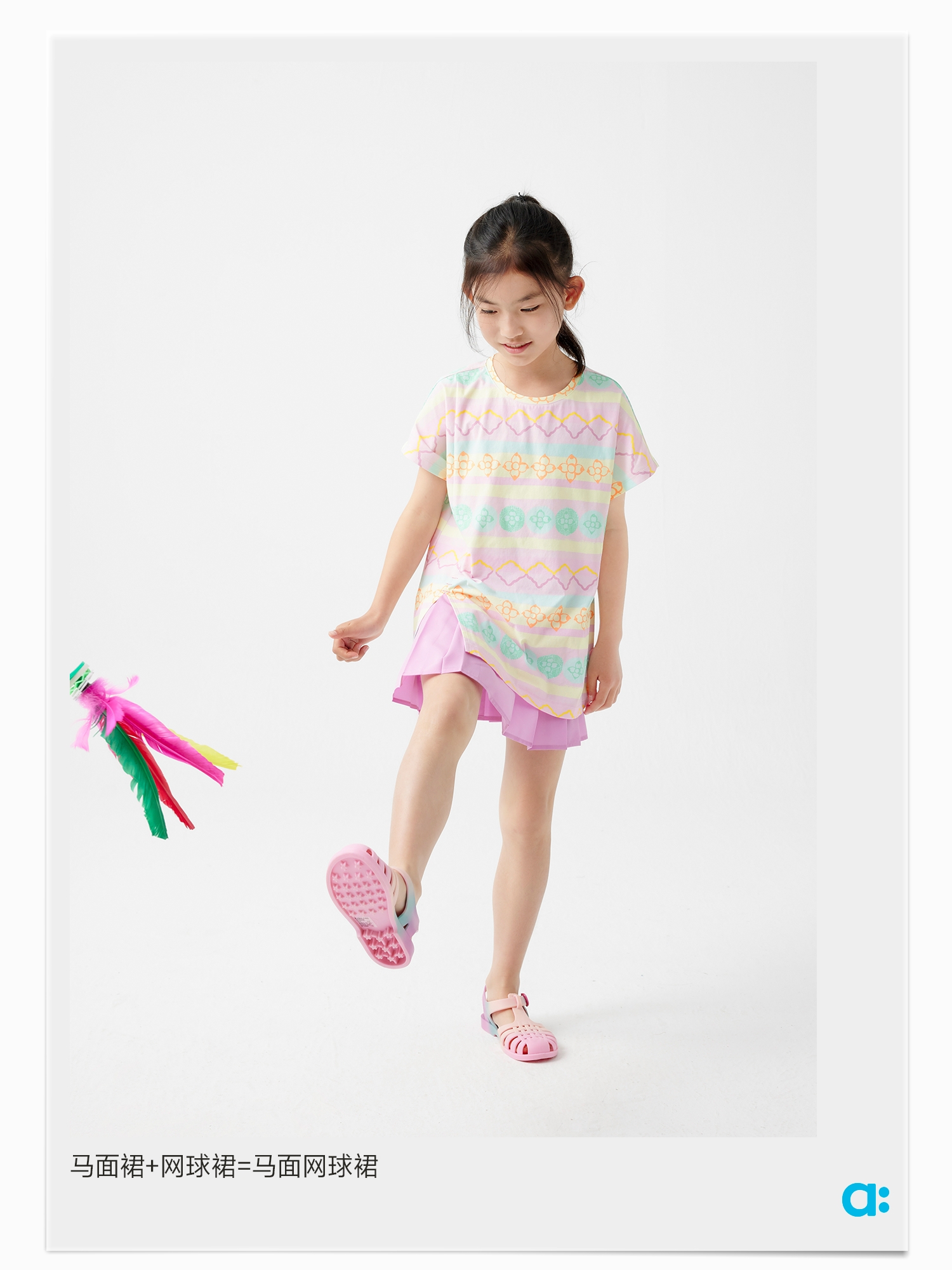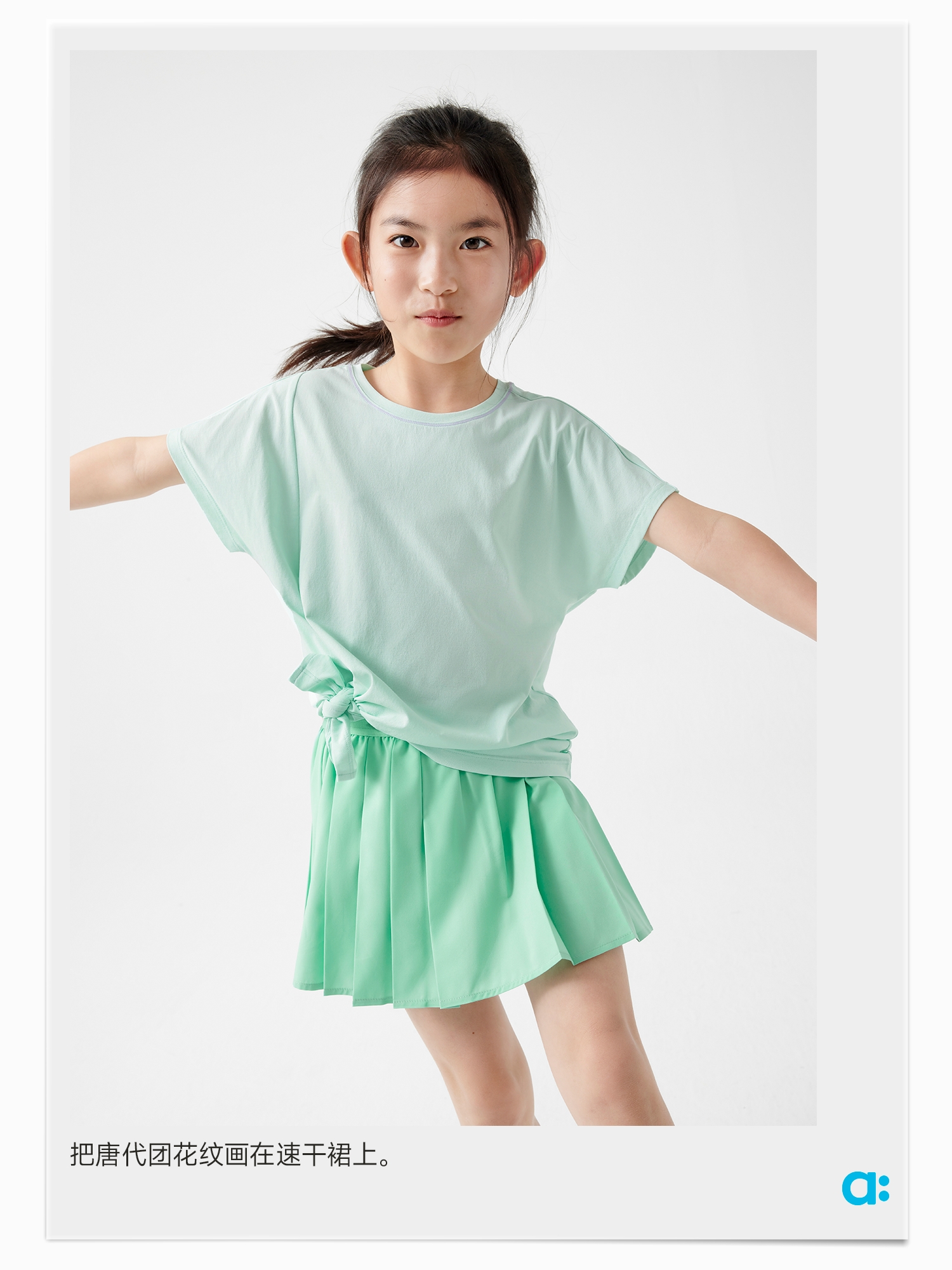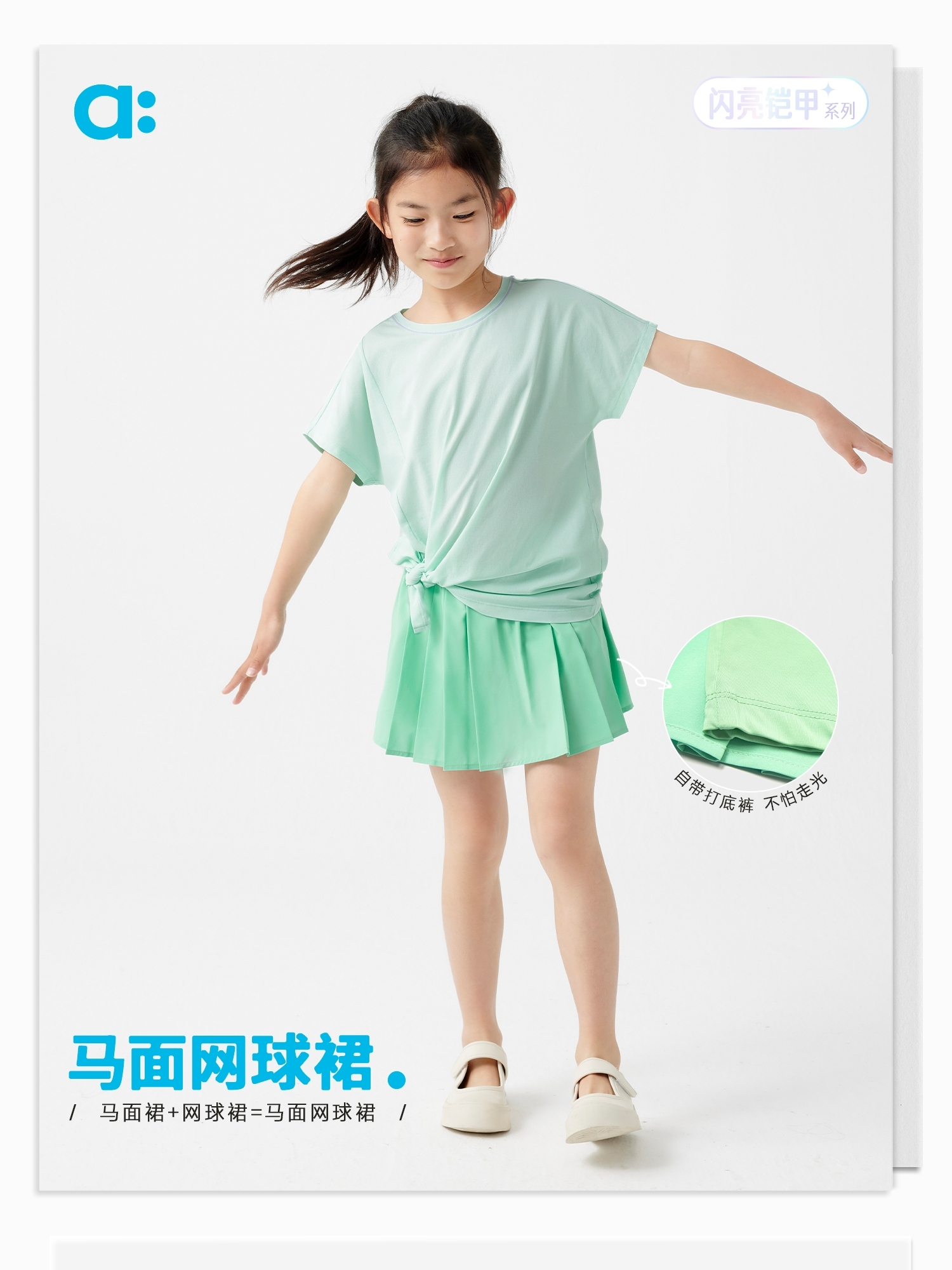 【8月焕新-闪亮铠甲】幼岚「薄荷皮」马面网球裙凉感透气新中式儿童半身裙ZY