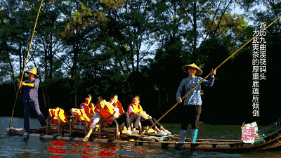 乘坐古朴竹筏畅游九曲溪,九曲溪是武夷山风光最集中之处,坐在竹筏之上尽情欣赏九曲两岸武夷“碧水丹山”之绝妙佳景