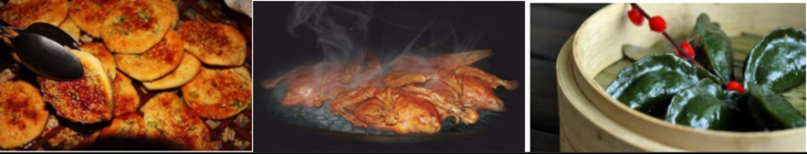 清明粿:用米粉加上山里野生的鼠曲草打制的皮,里面包上自选的馅(白萝卜粉丝虾米馅、芋头丝馅、咸菜馅、各式各样,每种还分辣的和不辣的。