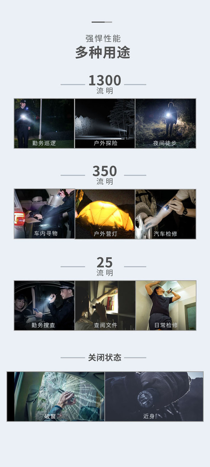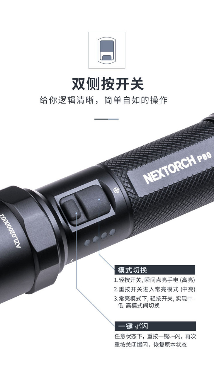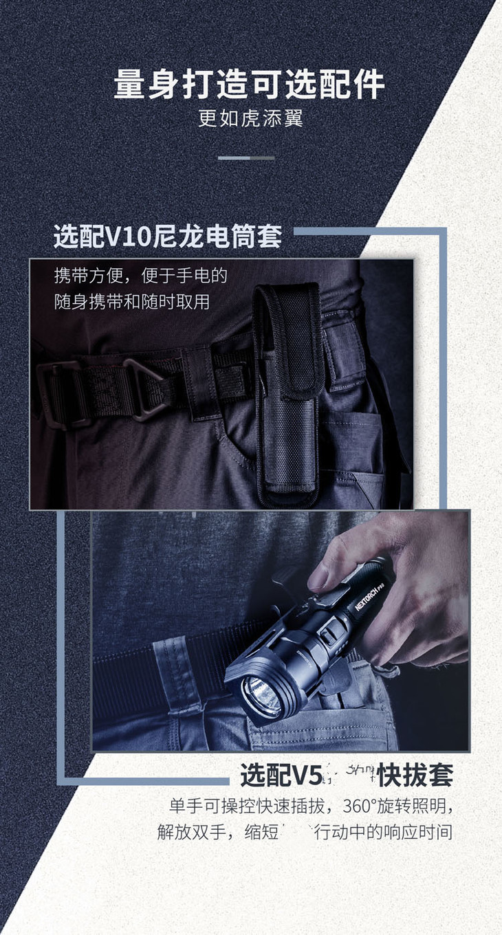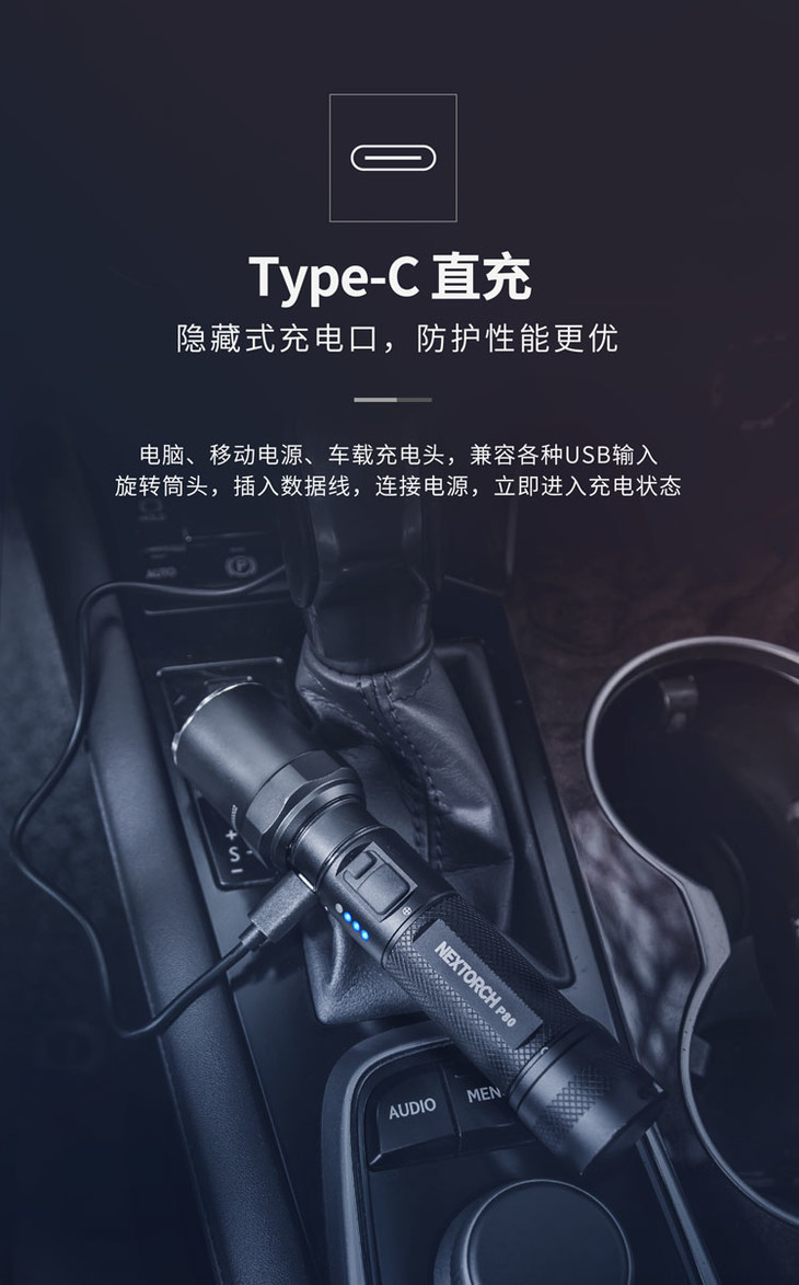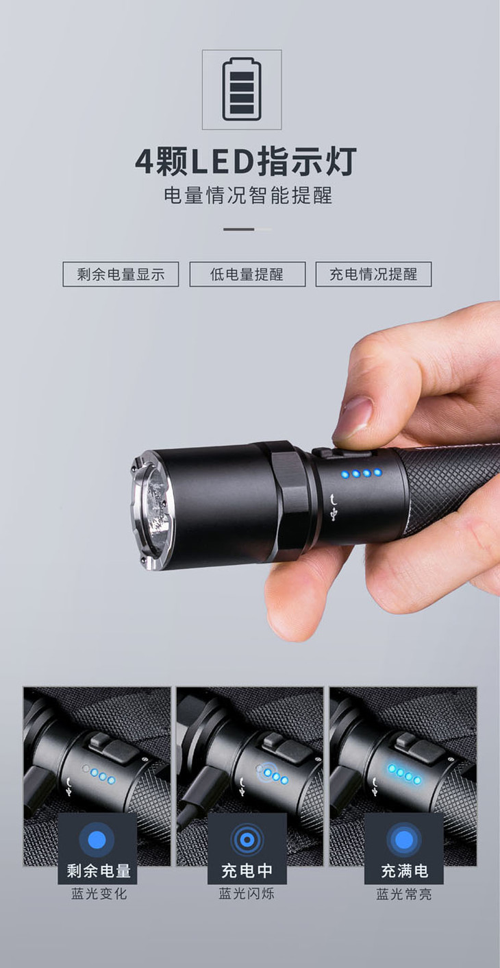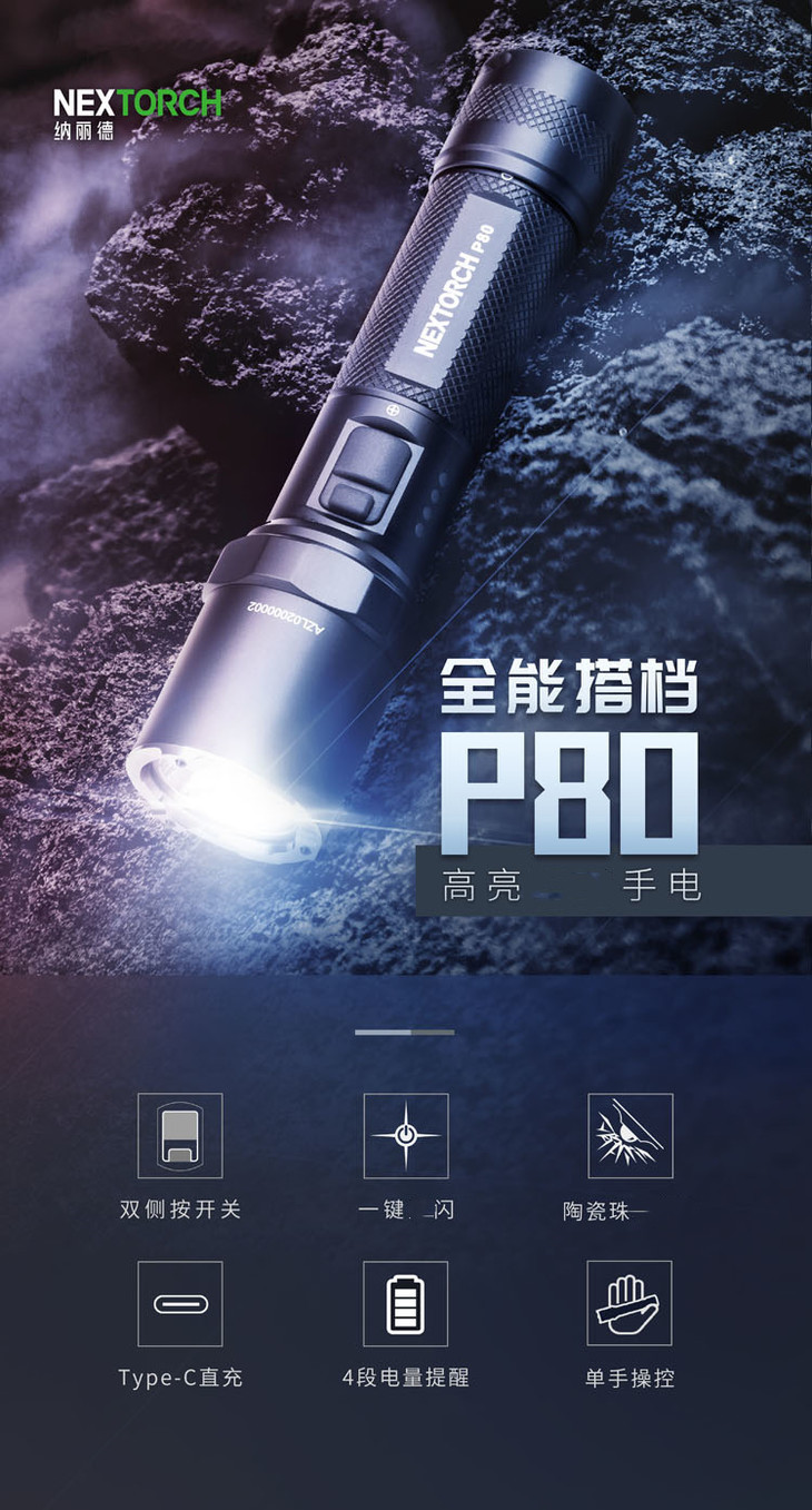 纳丽德精选P80高亮强光续航蓝光手电筒巡逻可充电户外照明防泼水
