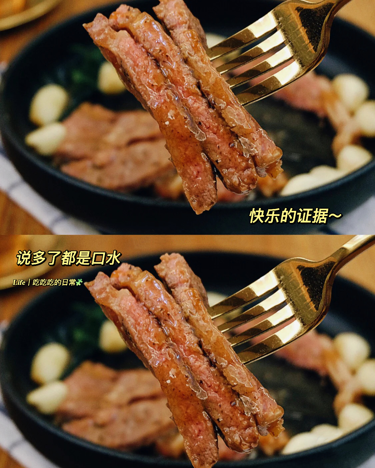 像我一样无肉不欢的朋友们在哪里!脑补一下,烧热的煎锅,“滋啦滋啦”炙烤着鲜嫩的牛排,连空气中都散发着浓郁的牛油香气,如此诱人的画面,吃货们有没有在暗自吞口水呢