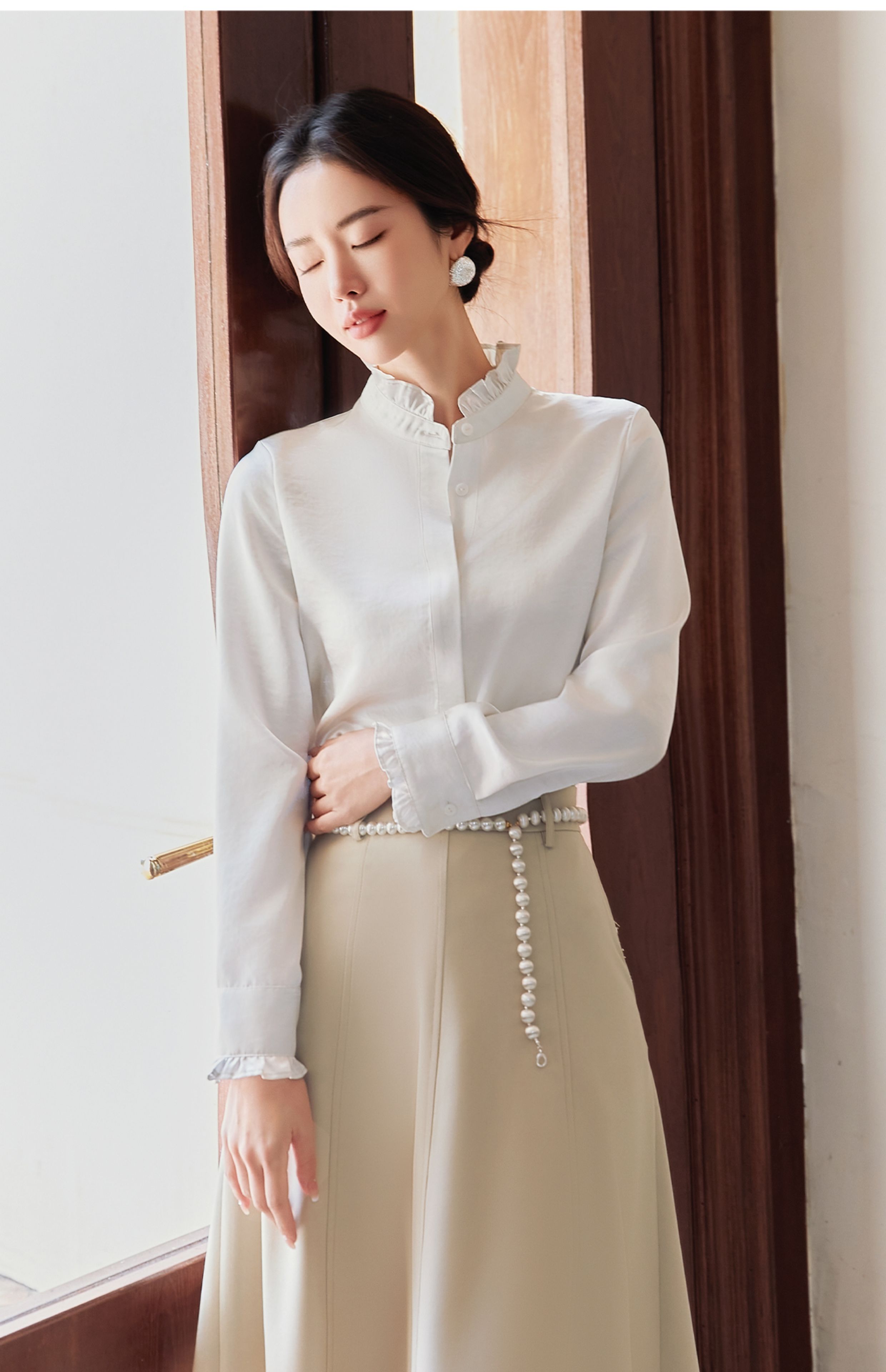 FUYAO扶摇 白色长袖衬衫女2025新款法式雪纺衬衣设计感花边领上衣
