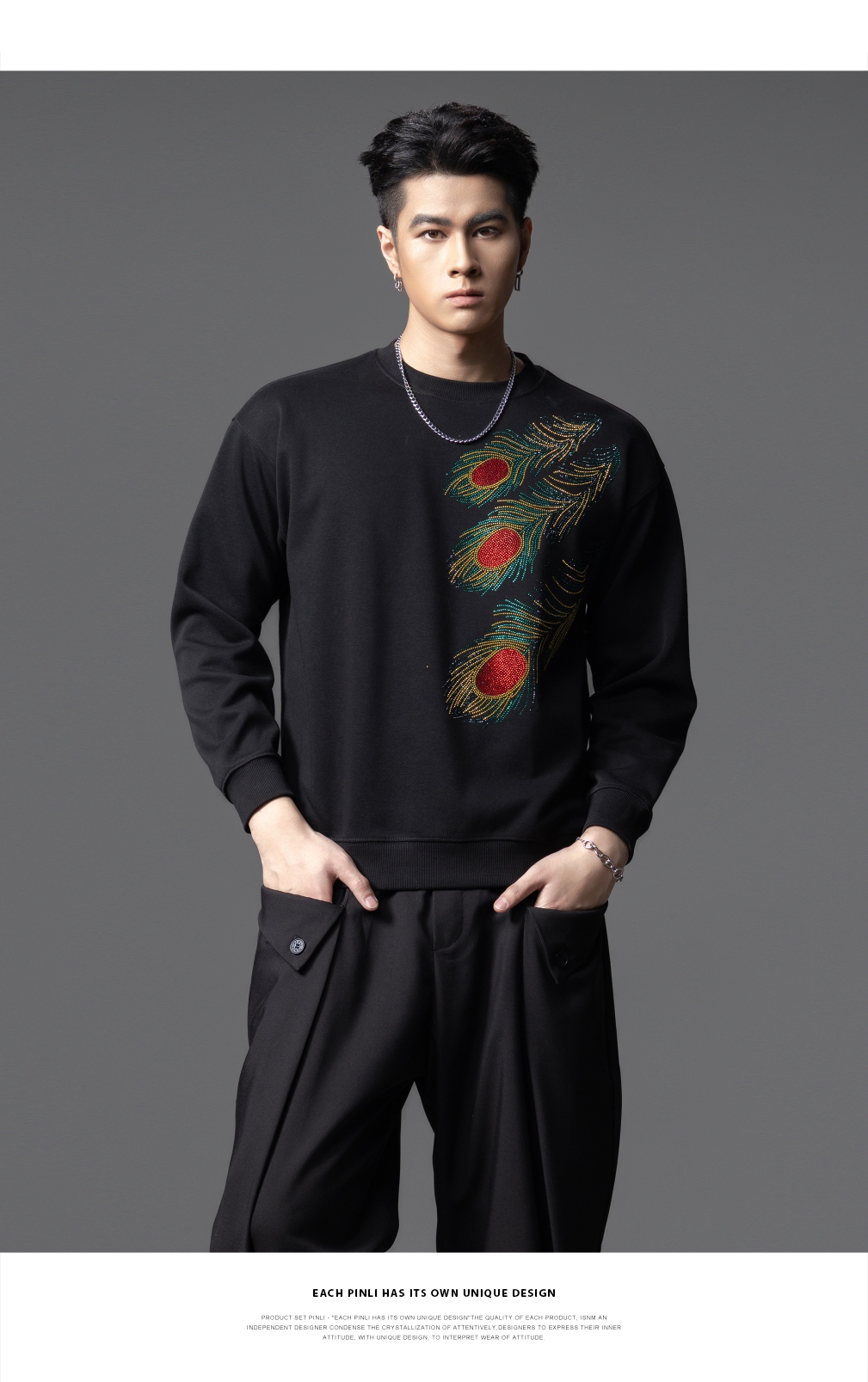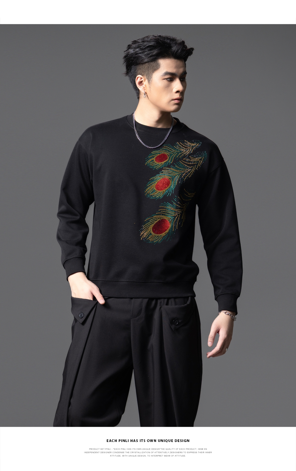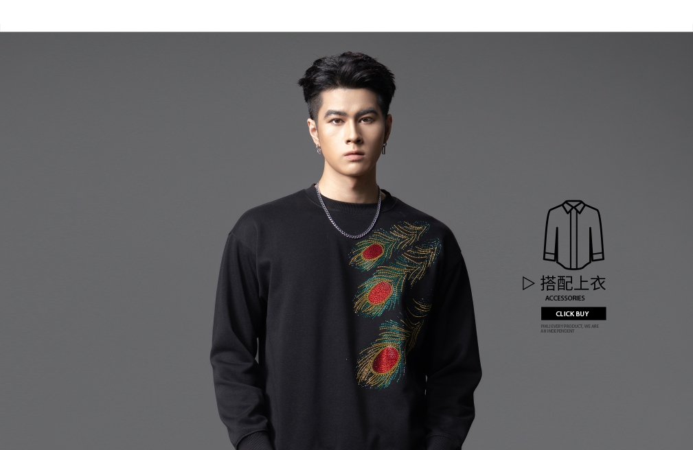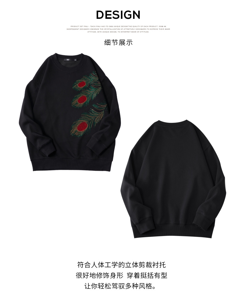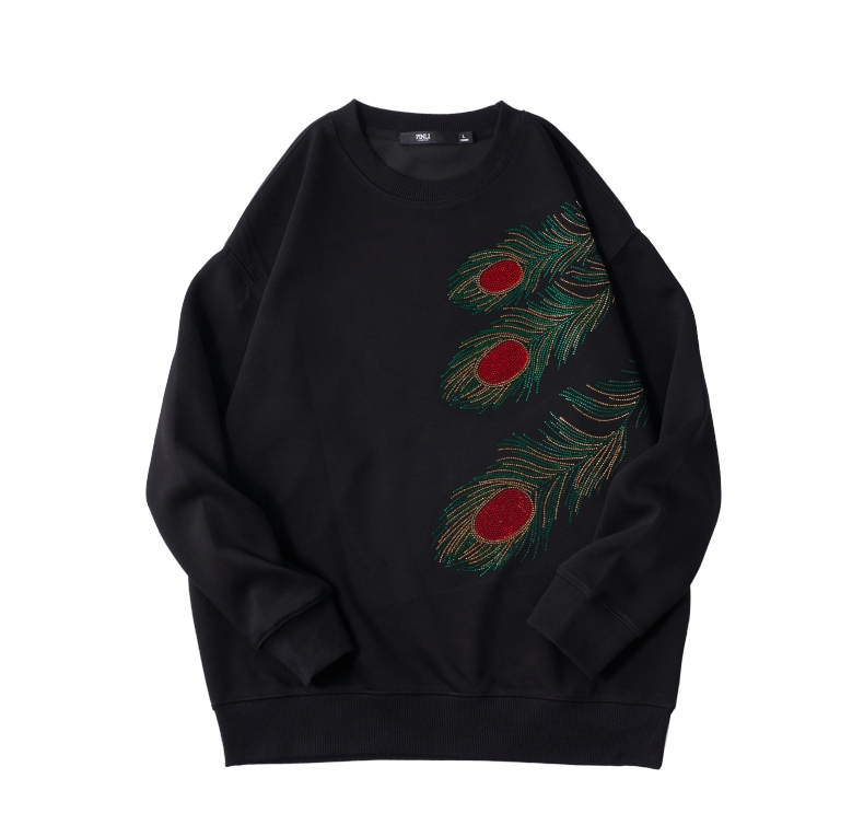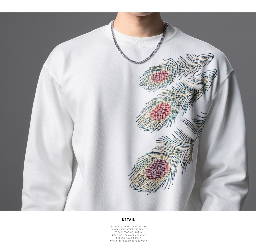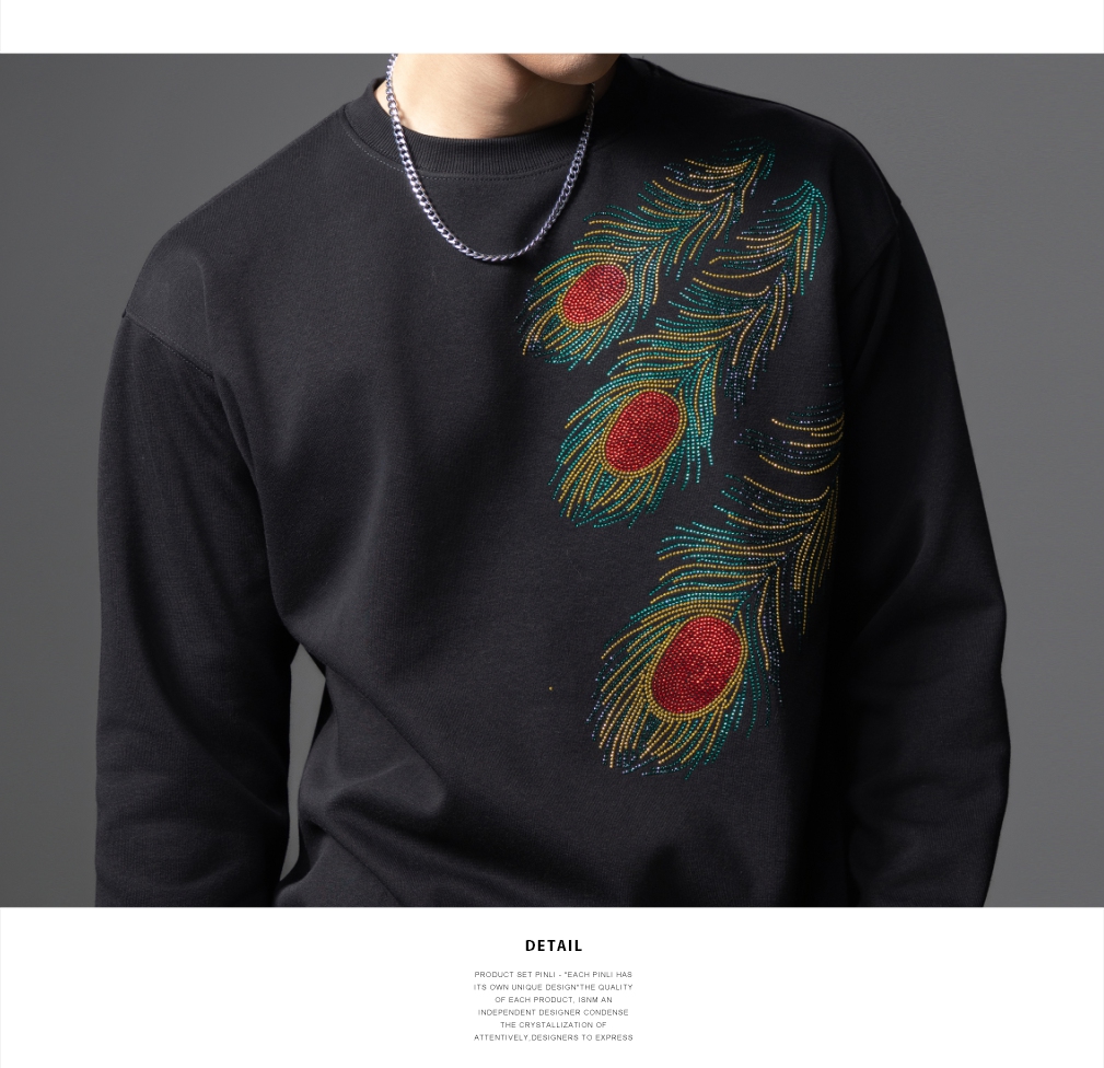PINLI品立2025秋季新款烫钻圆领套头卫衣潮牌百搭长袖休闲男上衣BG253109009