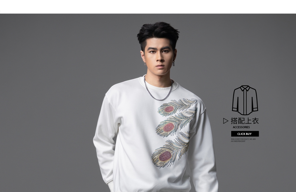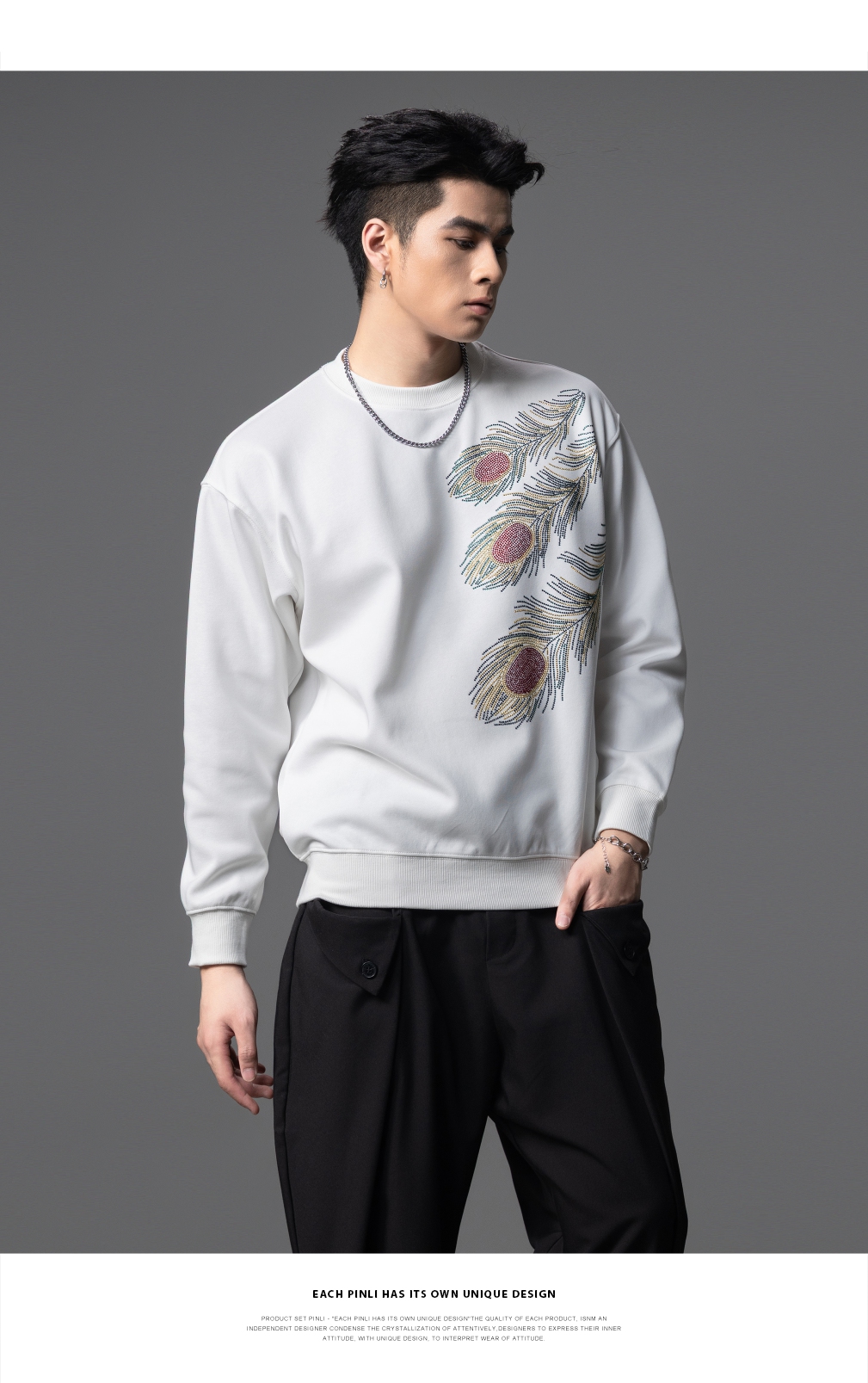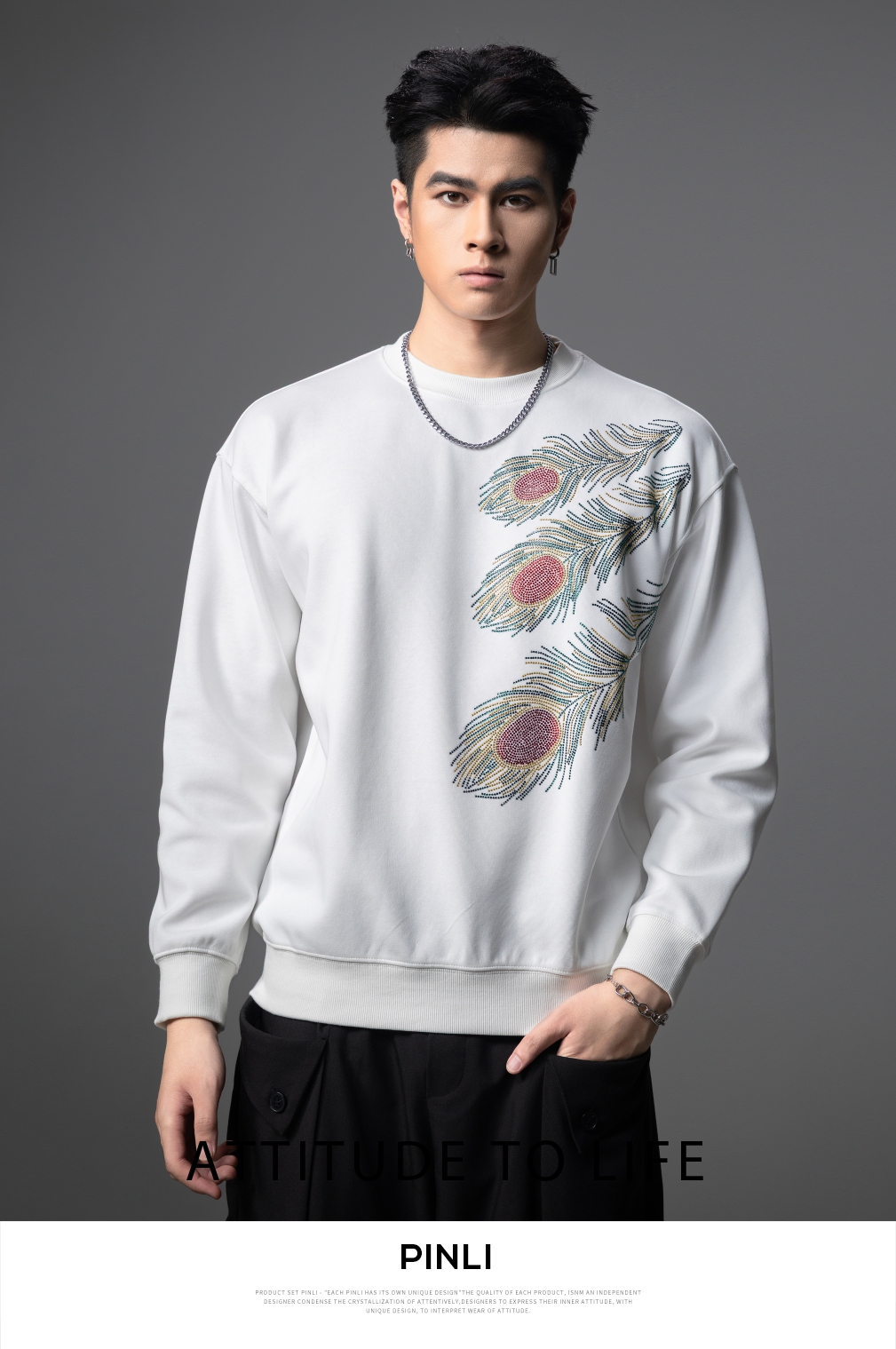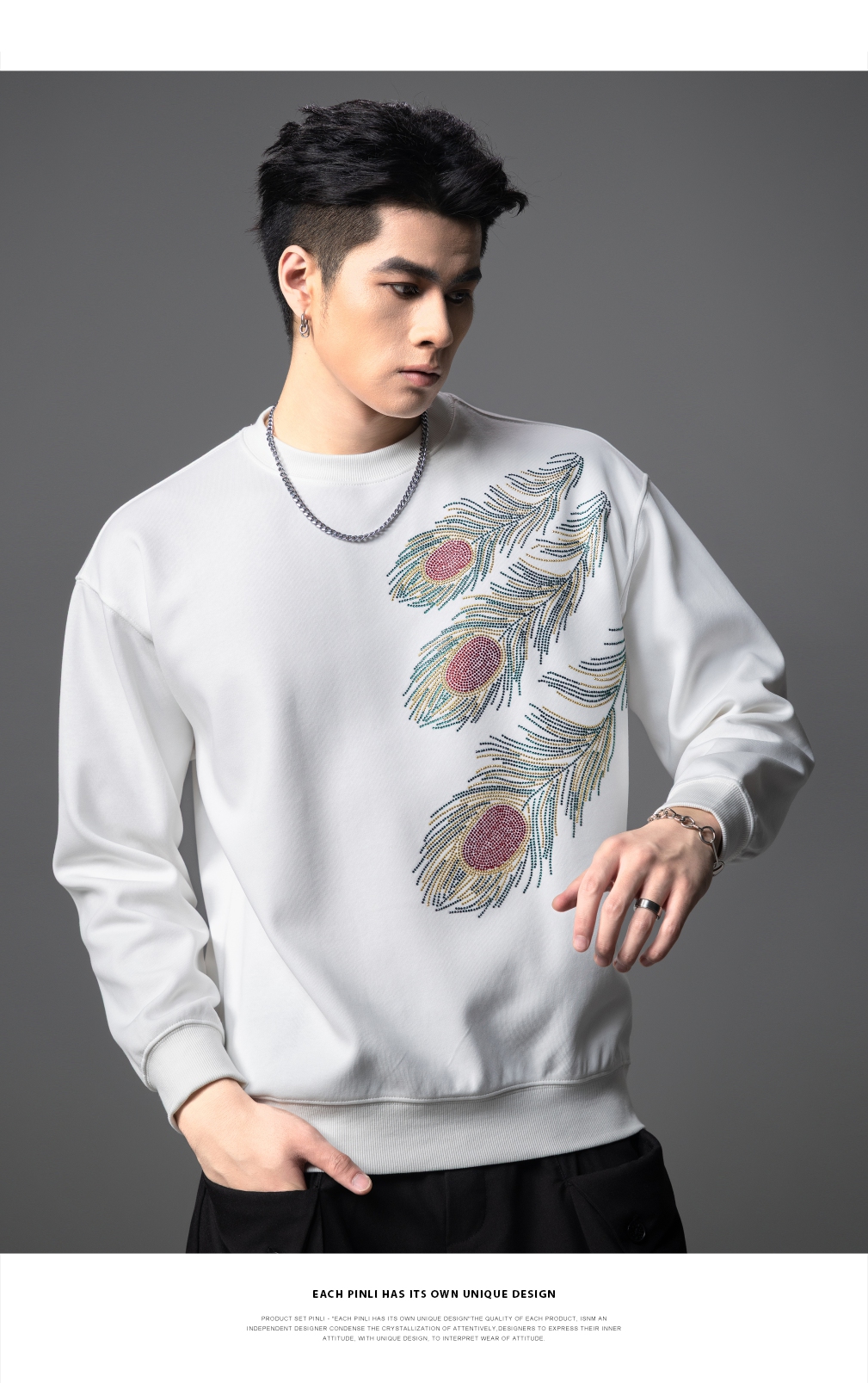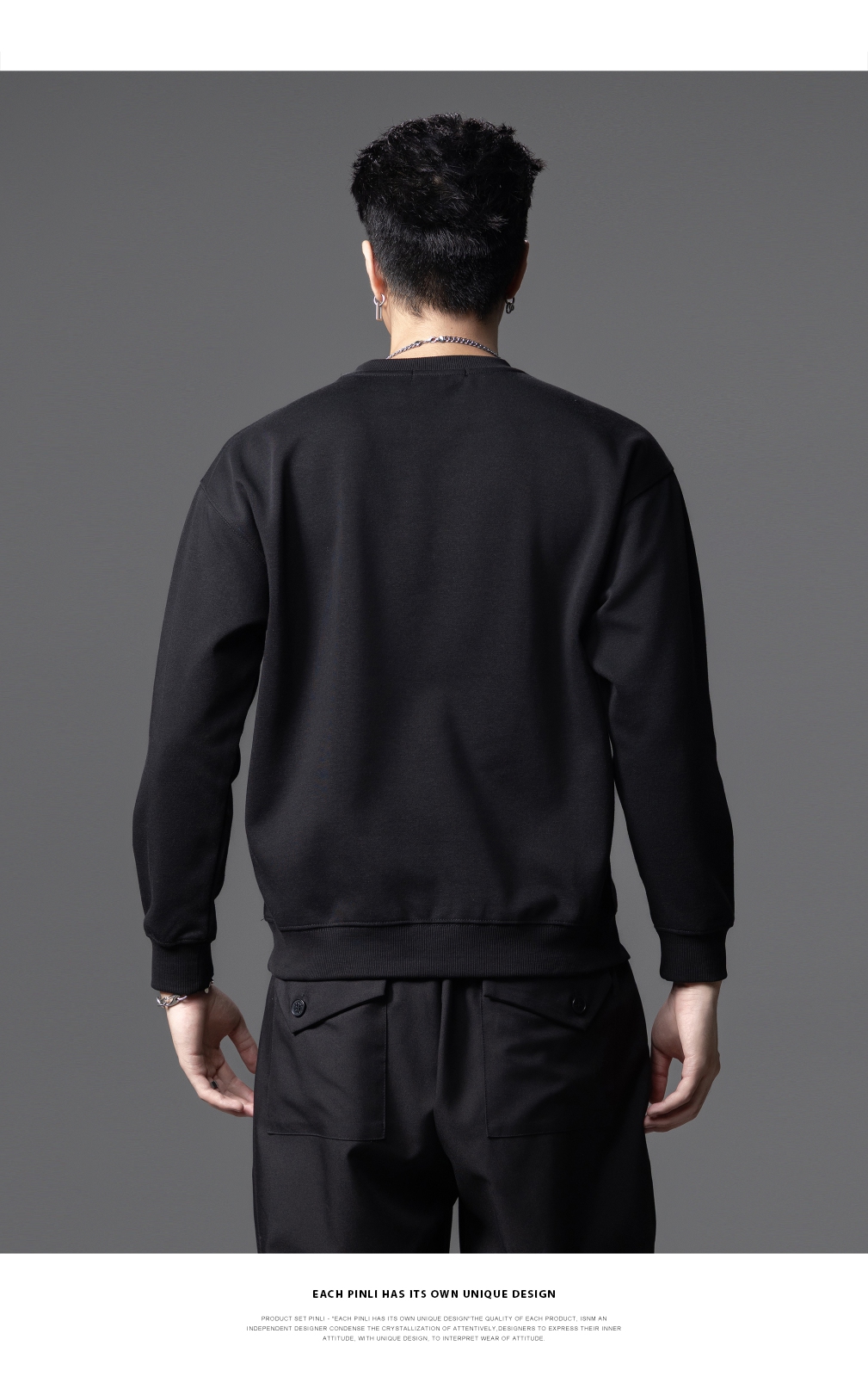 PINLI品立2025秋季新款烫钻圆领套头卫衣潮牌百搭长袖休闲男上衣BG253109009