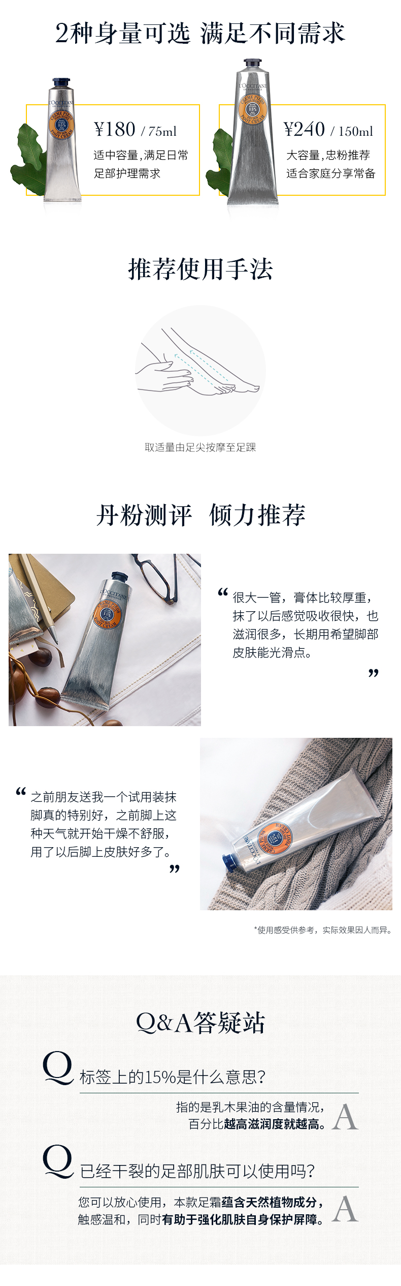 【1F】欧舒丹足部护理 乳木果丰凝润足护足霜150ml