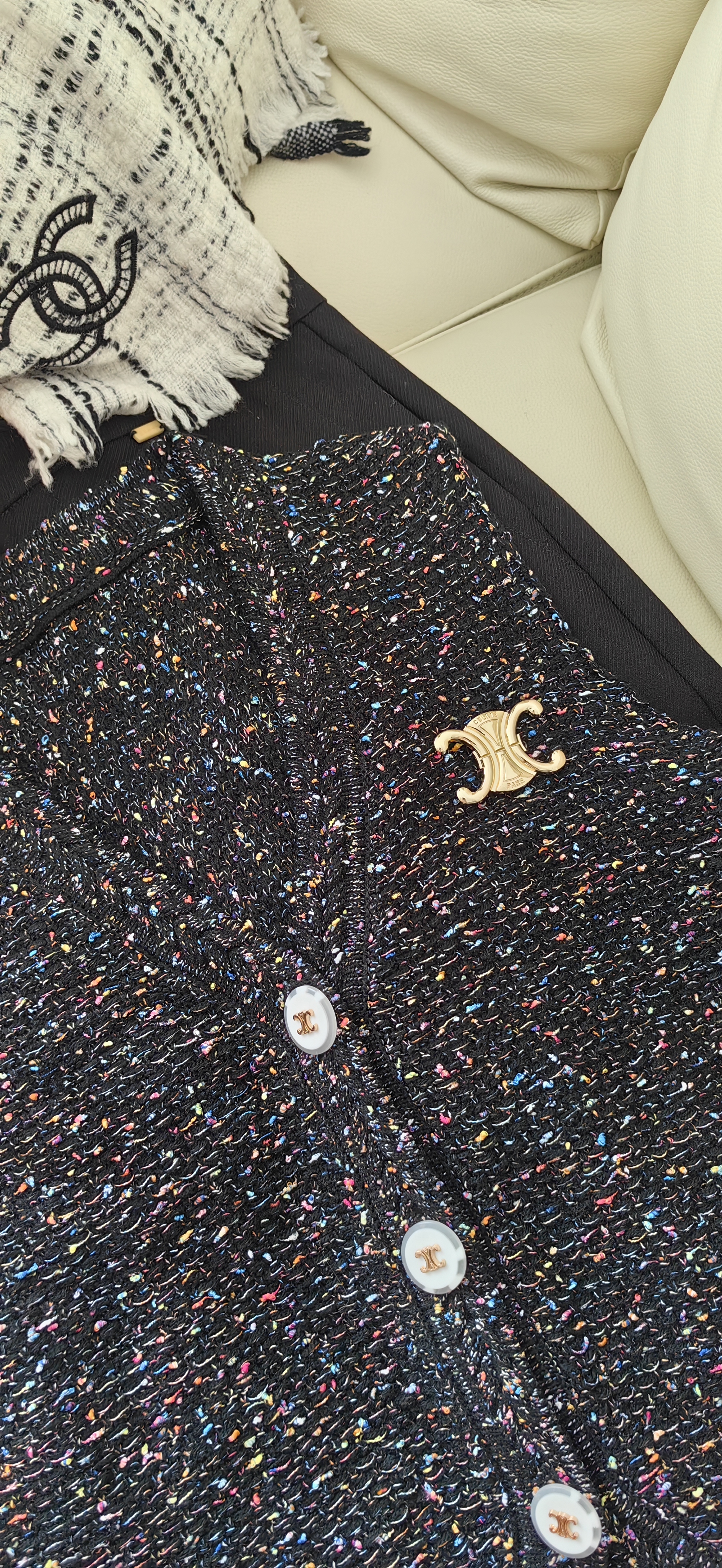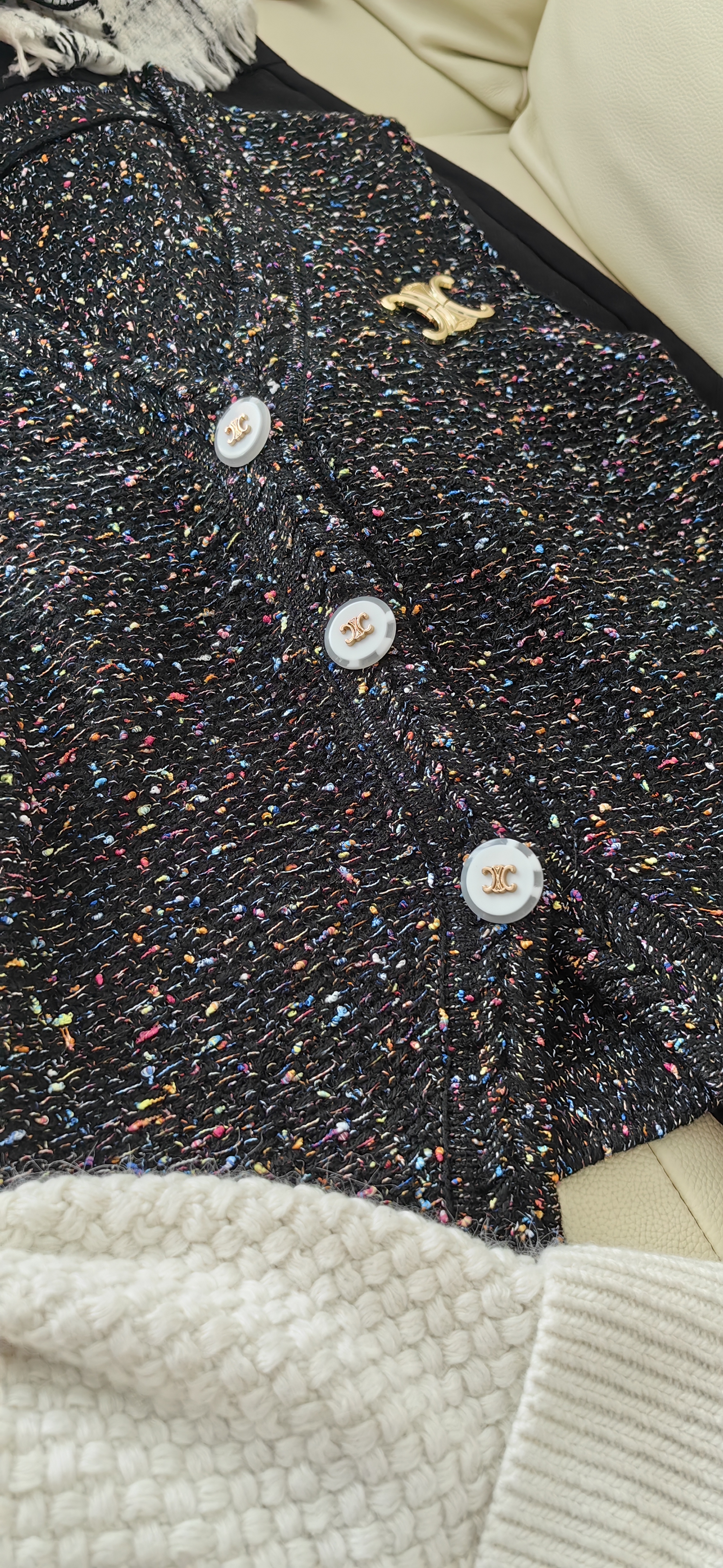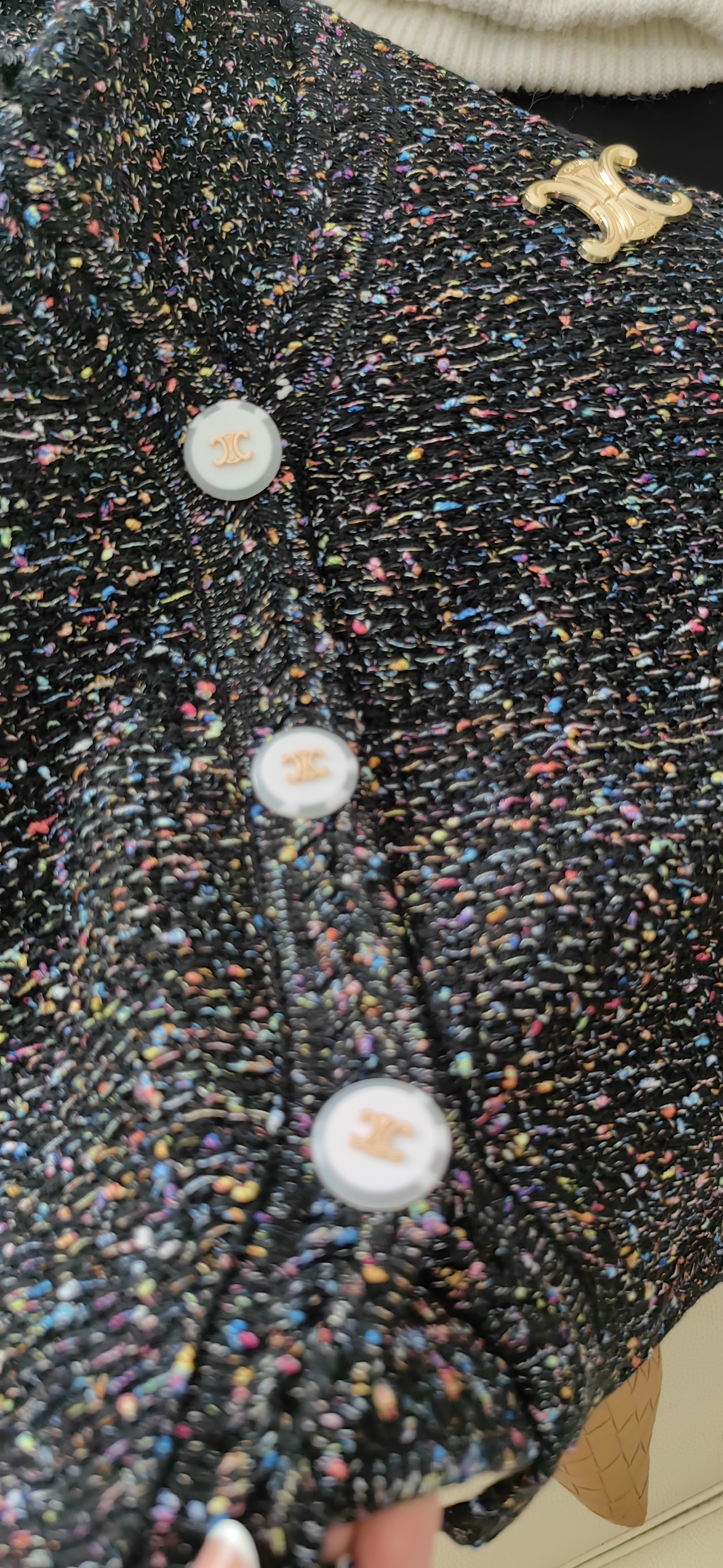 衣身彩色毛呢点缀,增加了整体的层次感和造型感