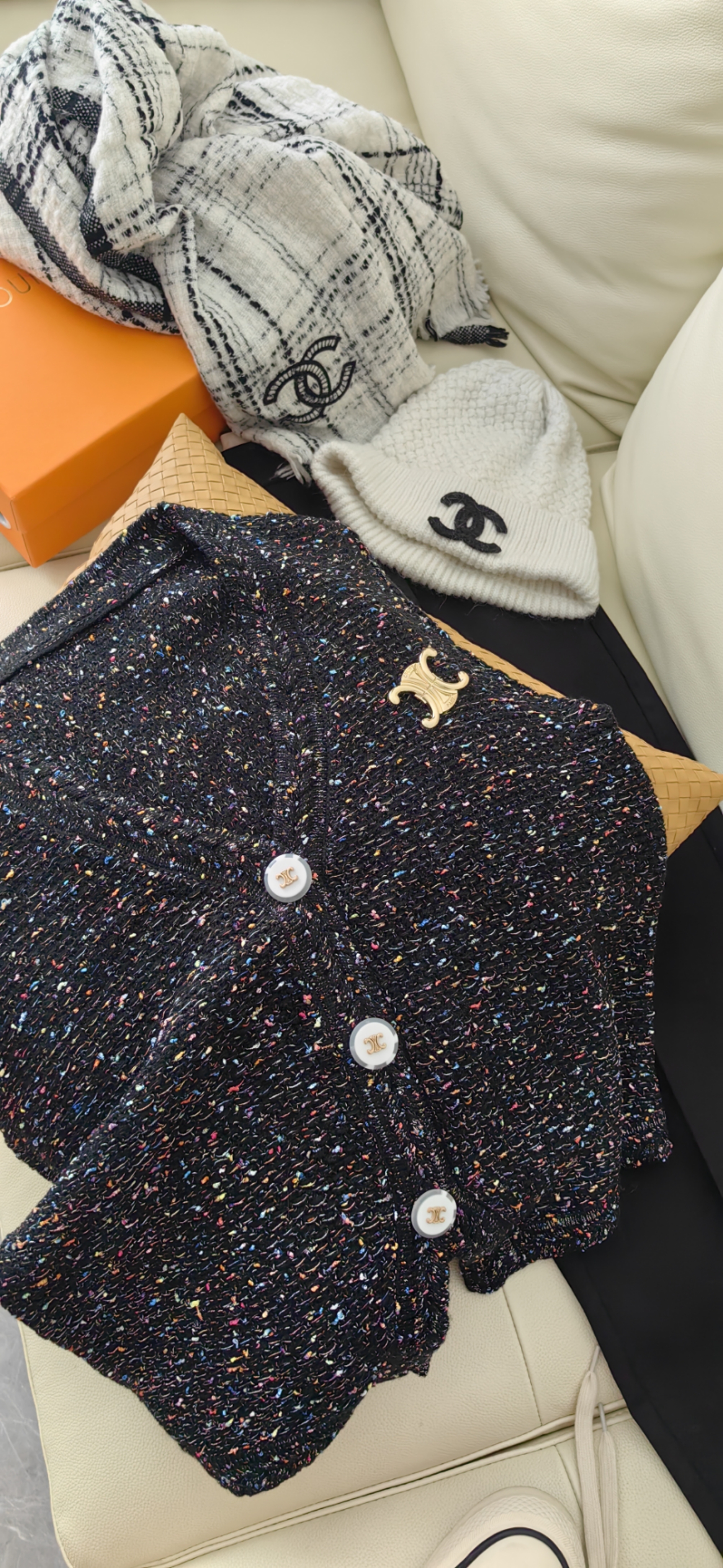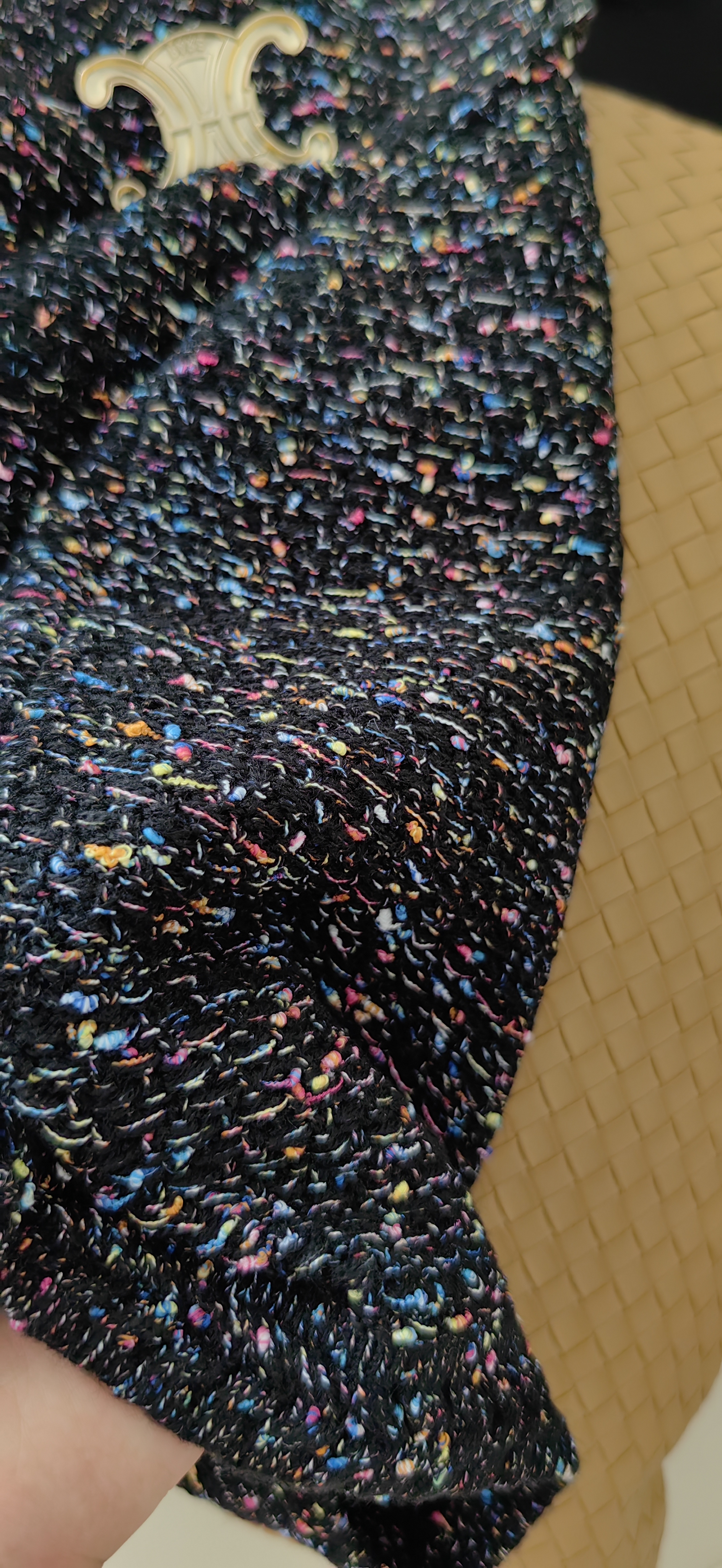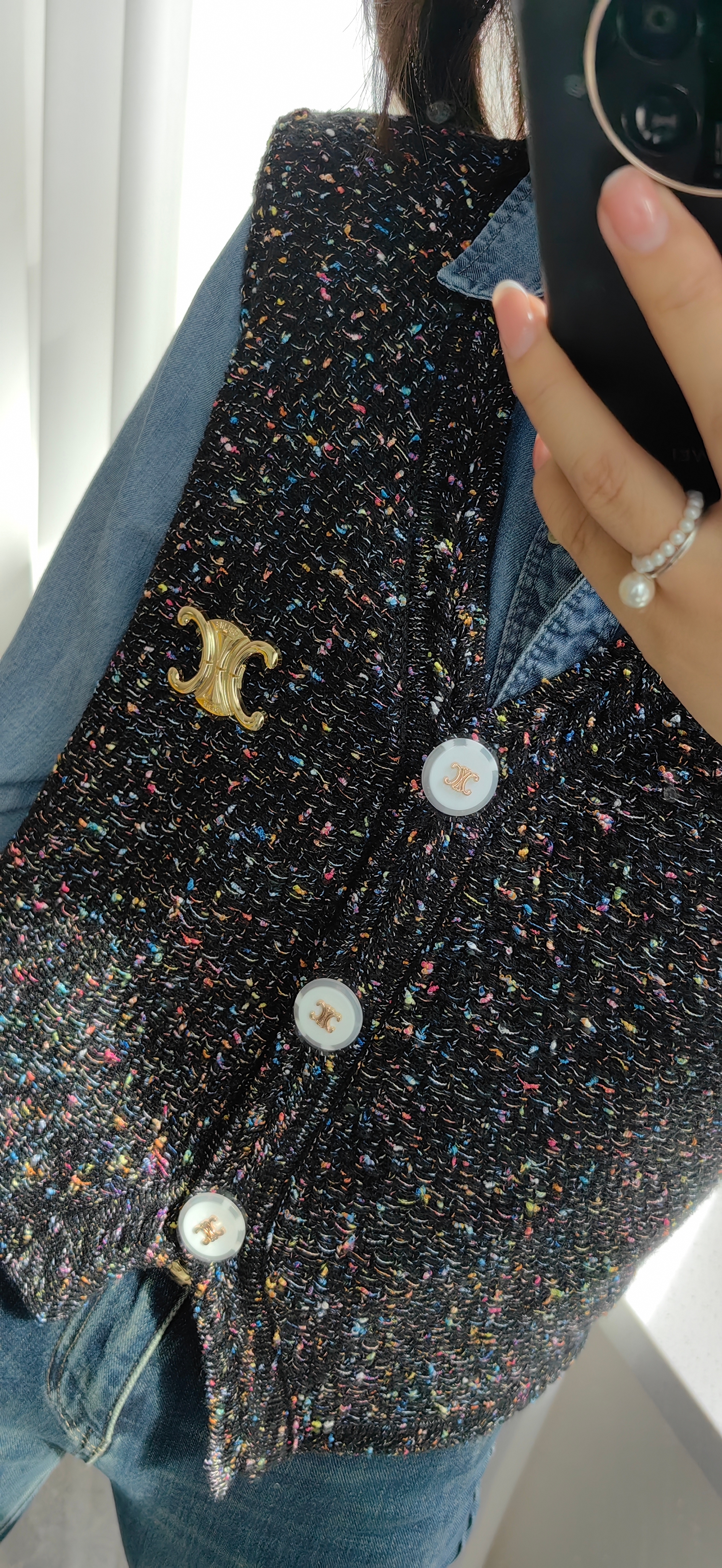 衣身彩色毛呢点缀,增加了整体的层次感和造型感