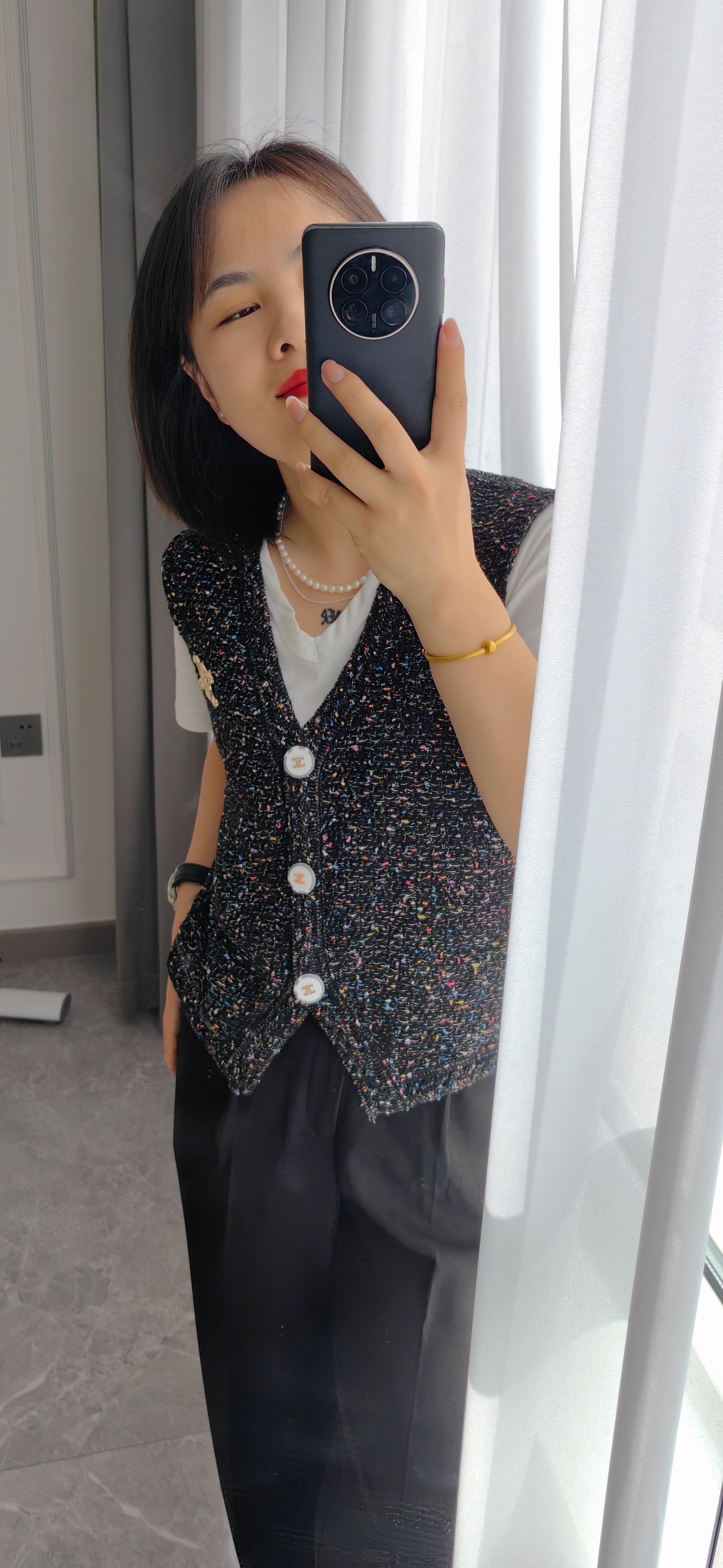 单排jing美纽扣门襟,方便日常穿脱,吸睛度高!