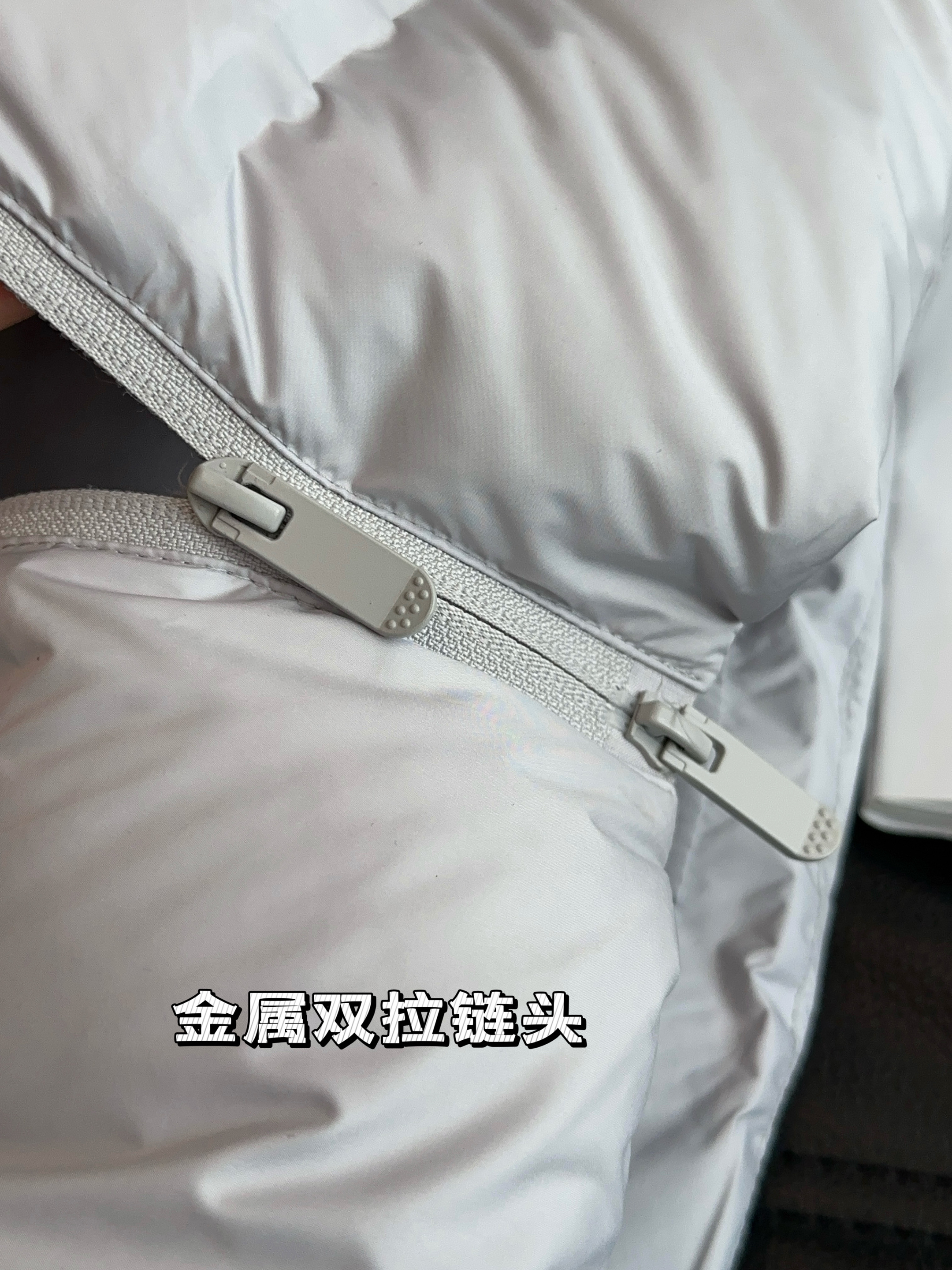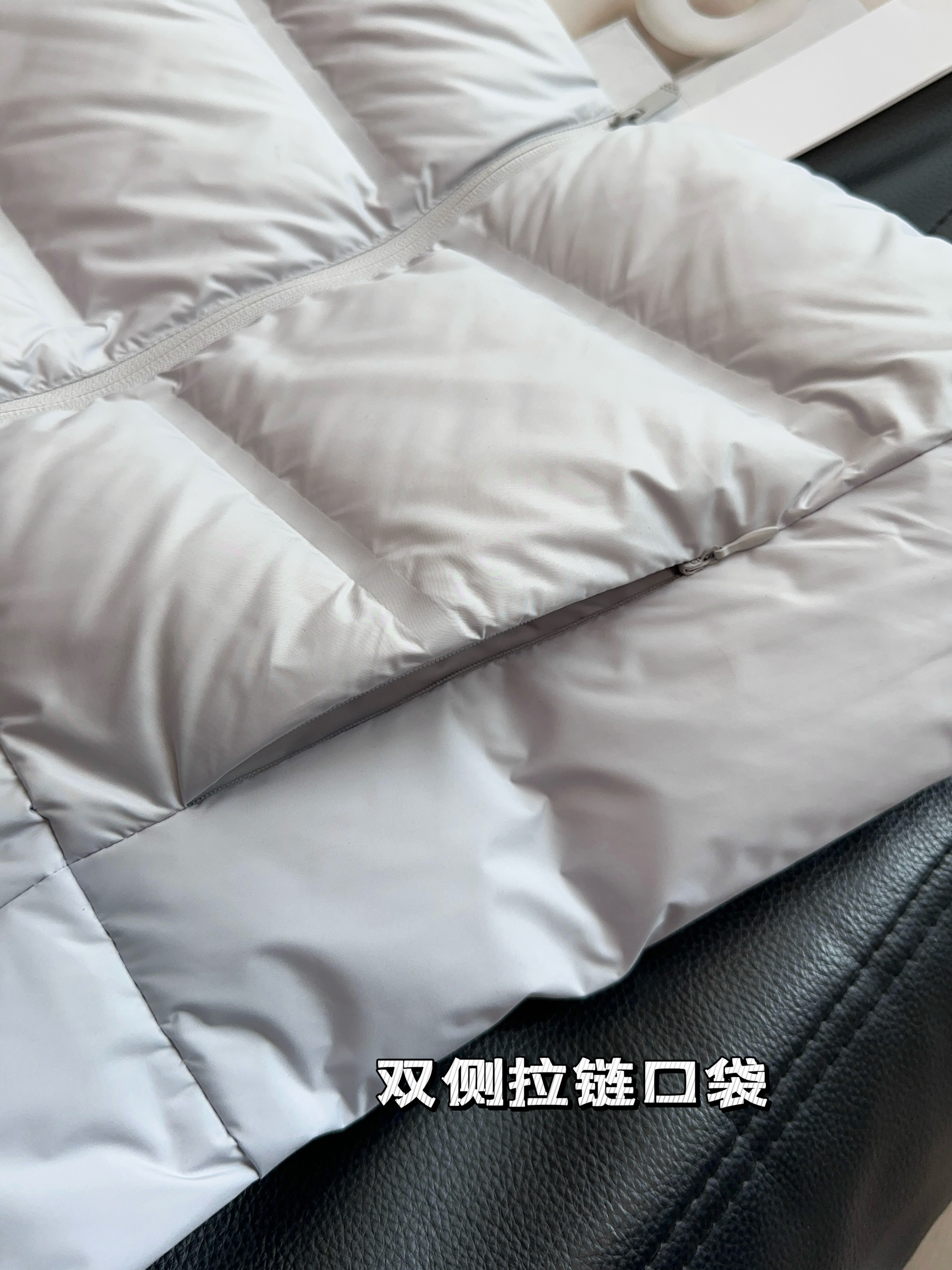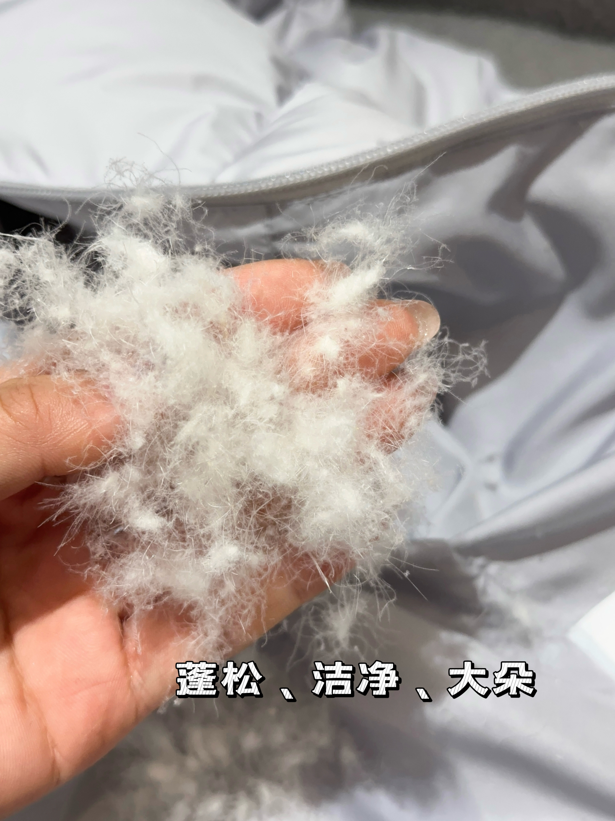 90%白鸭绒填充,高充绒量,绒朵大、饱满性强、蓬松度高,保暖性强