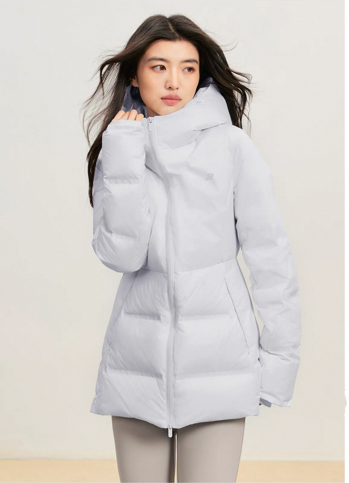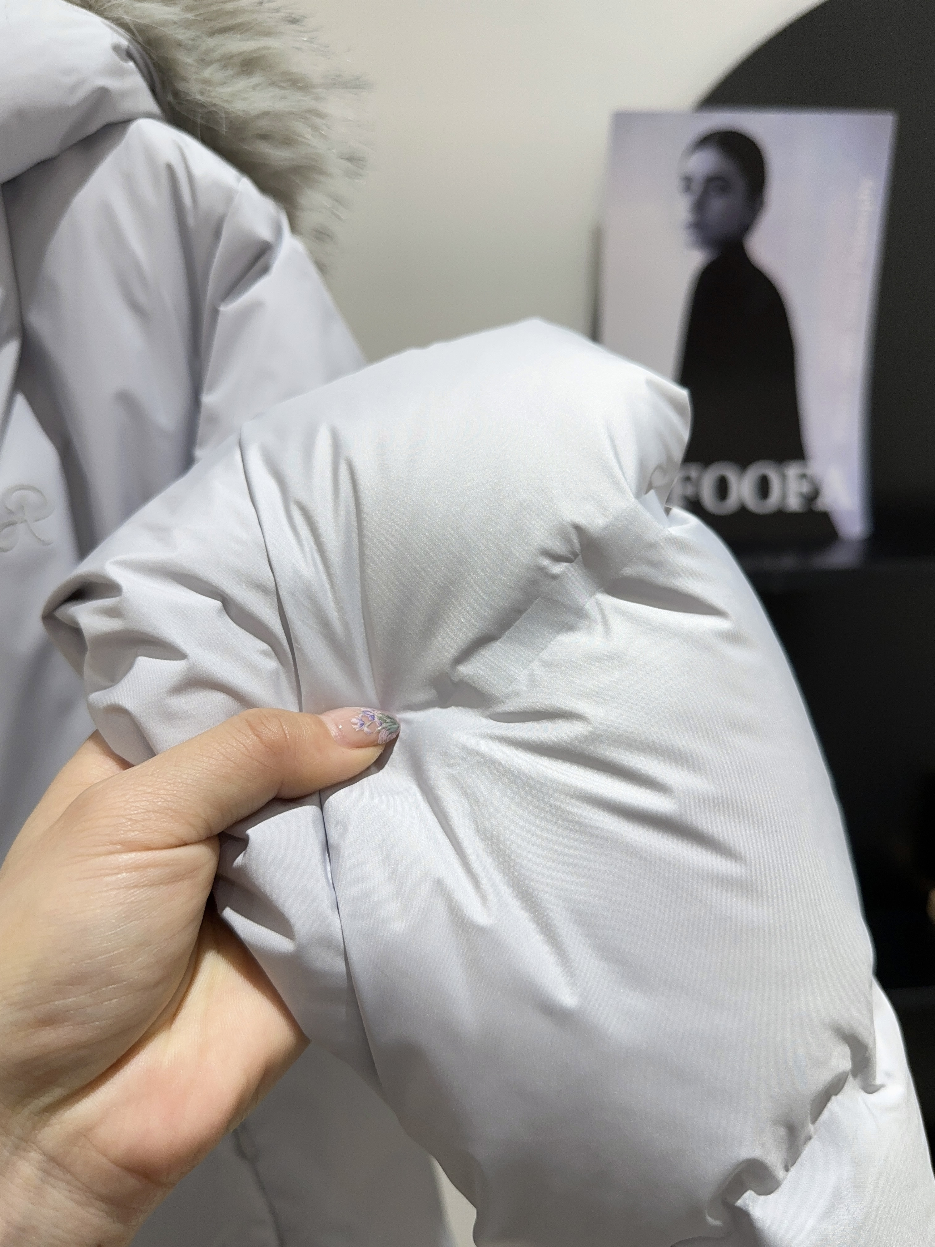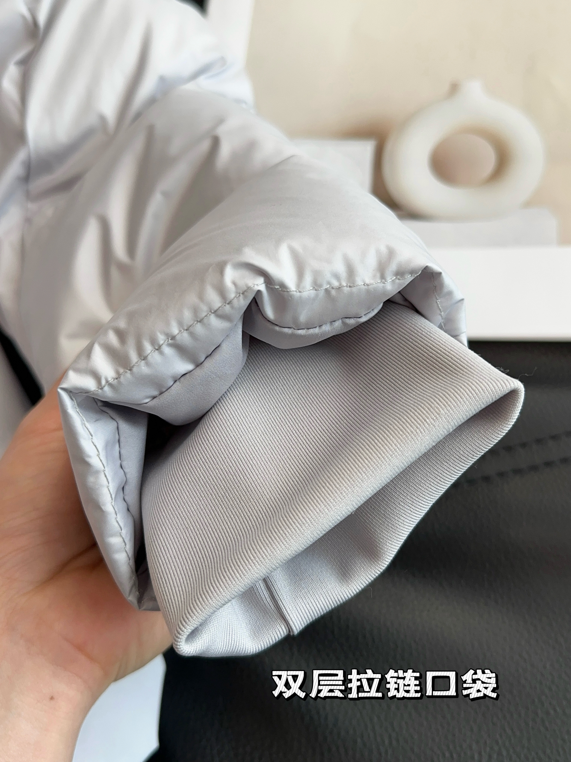 90%白鸭绒填充,高充绒量,绒朵大、饱满性强、蓬松度高,保暖性强