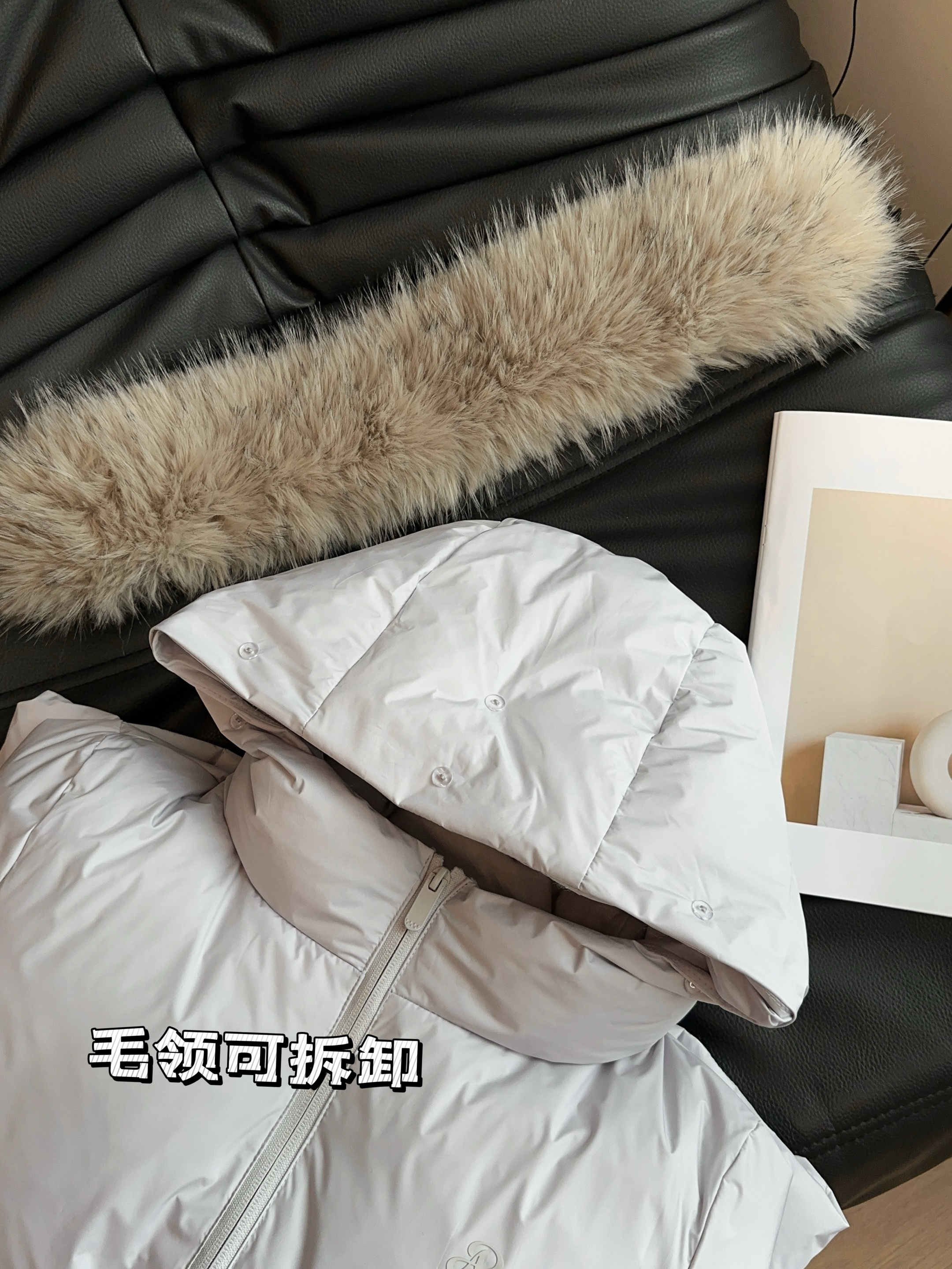 加宽大大质感毛领,毛针细腻密实,蓬松有质感。