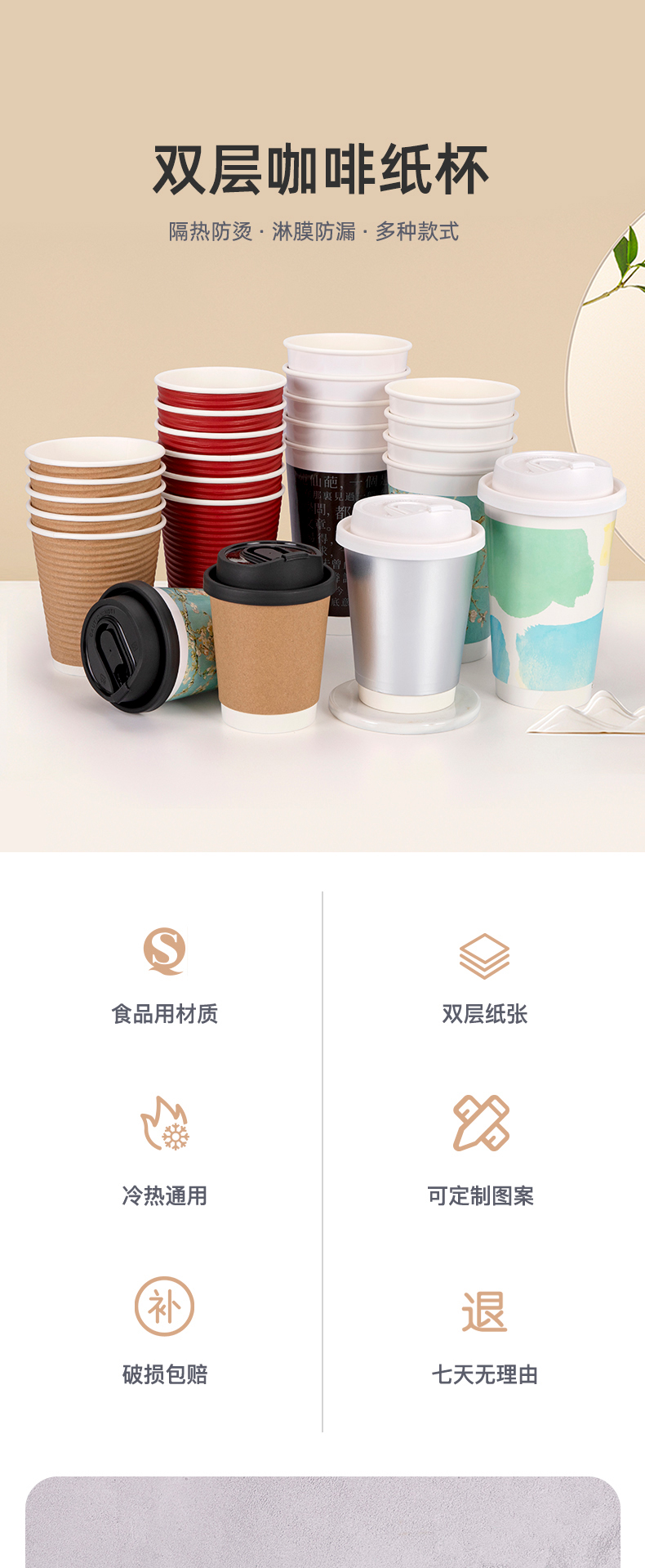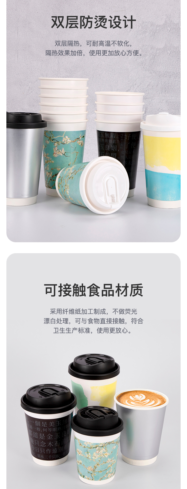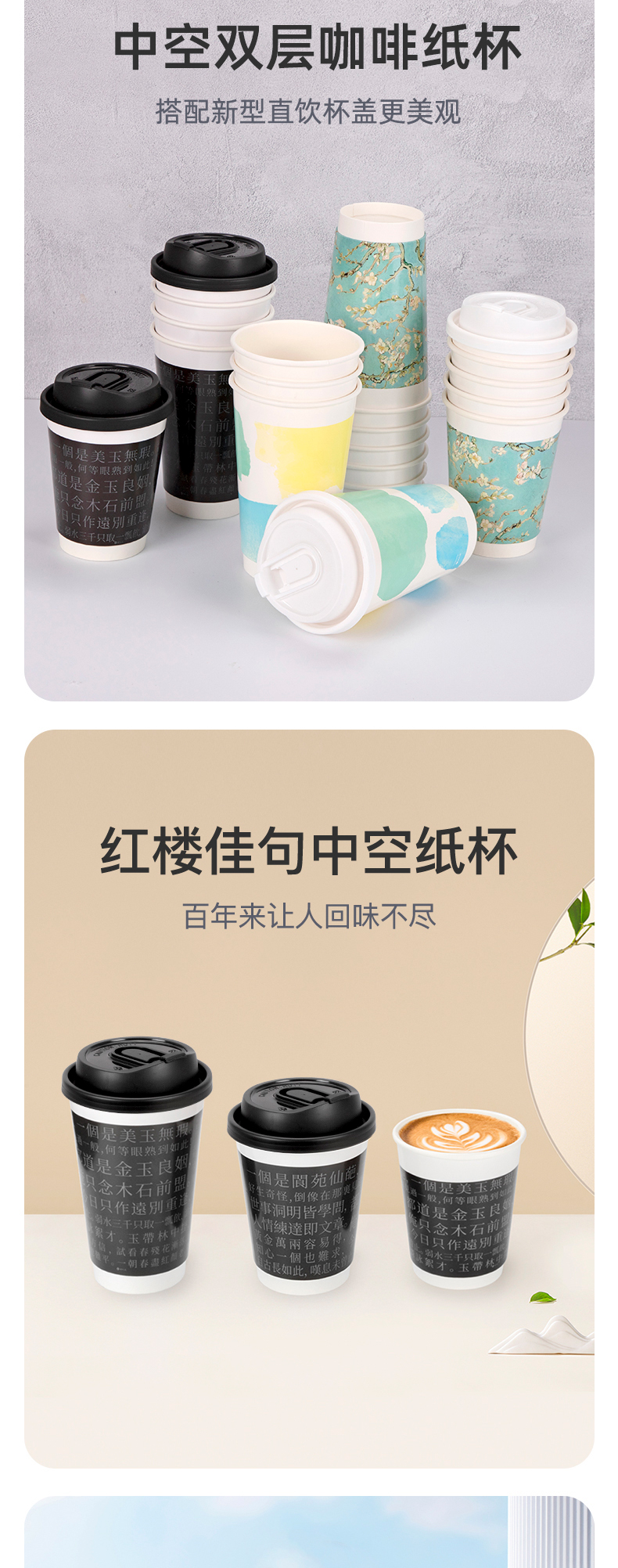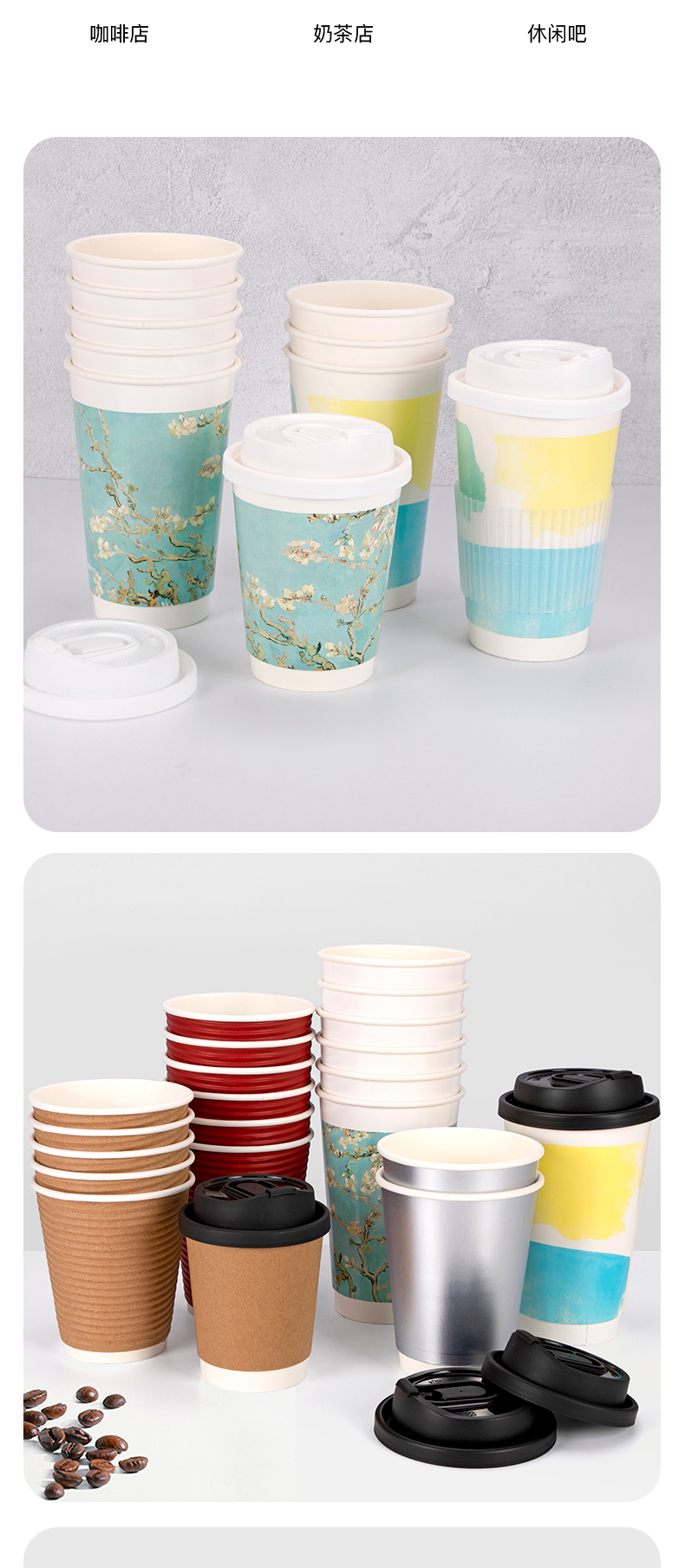 喇叭花一次性咖啡杯奶茶豆浆纸杯加厚带盖外卖热饮杯外带家用商用