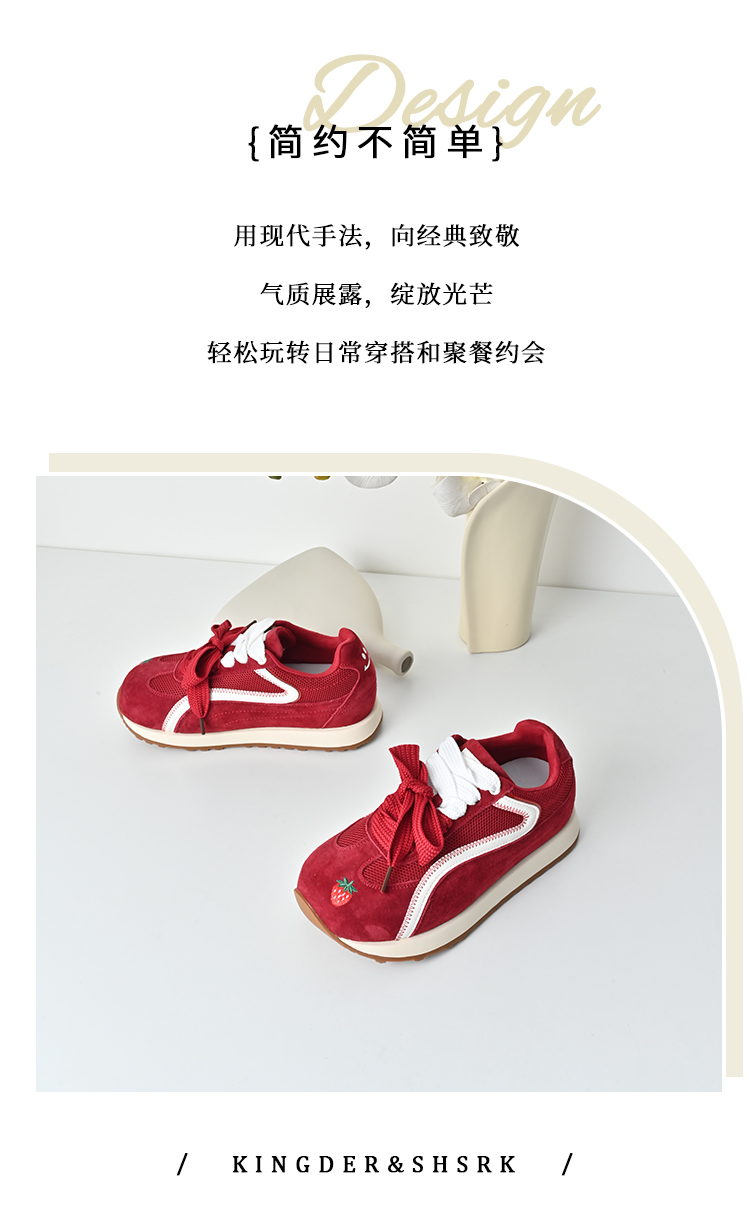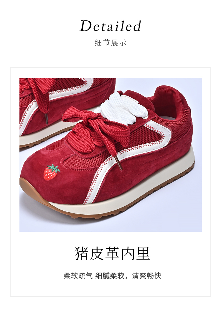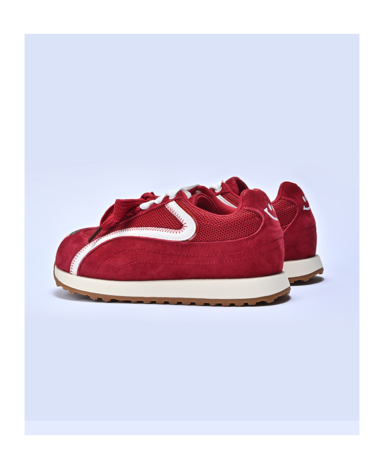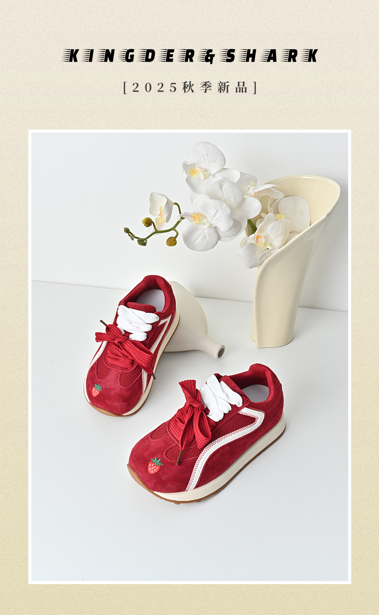 经典鲨2025年秋专柜新品红色猪皮革平底跑步休闲鞋德训鞋女KW16-537081