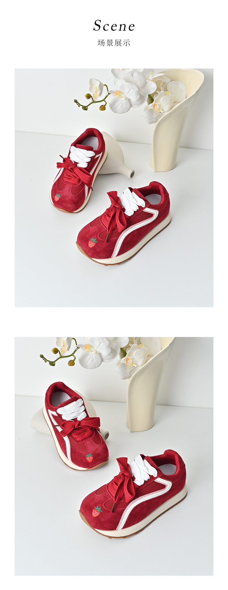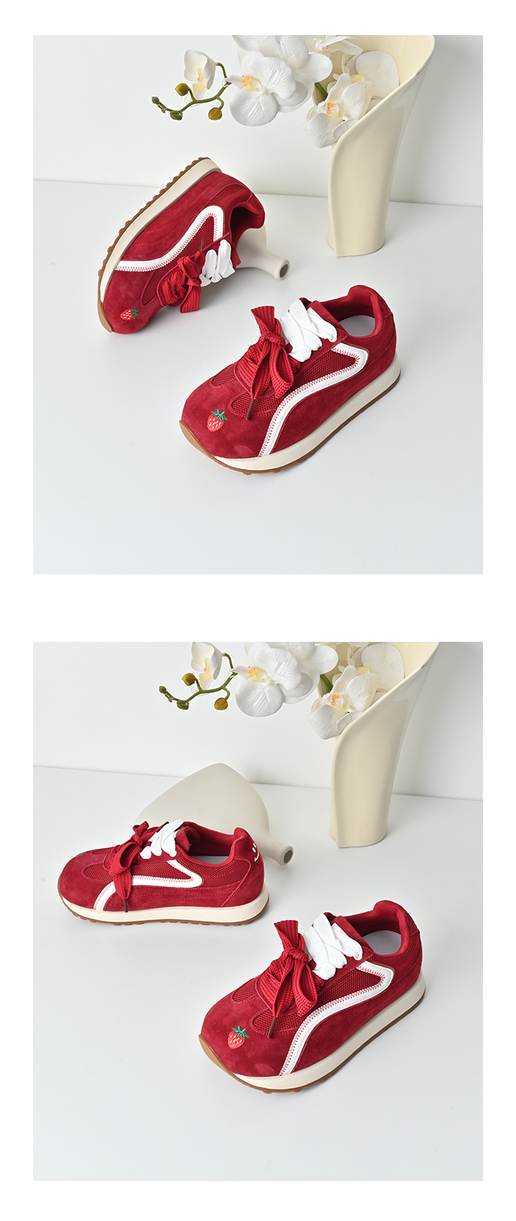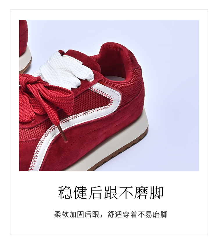 经典鲨2025年秋专柜新品红色猪皮革平底跑步休闲鞋德训鞋女KW16-537081