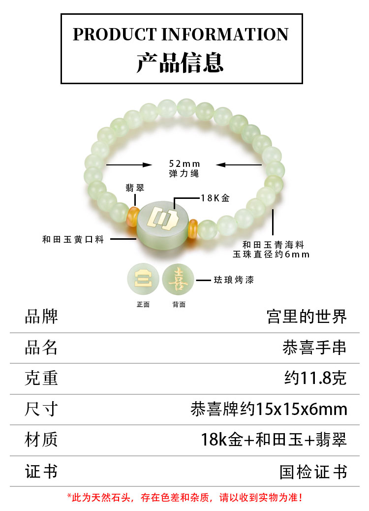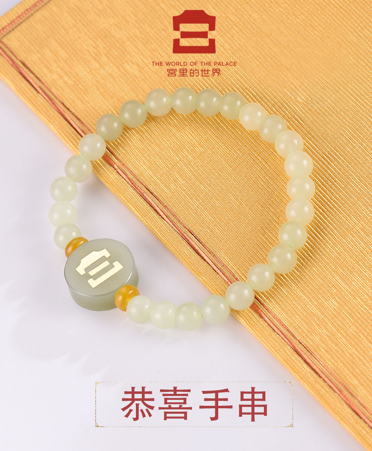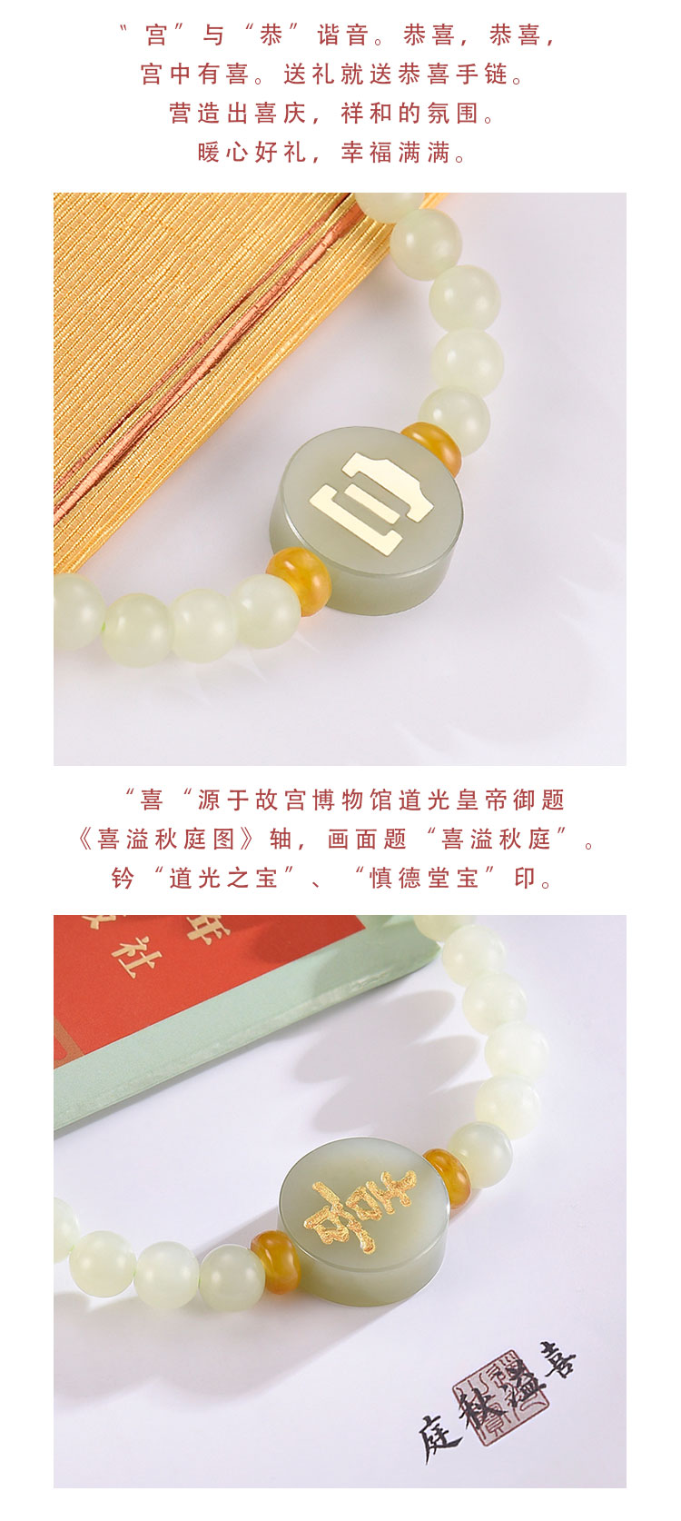 【采购专享】宫里的世界 和田玉18K金宫喜手串