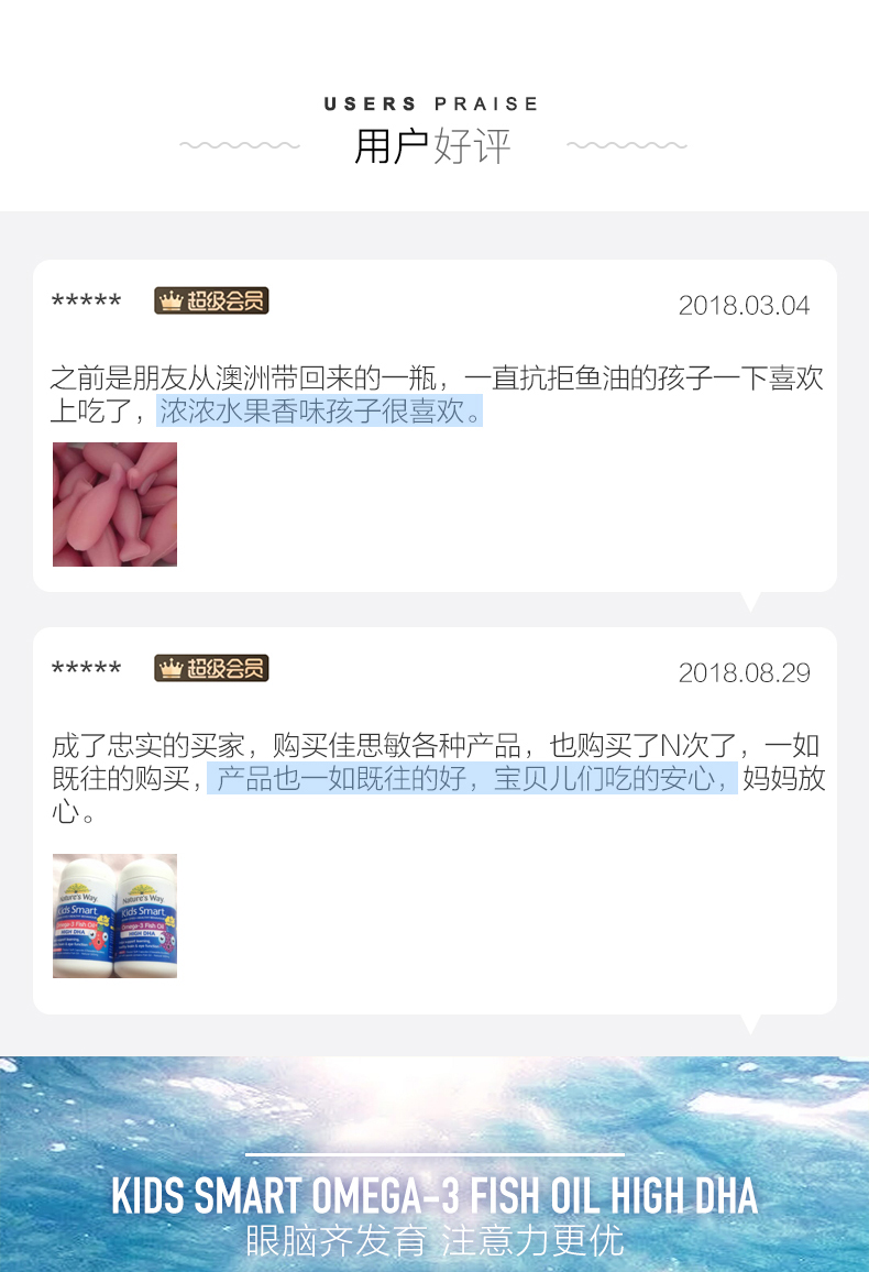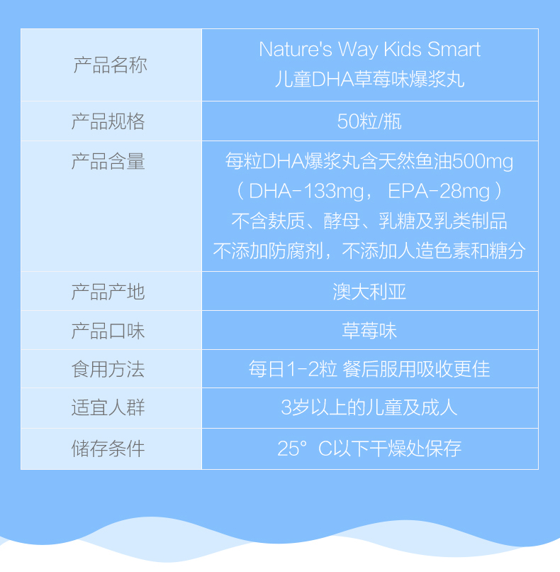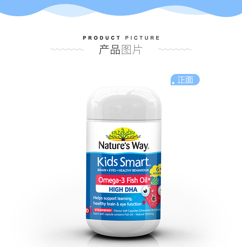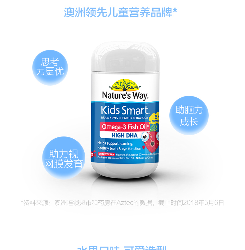 澳洲 Nature's Way佳思敏婴幼儿dha儿童草莓味护眼鱼油50粒